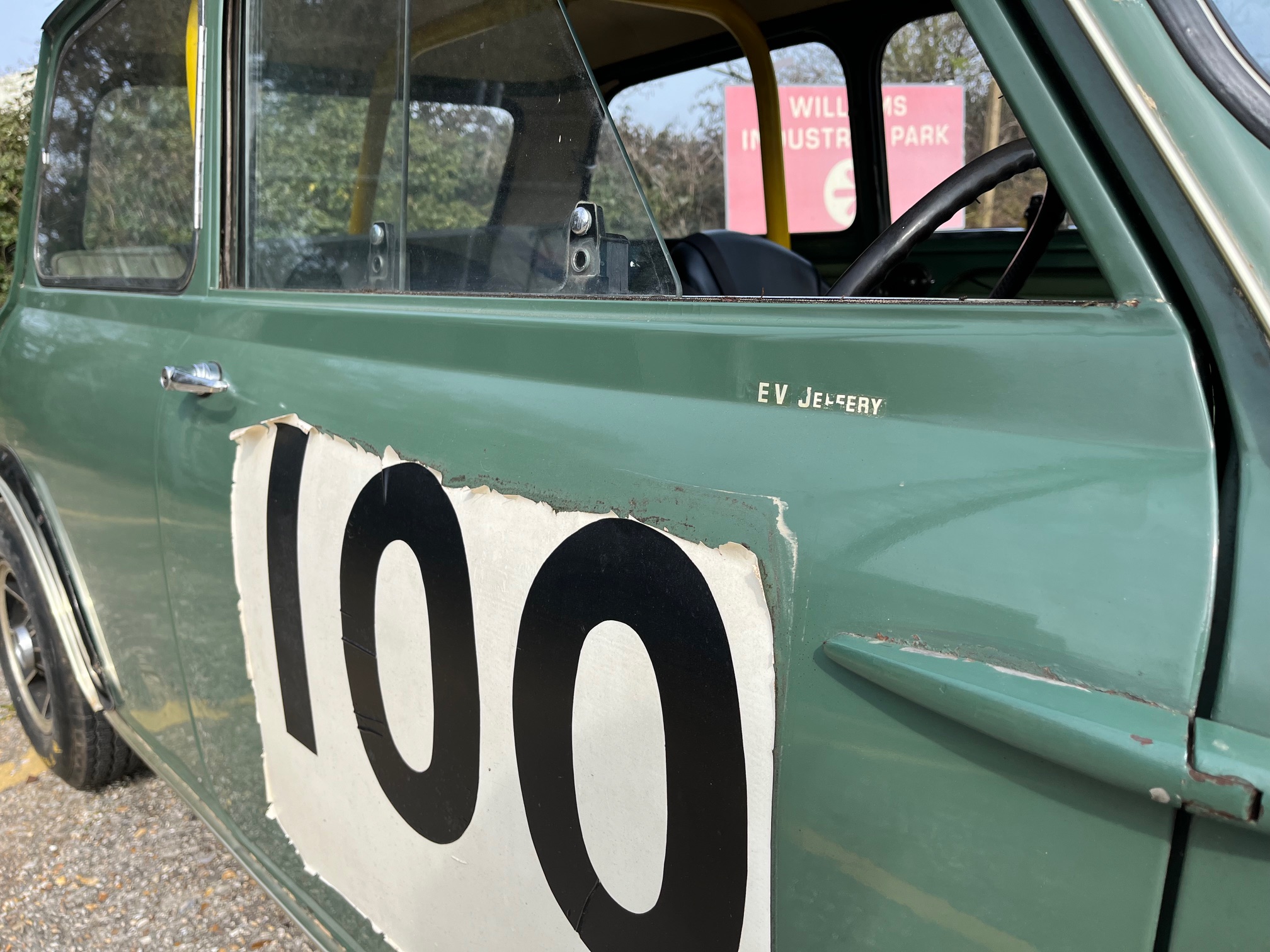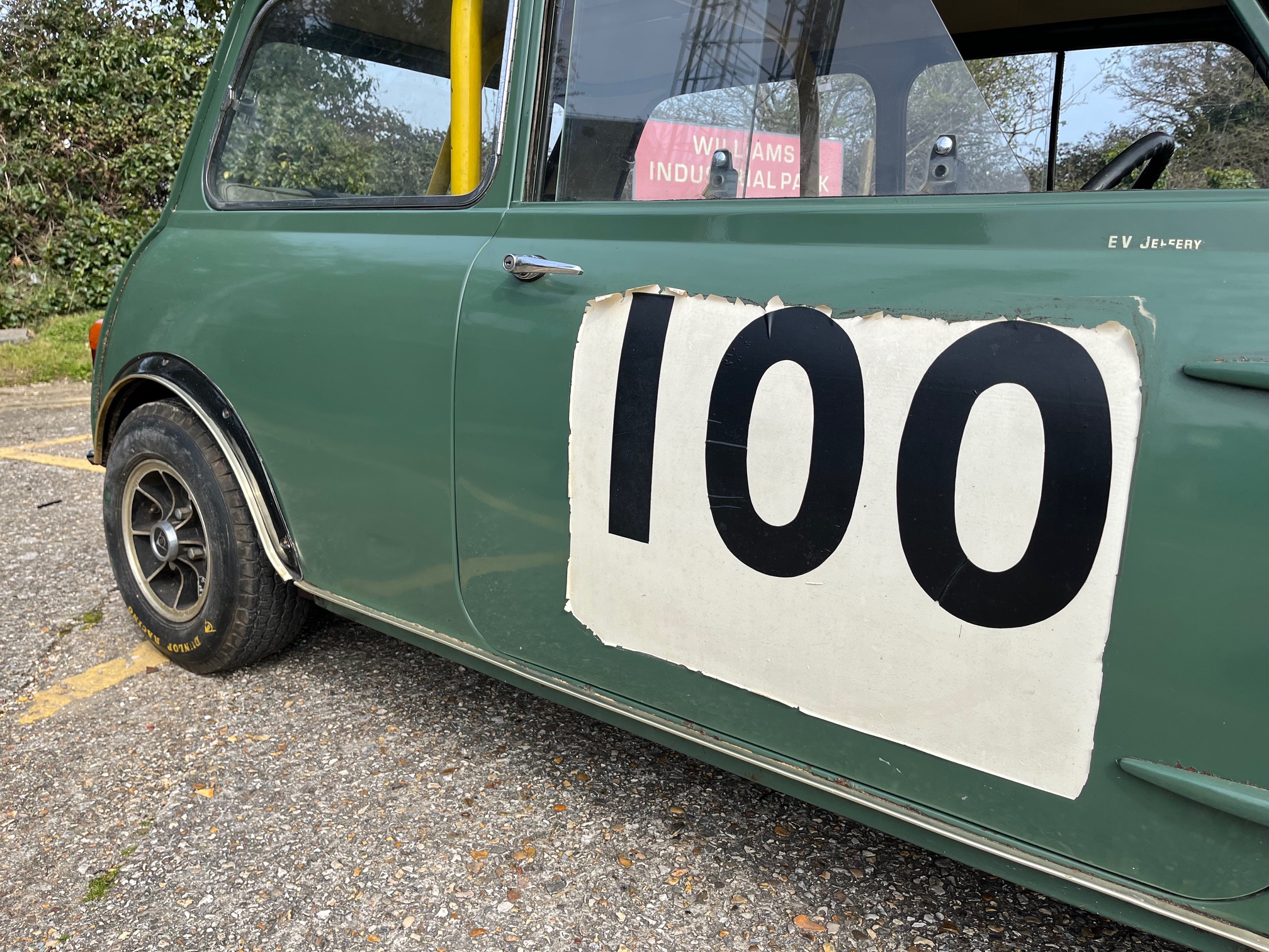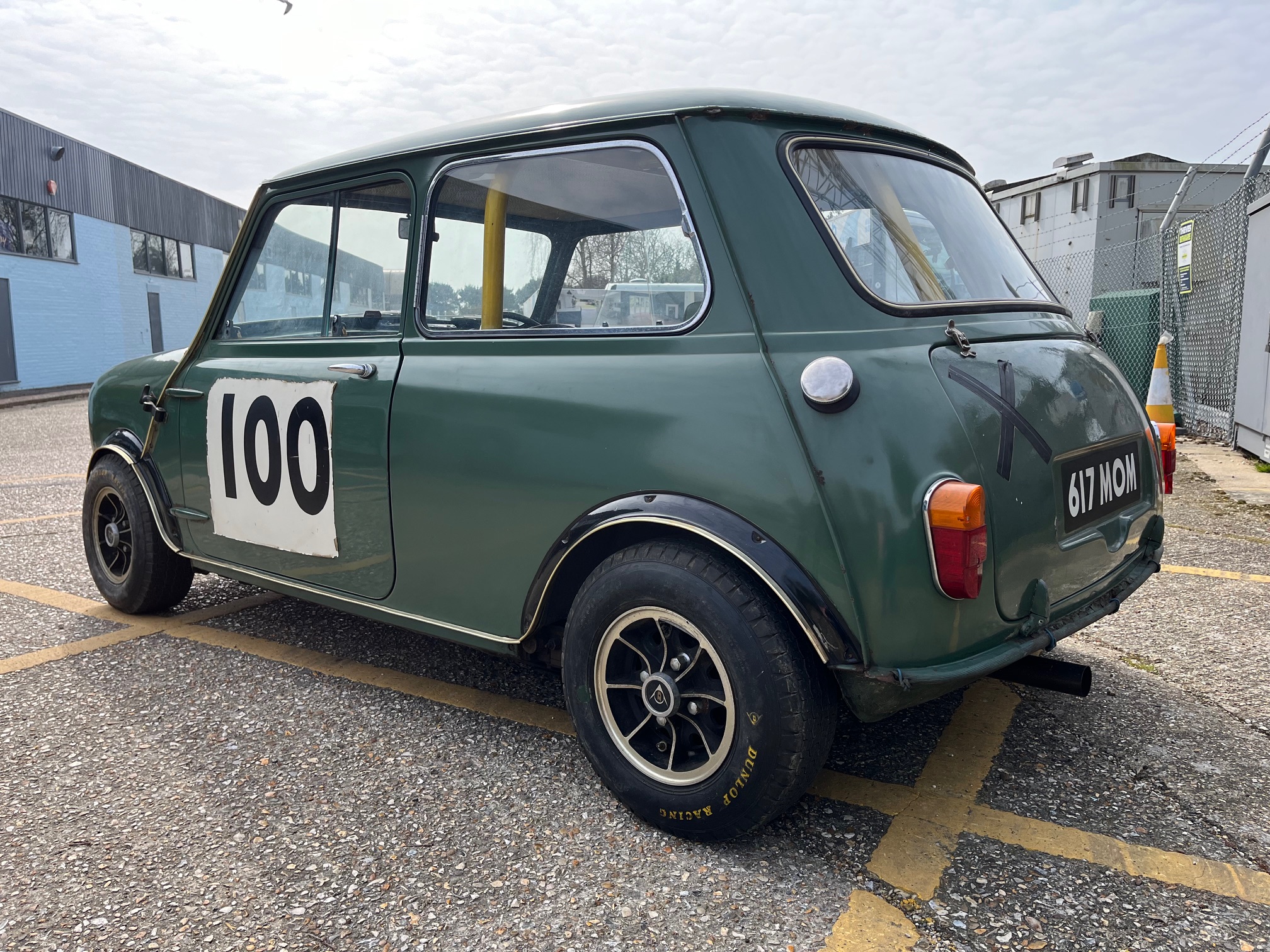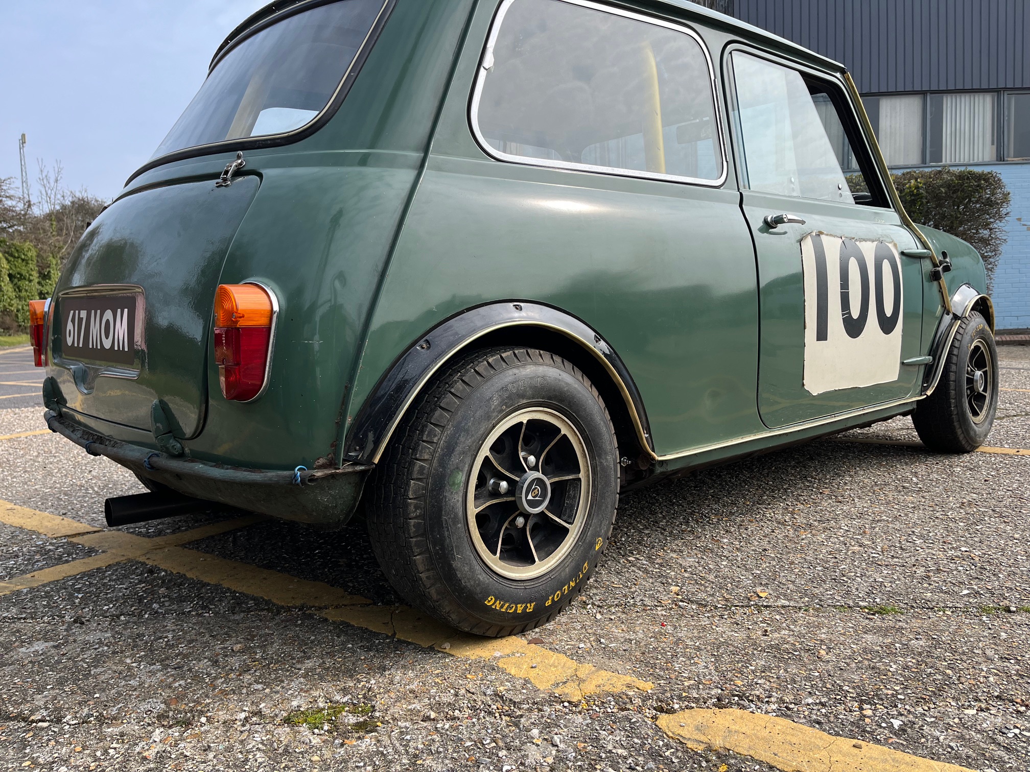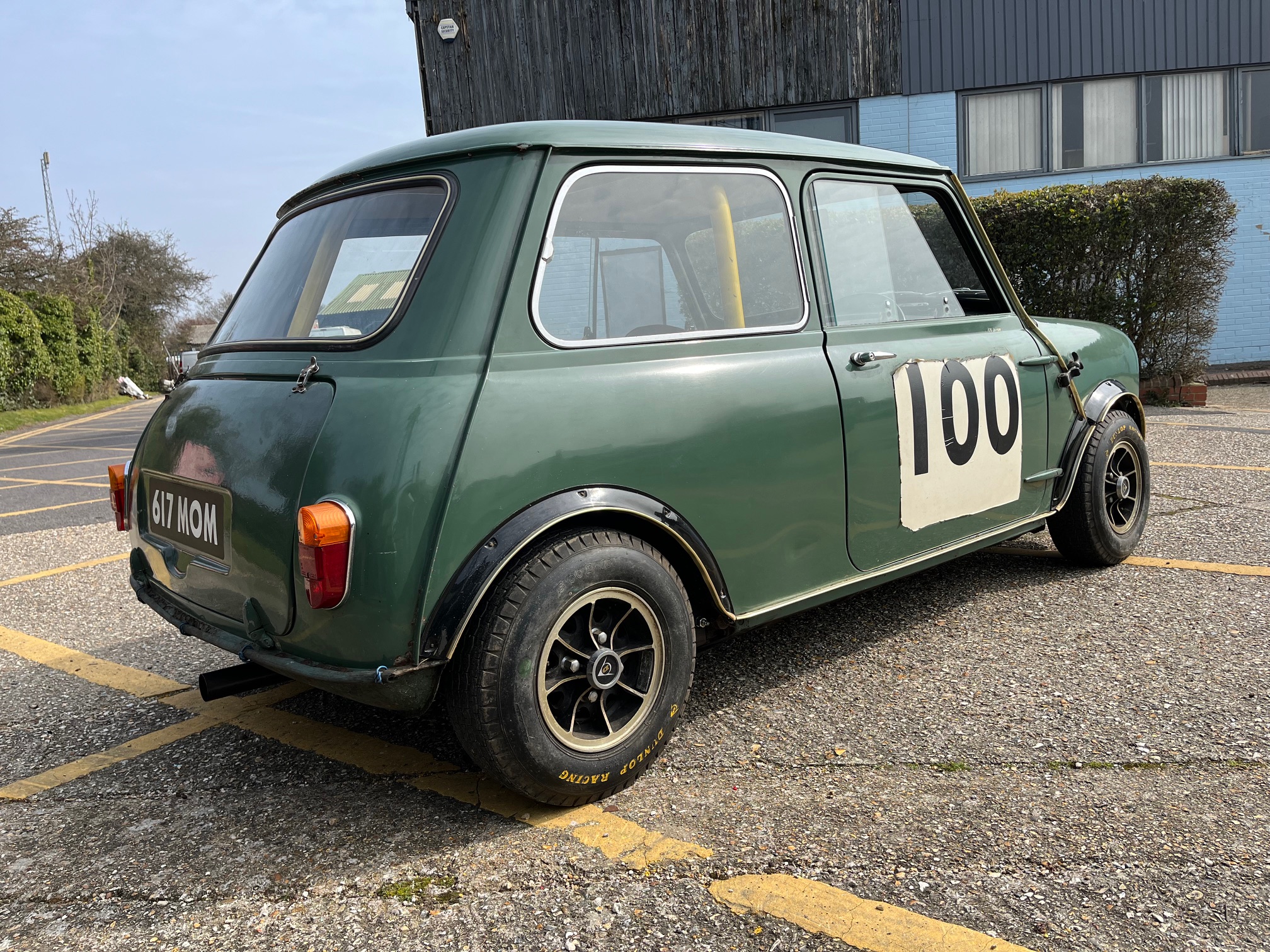 We are very pleased to offer a real piece of Classic Mini history, one that I have been excited to list and I also know is virtually unique with a fascinating story. The Mini “617MOM” was registered new in May 1964 by Neville Jeffrey who worked for Austin at Longbridge, he qualified for the works employer discount scheme and the supporting original sales invoice confirms that he paid the sum of £443 and 15 shillings. He also optioned the Super De Luxe spec complete with Porcelain green trim. After a few months he passed the Mini onto his son Edward who after a few years of using it as his daily transport decided to use it for Saloon Car racing. He was lucky enough to work for the right company and manged to not only fully convert it into a racer but also managed to fit it with an engine developed by Daniel Richmond of Downton engineering fame. It has an experimental A series block, which is briefly a thin wall S block with no tappet chest side covers which became the forerunner for the later A+ engine. Assembled by Special Tuning and known as an “XSP” experimental block, they were also fitted to Sebring Sprites in period and this particular well known Mini is featured on that website. The Mini was campaigned until the early seventies and then dry stored for over forty years and has such remained untouched offers a real insight that amazing Saloon Car Racing era and must be more or less unique. It is accompanied with lots of important paperwork from the era including invoices from Downton, Patrick Motors and Les Leston and a corresponding Heritage certificate. To this day it is still only a three owner Mini. Its last owner has cared for it for ten years and used it regularly.