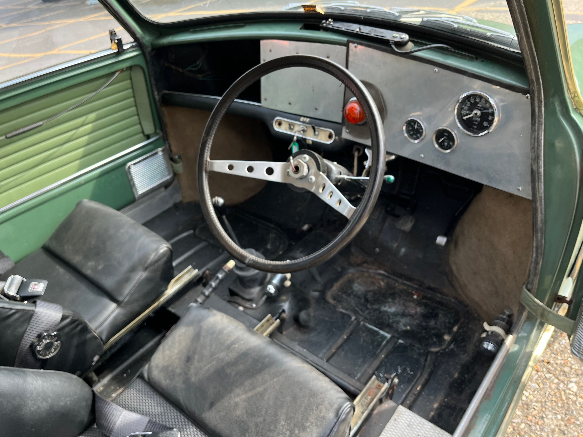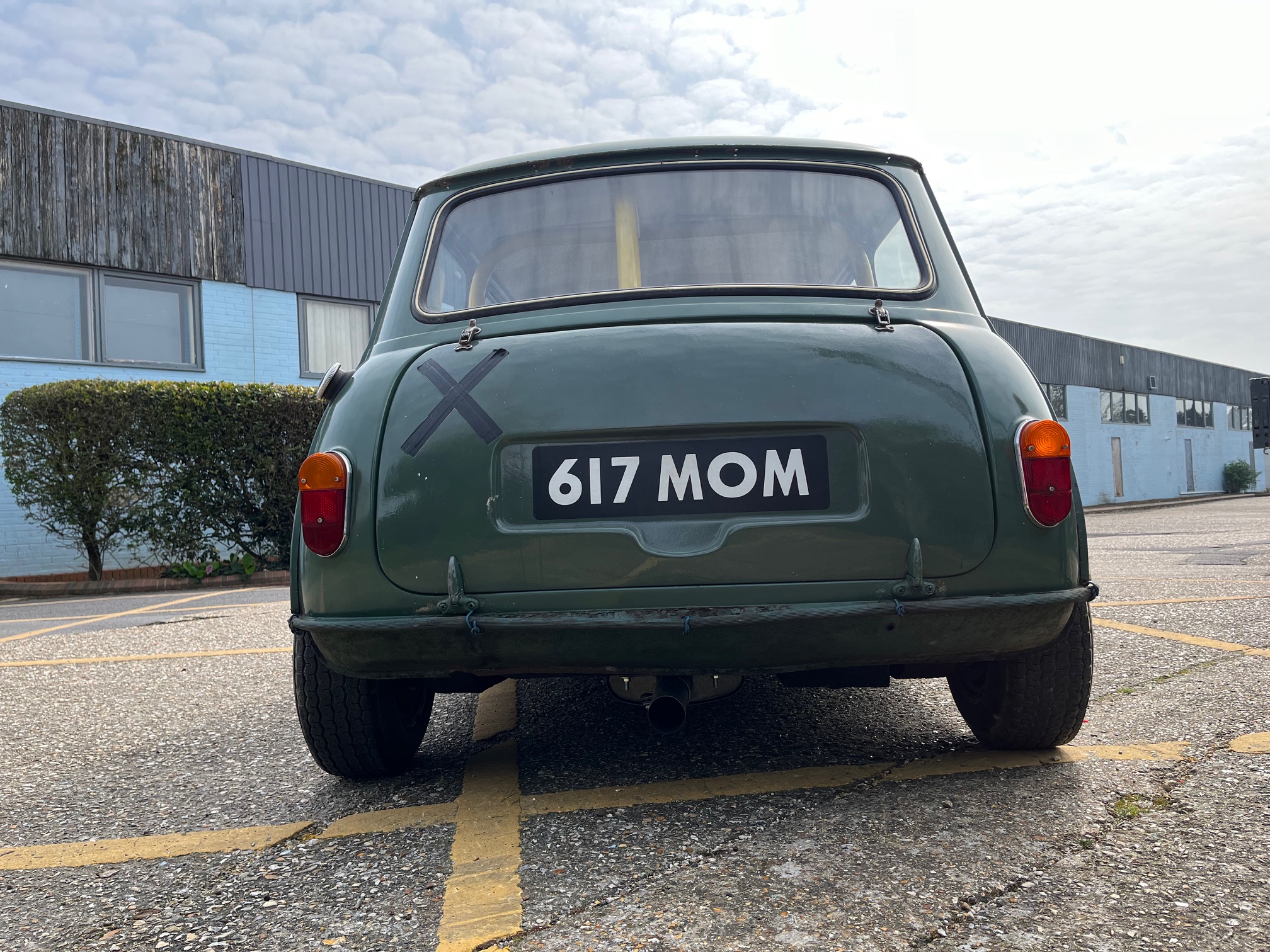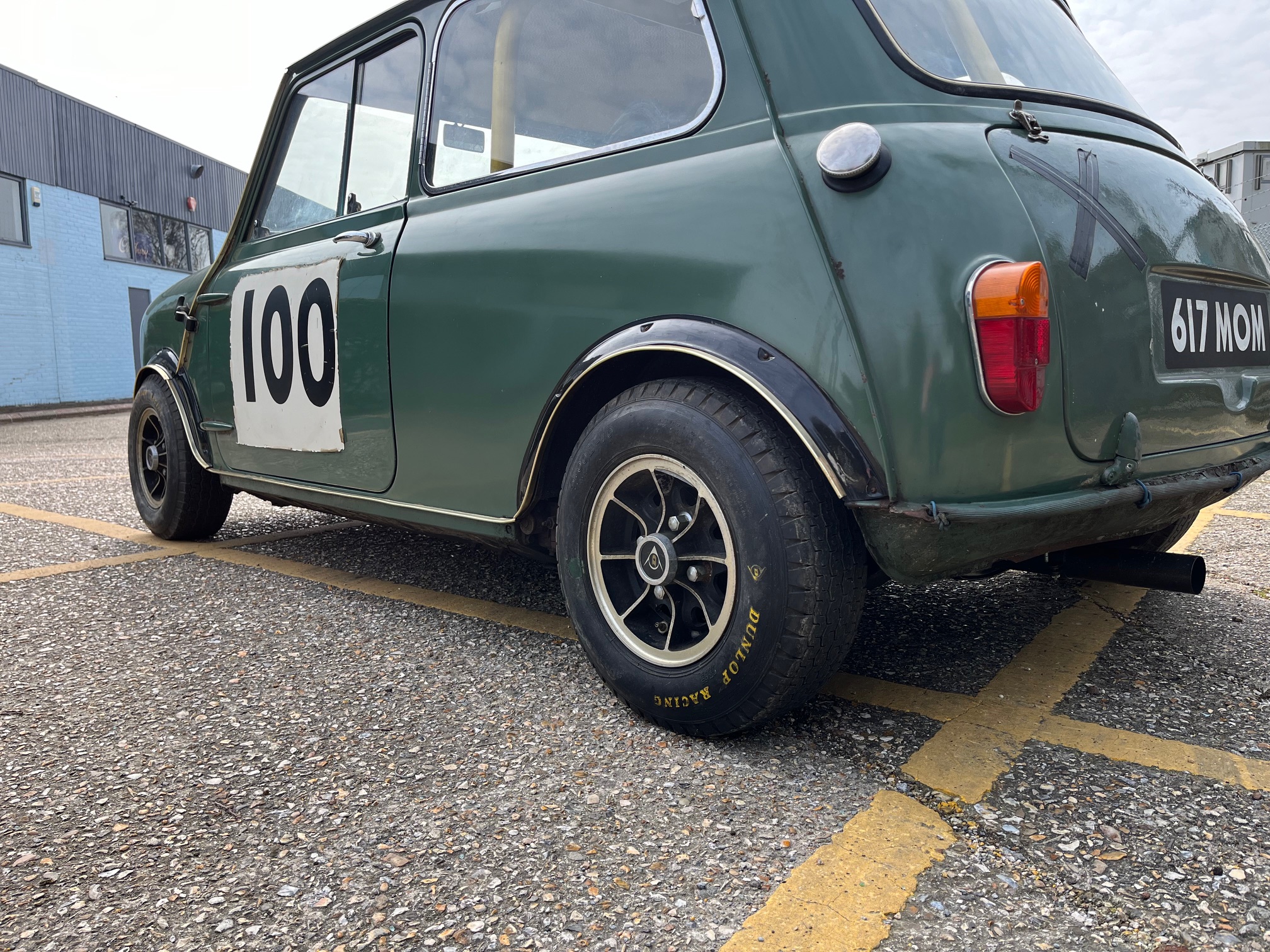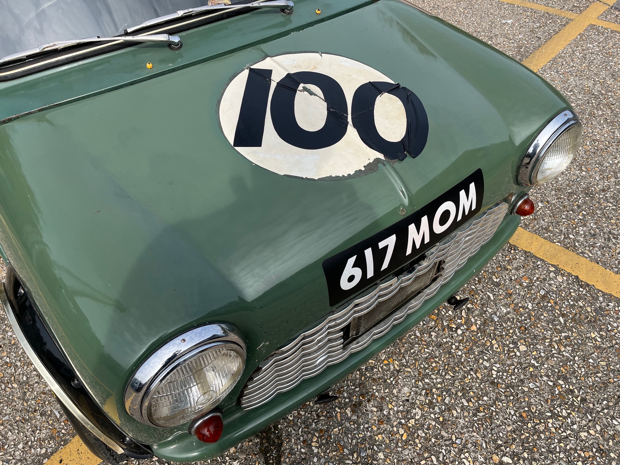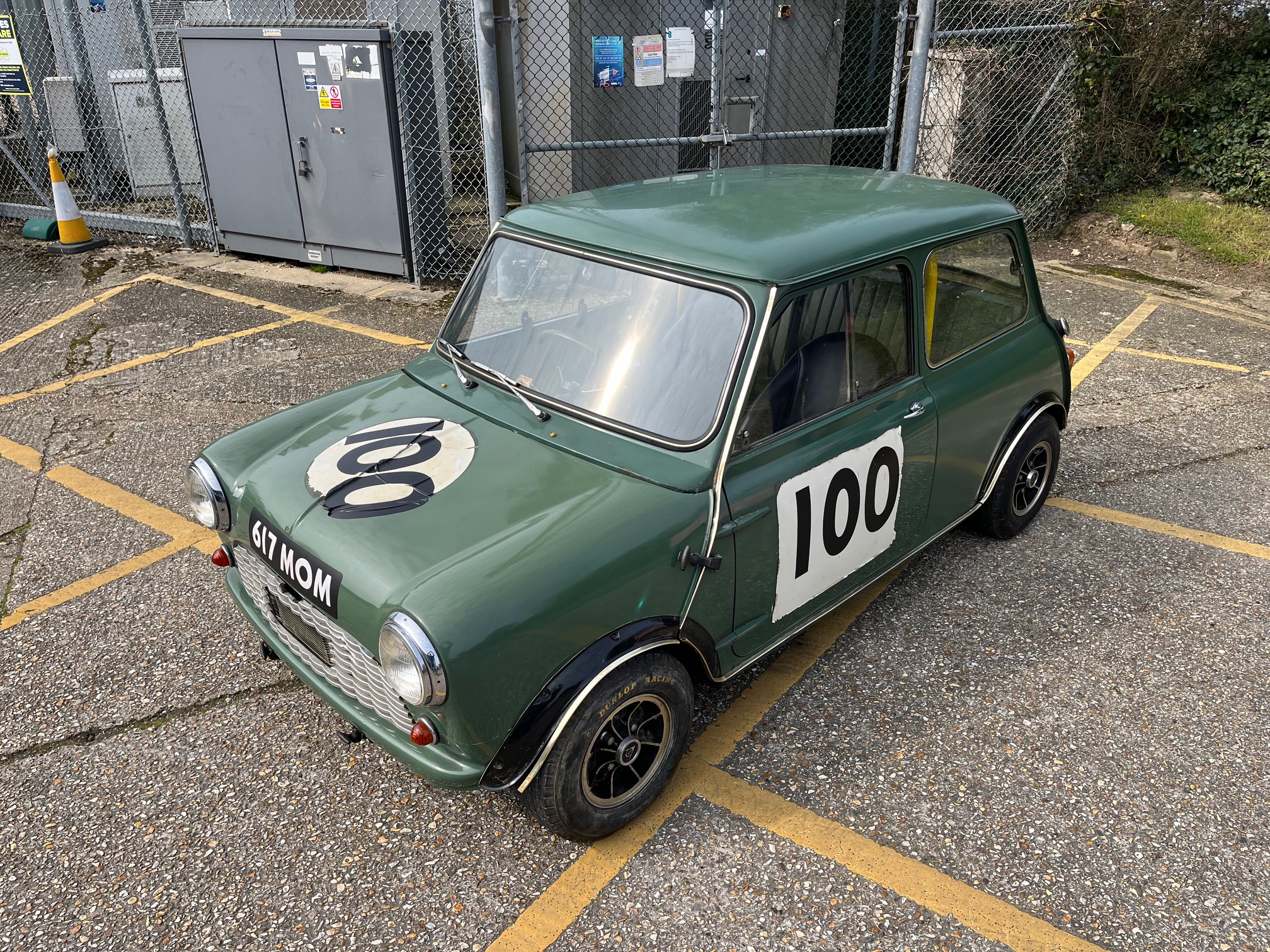 We are very pleased to offer a real piece of Classic Mini history, one that I have been excited to list and I also know is virtually unique with a fascinating story. The Mini “617MOM” was registered new in May 1964 by Neville Jeffrey who worked for Austin at Longbridge, he qualified for the works employer discount scheme and the supporting original sales invoice confirms that he paid the sum of £443 and 15 shillings. He also optioned the Super De Luxe spec complete with Porcelain green trim. After a few months he passed the Mini onto his son Edward who after a few years of using it as his daily transport decided to use it for Saloon Car racing. He was lucky enough to work for the right company and manged to not only fully convert it into a racer but also managed to fit it with an engine developed by Daniel Richmond of Downton engineering fame. It has an experimental A series block, which is briefly a thin wall S block with no tappet chest side covers which became the forerunner for the later A+ engine. Assembled by Special Tuning and known as an “XSP” experimental block, they were also fitted to Sebring Sprites in period and this particular well known Mini is featured on that website. The Mini was campaigned until the early seventies and then dry stored for over forty years and has such remained untouched offers a real insight that amazing Saloon Car Racing era and must be more or less unique. It is accompanied with lots of important paperwork from the era including invoices from Downton, Patrick Motors and Les Leston and a corresponding Heritage certificate. To this day it is still only a three owner Mini. Its last owner has cared for it for ten years and used it regularly.