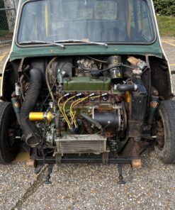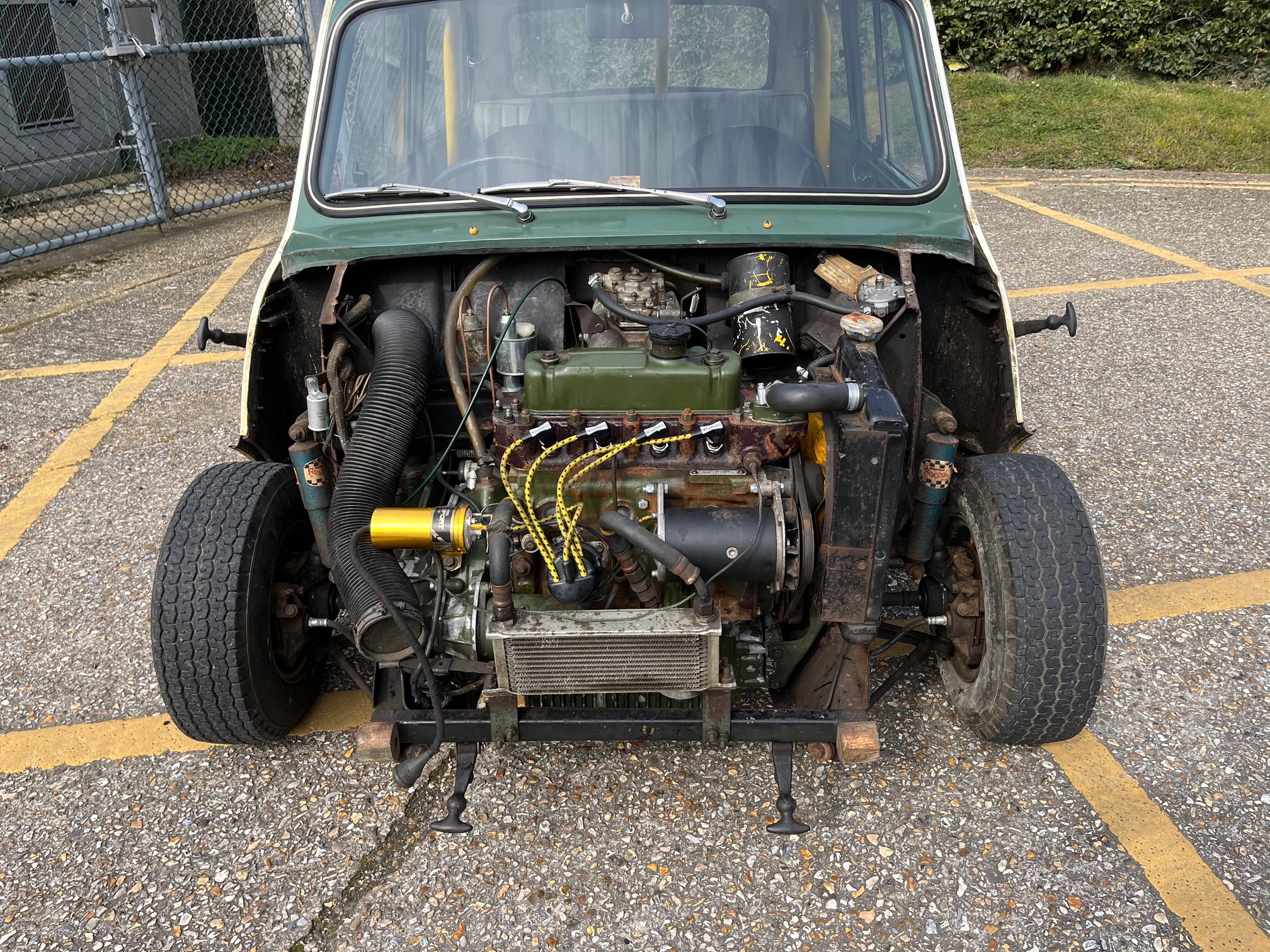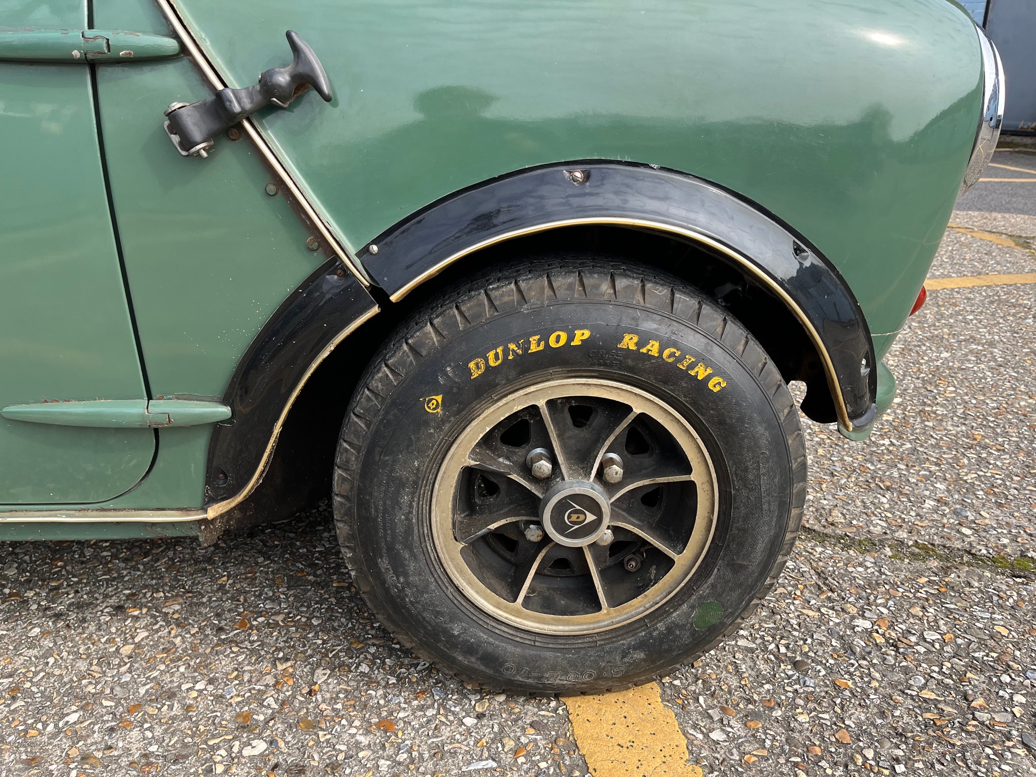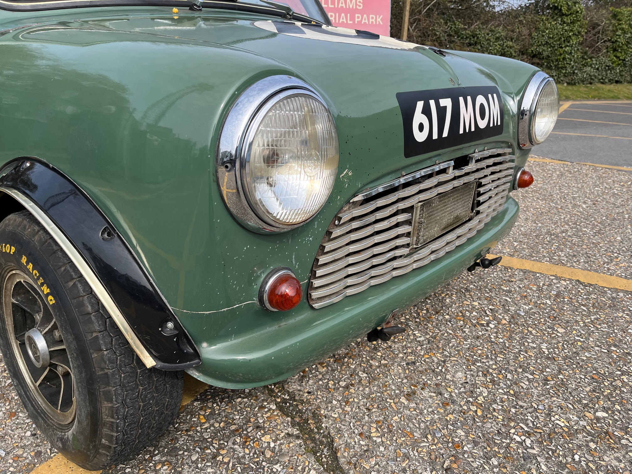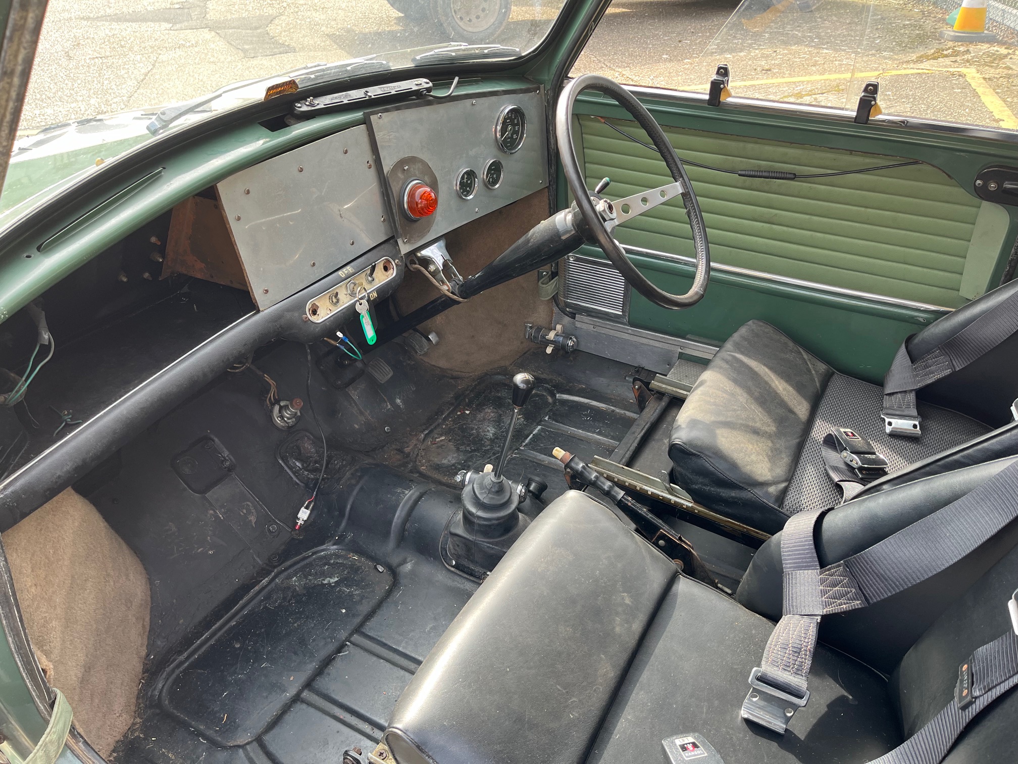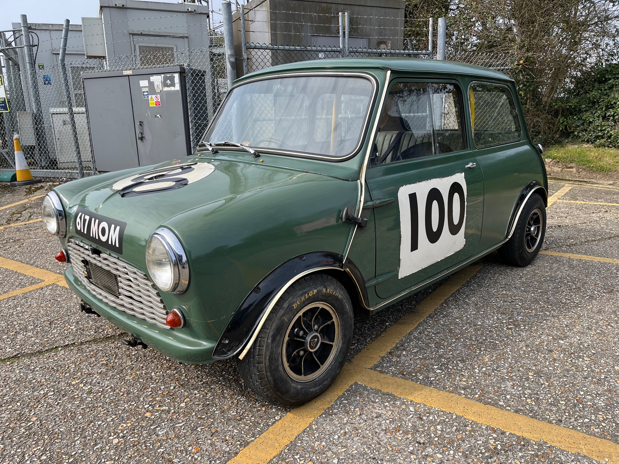 We are very pleased to offer a real piece of Classic Mini history, one that I have been excited to list and I also know is virtually unique with a fascinating story. The Mini “617MOM” was registered new in May 1964 by Neville Jeffrey who worked for Austin at Longbridge, he qualified for the works employer discount scheme and the supporting original sales invoice confirms that he paid the sum of £443 and 15 shillings. He also optioned the Super De Luxe spec complete with Porcelain green trim. After a few months he passed the Mini onto his son Edward who after a few years of using it as his daily transport decided to use it for Saloon Car racing. He was lucky enough to work for the right company and manged to not only fully convert it into a racer but also managed to fit it with an engine developed by Daniel Richmond of Downton engineering fame. It has an experimental A series block, which is briefly a thin wall S block with no tappet chest side covers which became the forerunner for the later A+ engine. Assembled by Special Tuning and known as an “XSP” experimental block, they were also fitted to Sebring Sprites in period and this particular well known Mini is featured on that website. The Mini was campaigned until the early seventies and then dry stored for over forty years and has such remained untouched offers a real insight that amazing Saloon Car Racing era and must be more or less unique. It is accompanied with lots of important paperwork from the era including invoices from Downton, Patrick Motors and Les Leston and a corresponding Heritage certificate. To this day it is still only a three owner Mini. Its last owner has cared for it for ten years and used it regularly.