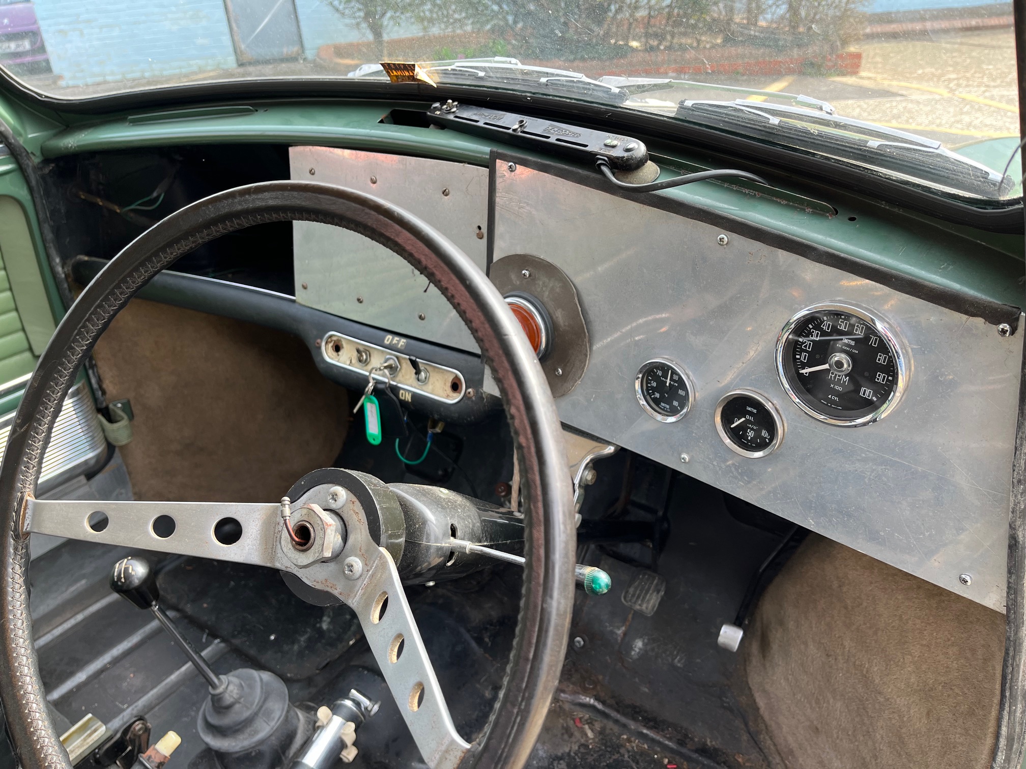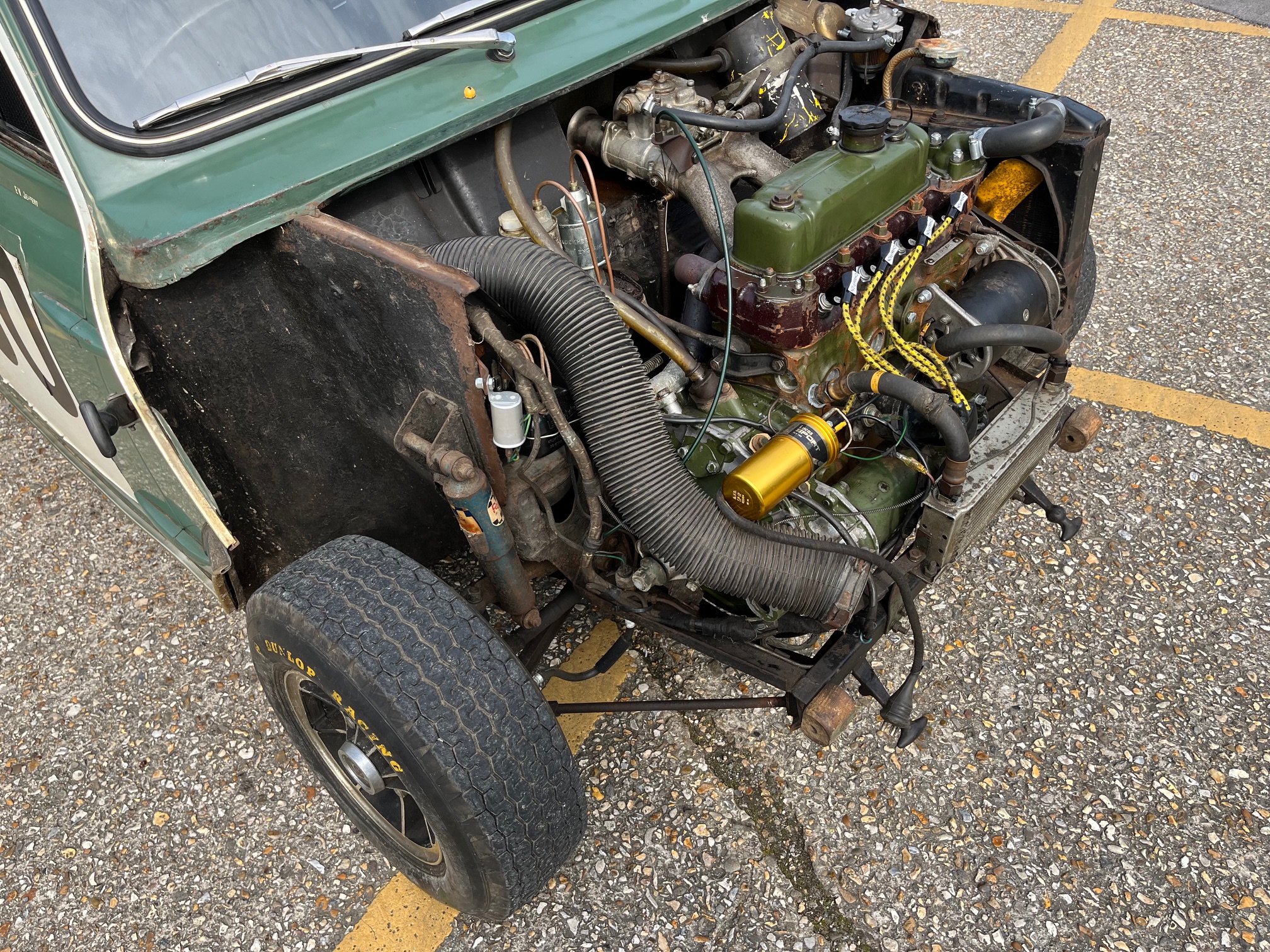 The Mini has a very solid shell and has its original floor pans and sills. For racing purposes it gained a GRP quick release boot lid and a Guy Performance Fibreglass front. It has a huge amount of patina and is really unrepeatable in this condition and would certainly draw crowds at any event as it has so much history and amazing looks.