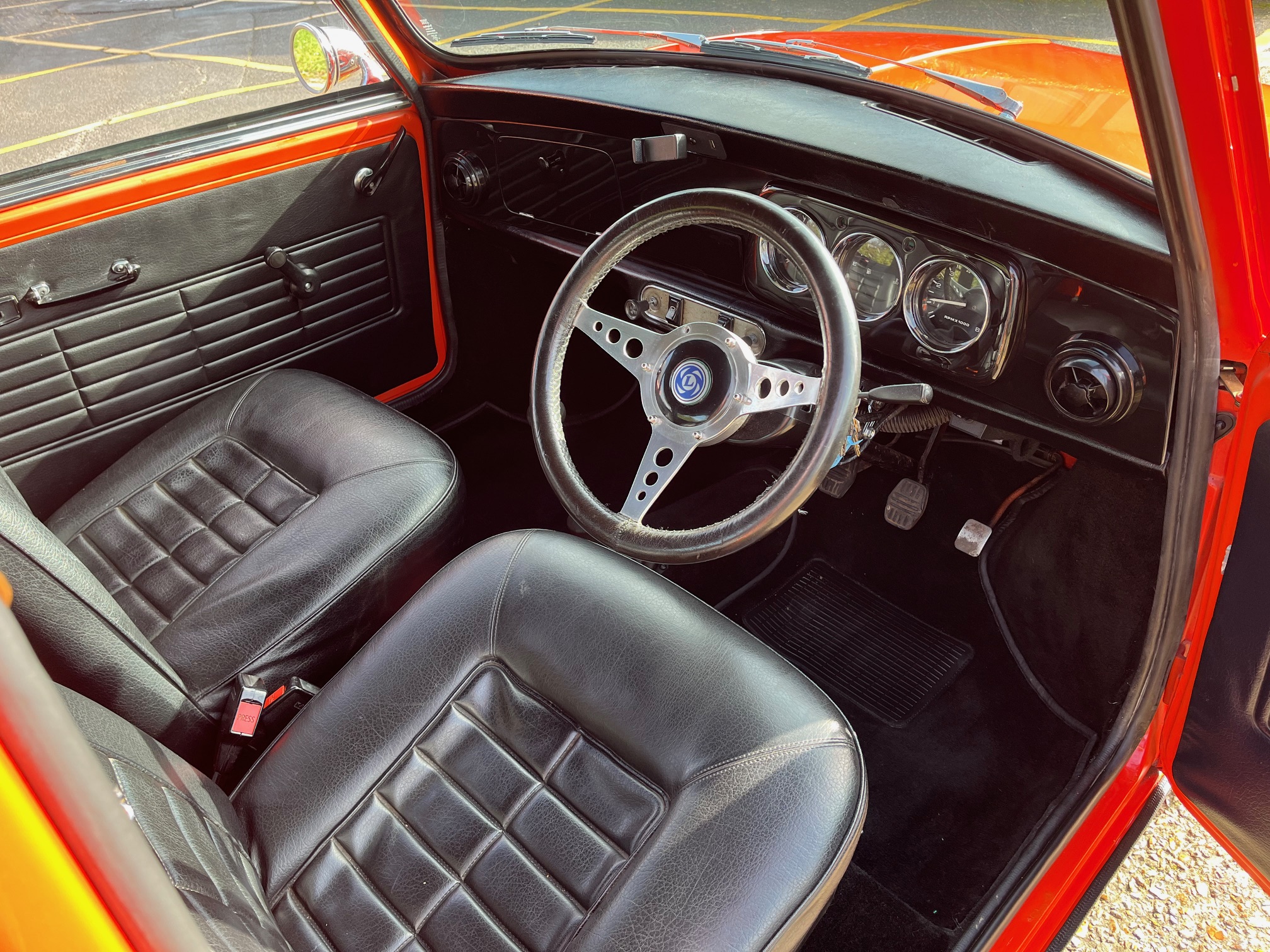The interior is very well presented with its original, unique to the early Clubman, seats that are very comfortable with matching door cards. It has had a recent roof liner, complete new carpet set, full length Charcoal black dash with three clocks including a rev counter, beautiful sports steering wheel and a very useful phone holder and USB charger.
