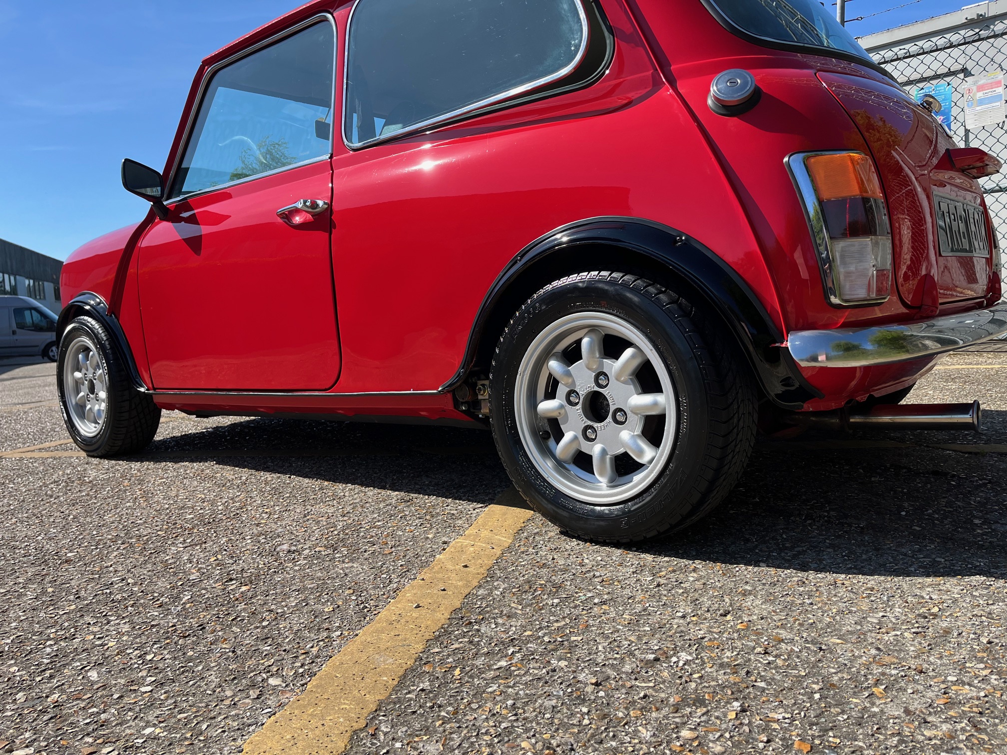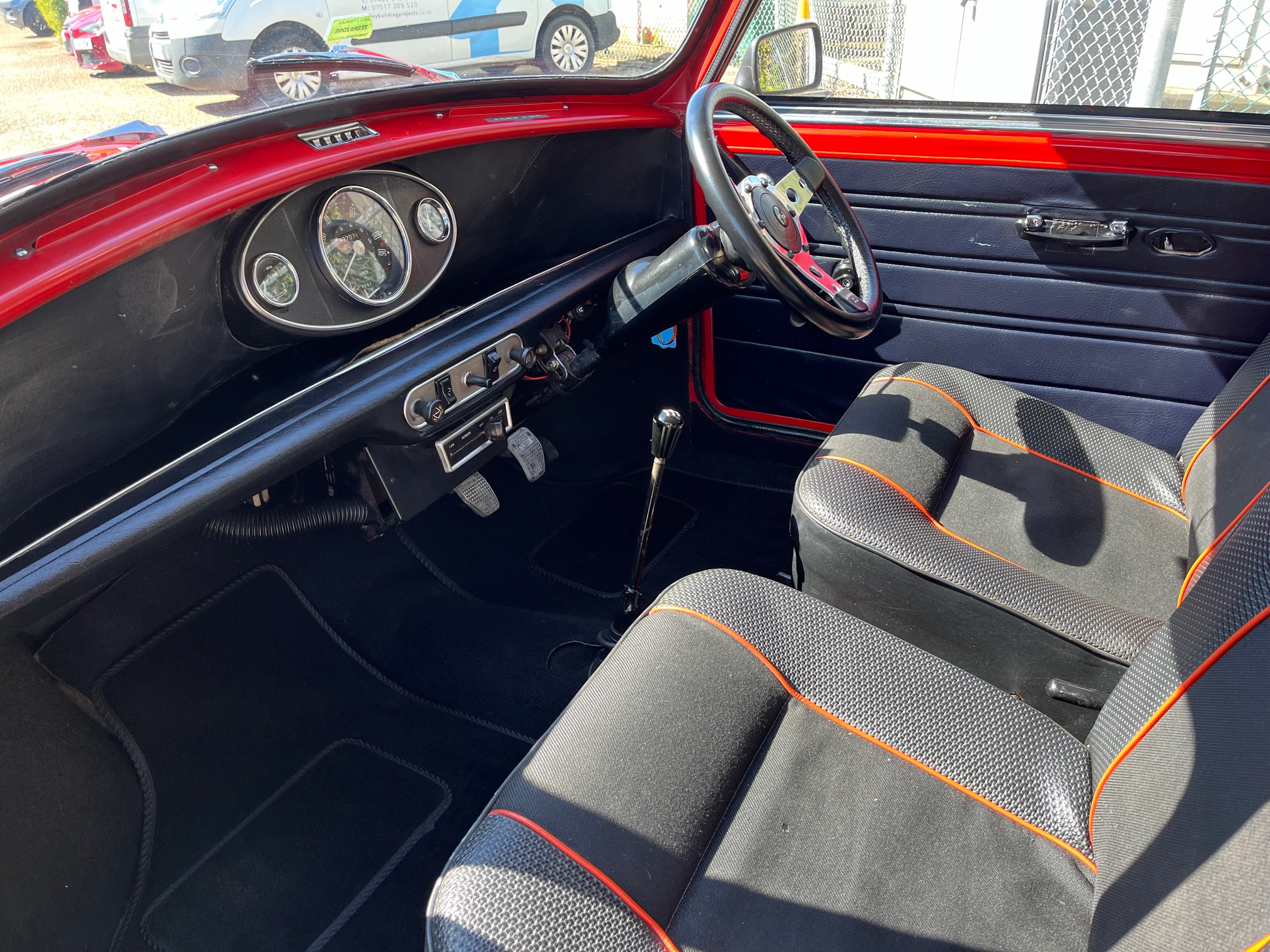 On the road this Mini offers endless fun. It is powered by a very healthy 1293cc engine built by Richard Parker Engines LTD. The spec briefly comprises of an 11 stud head, MG Metro Crank which is fully lightened and balanced with a centre main strap, lightened flywheel, lightened con rods with ARP bolts, big valve cylinder head with 1.7:1 roller rockers. All fed through a HIF44 Carb and a complete Maniflow exhaust system. To match the power the running gear has also been uprated and Poly bushed all round, it also has adjustable camber front and rear, Hi-Los and front and rear and replacement cones. It has a very sexy set of genuine Minilte alloys with wider profile tyres and disc brakes with a servo. Power delivery is smooth and the acceleration is very impressive right through the rev band, it keeps up with anything in its path and has that addictive fast road Mini burble. You will be smiling out on the open road.