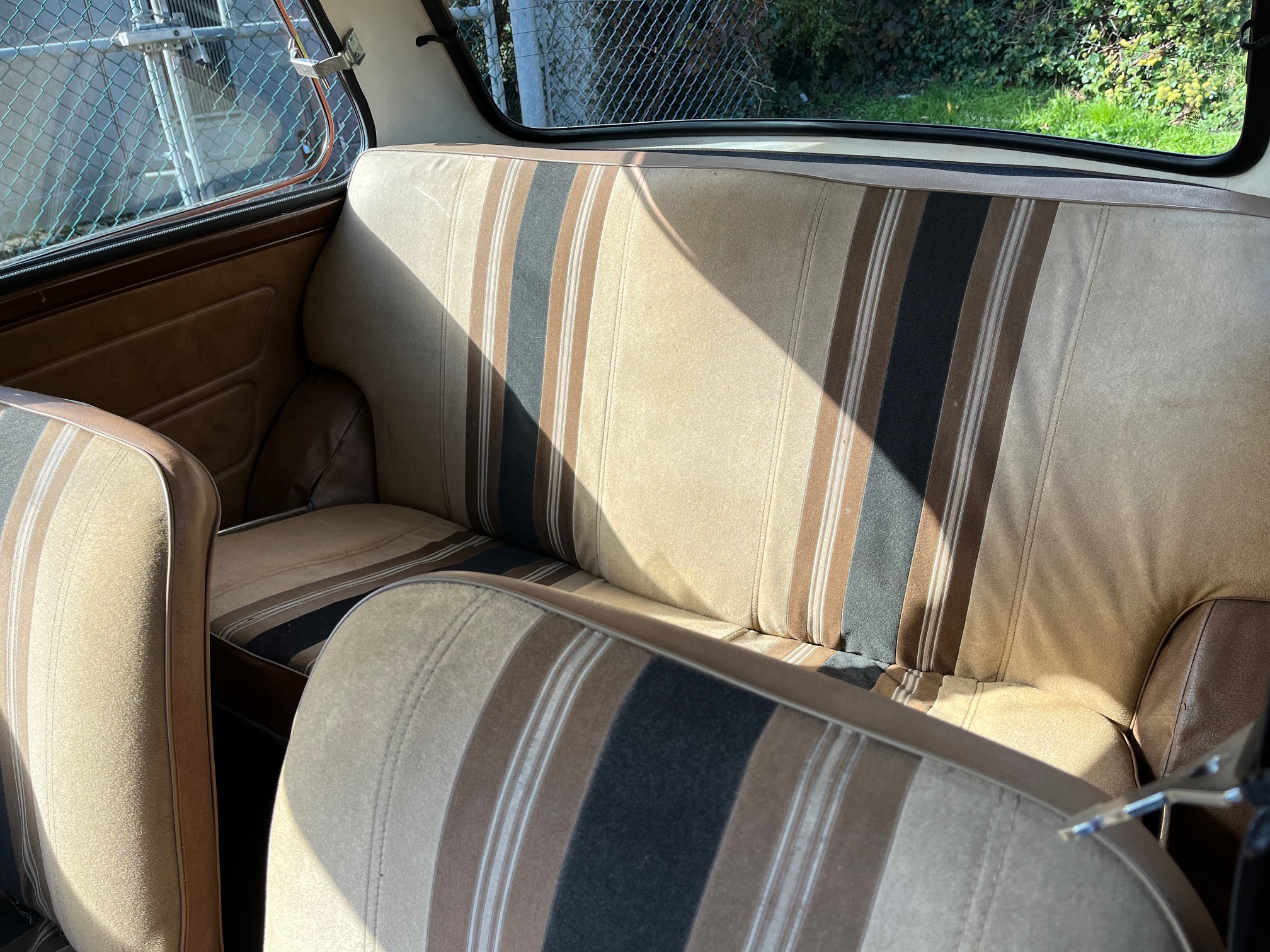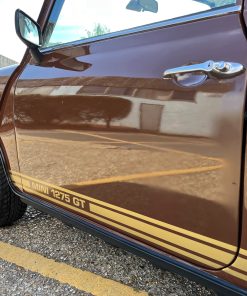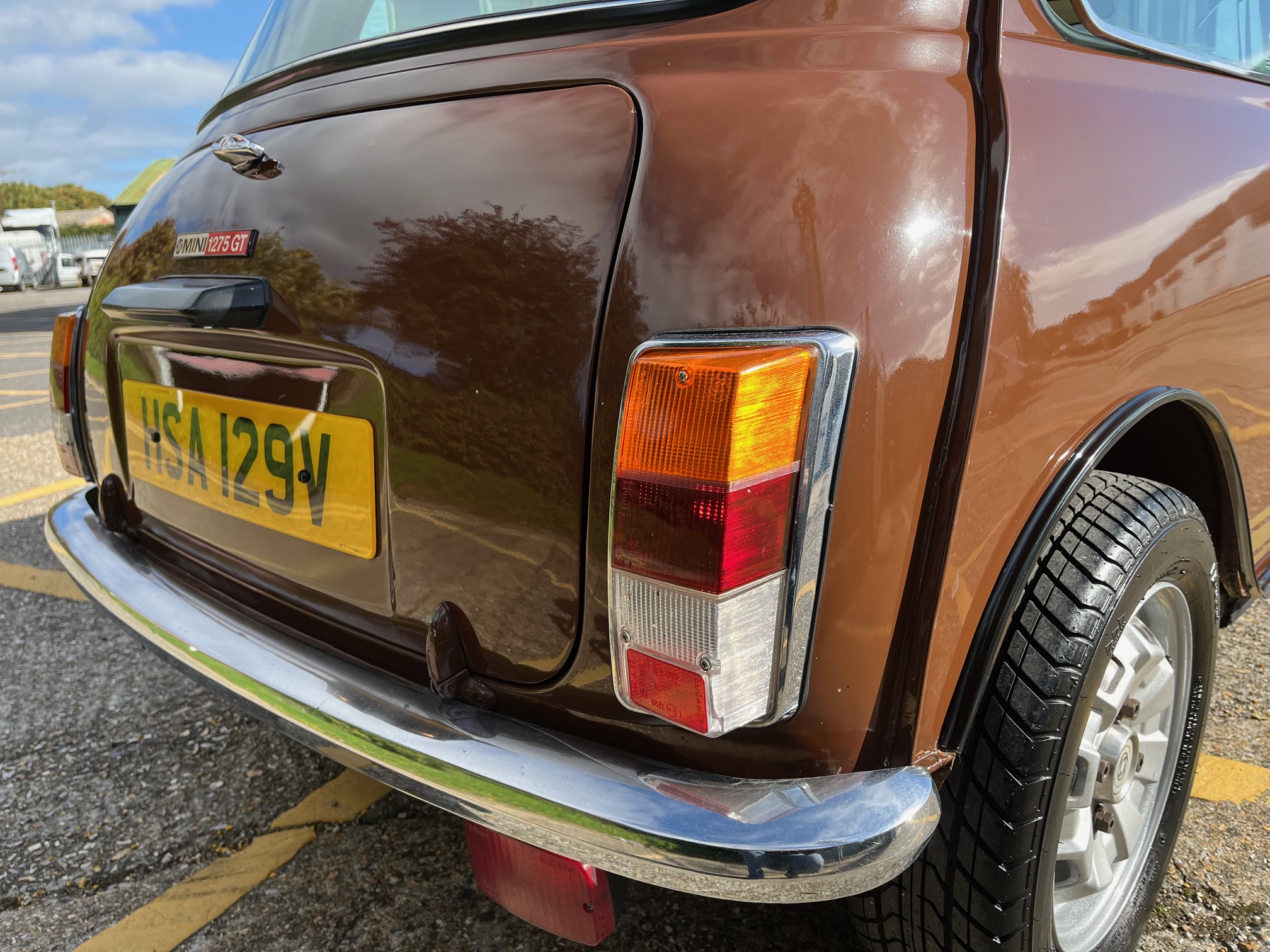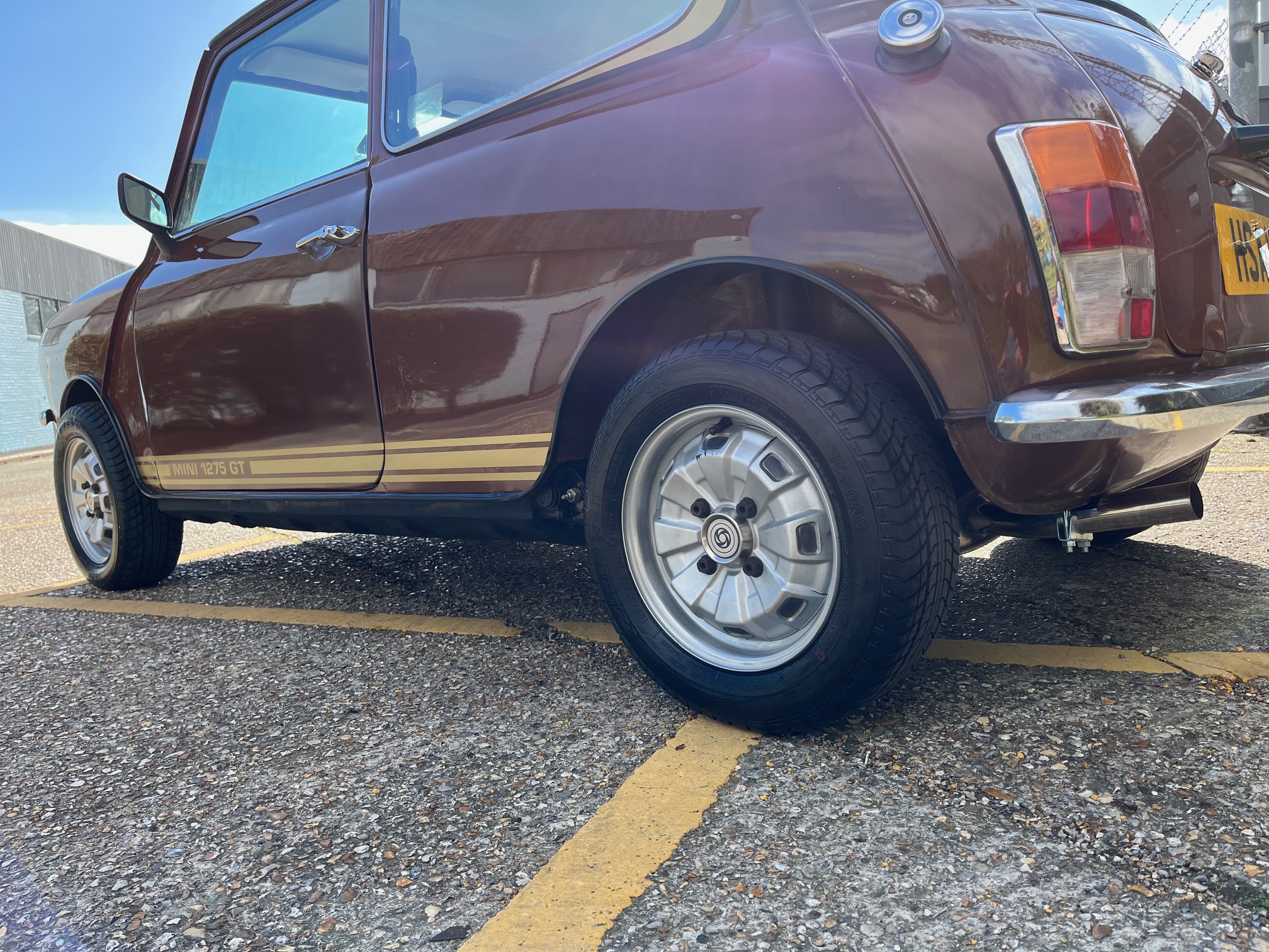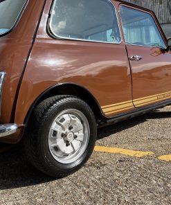 We are very pleased to offer a rare and iconic 1980 Austin Mini 1275 GT. These drivers cars have reached a high status amongst not just classic Mini enthusiasts but across the Classic Car scene and rightly so. GT’s are excellent fun to drive and they offer a real slice of Seventies motoring whilst being very useable at the same time. We have taken this GT in part exchange and it is offered as jump in and drive Mini with room for improvement. Finished in, what in my opinion, is the best colour ever for a Mini, Russet brown with contrasting gold coach lines and stripey trim. It still has its original wheel trims and wider profile tyres.