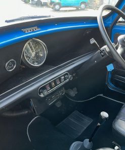 The interior is well presented and has been updated with a full Mini Equinox half leather interior offering more comfort on longer drives. It has matching door cards and very useful rear seat belts. The original roof lining is in very good condition and the all important single centre clock and large steering wheel is present and correct. It also benefits from an auxiliary temperature gauge and a double USB socket.