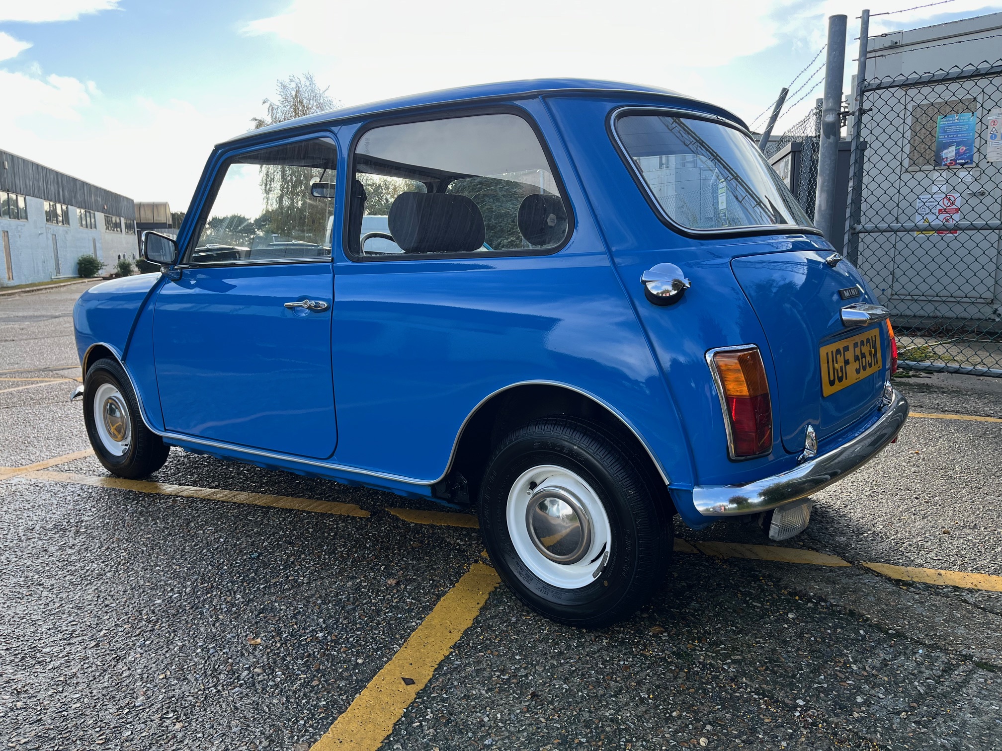 We are very pleased to offer a real slice of the eighties with a genuine matching numbers 1980 Austin Mini City 850. Quite a piece of Mini history as these were the last of the 850 Minis and are very rare in City spec. Finished in very period Pageant blue with contrasting ten inch white wheels. I am a big fan of this era of Mini, they offer the pure Mini driving experience, ten inch wheels, single centre clock and that fantastic steering wheel. They are so easy to drive and enjoy and at the same time are just simply cool. This example benefits from a thorough renovation in 2021 which covered all of the important running gear and is offered as a jump in and drive Mini, which is what they were intended to be. It has had only four previous owners in 45 years and has only covered 83k.