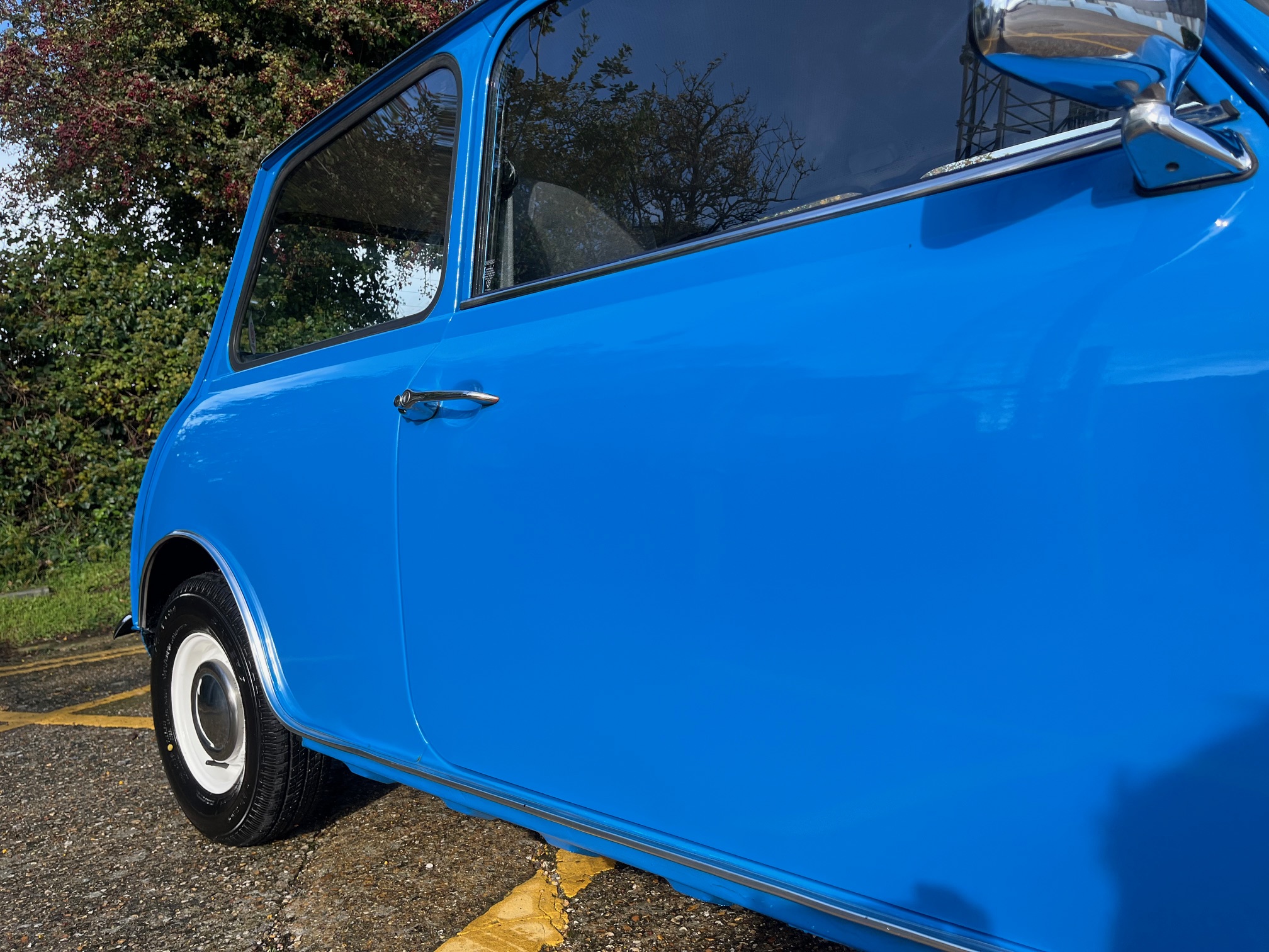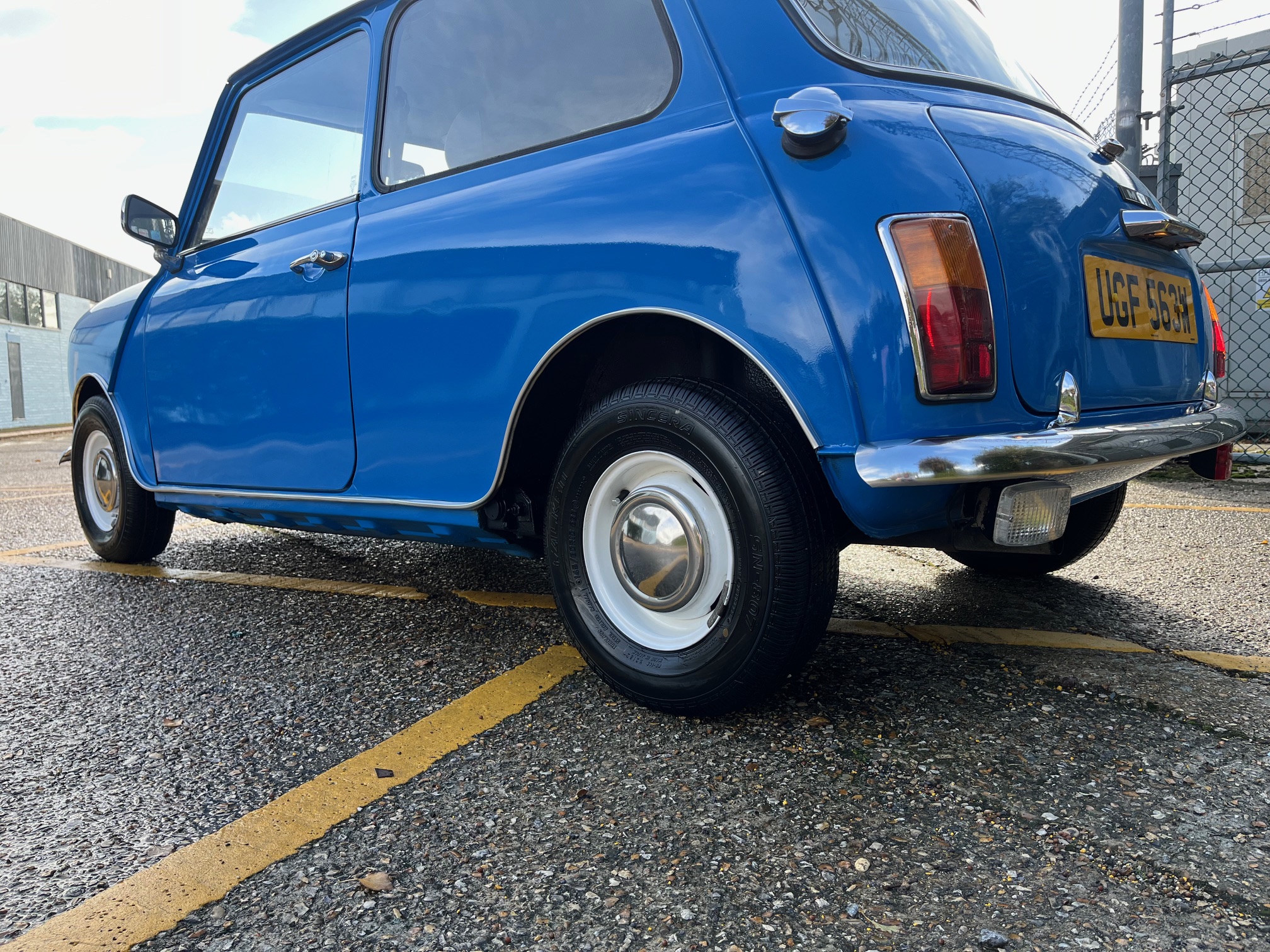 On the road this Mini drives very well. The 850cc engine is near silent and very healthy mated to a precise gearbox. It is more than happy keeping up with modern traffic and will happily cruise all day, I know as I have driven this Mini many times. The 850 can be underestimated but a good one like this will certainly surprise you performance wise as it really flies. The legendary handling is on offer thanks to the ten inch wheels that have nearly new Falken tyres all round. As mentioned it has had a recent brake and suspension overhaul so handles and stops beautifully. It also benefits from electronic ignition offering a fantastic level of reliability. It certainly makes you smile and on top of that it gets so much attention, people just love seeing this Mini, the colour is a firm favourite.