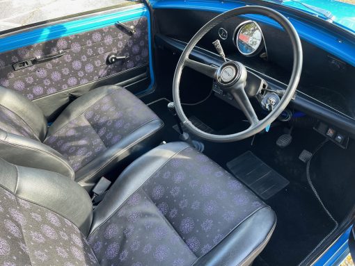 We are very pleased to offer a real slice of the eighties with a genuine matching numbers 1980 Austin Mini City 850. Quite a piece of Mini history as these were the last of the 850 Minis and are very rare in City spec. Finished in very period Pageant blue with contrasting ten inch white wheels. I am a big fan of this era of Mini, they offer the pure Mini driving experience, ten inch wheels, single centre clock and that fantastic steering wheel. They are so easy to drive and enjoy and at the same time are just simply cool. This example benefits from a thorough renovation in 2021 which covered all of the important running gear and is offered as a jump in and drive Mini, which is what they were intended to be. It has had only four previous owners in 45 years and has only covered 83k.
