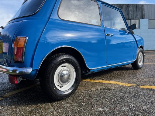 On the road this Mini drives very well. The 850cc engine is near silent and very healthy mated to a precise gearbox. It is more than happy keeping up with modern traffic and will happily cruise all day, I know as I have driven this Mini many times. The 850 can be underestimated but a good one like this will certainly surprise you performance wise as it really flies. The legendary handling is on offer thanks to the ten inch wheels that have nearly new Falken tyres all round. As mentioned it has had a recent brake and suspension overhaul so handles and stops beautifully. It also benefits from electronic ignition offering a fantastic level of reliability. It certainly makes you smile and on top of that it gets so much attention, people just love seeing this Mini, the colour is a firm favourite.