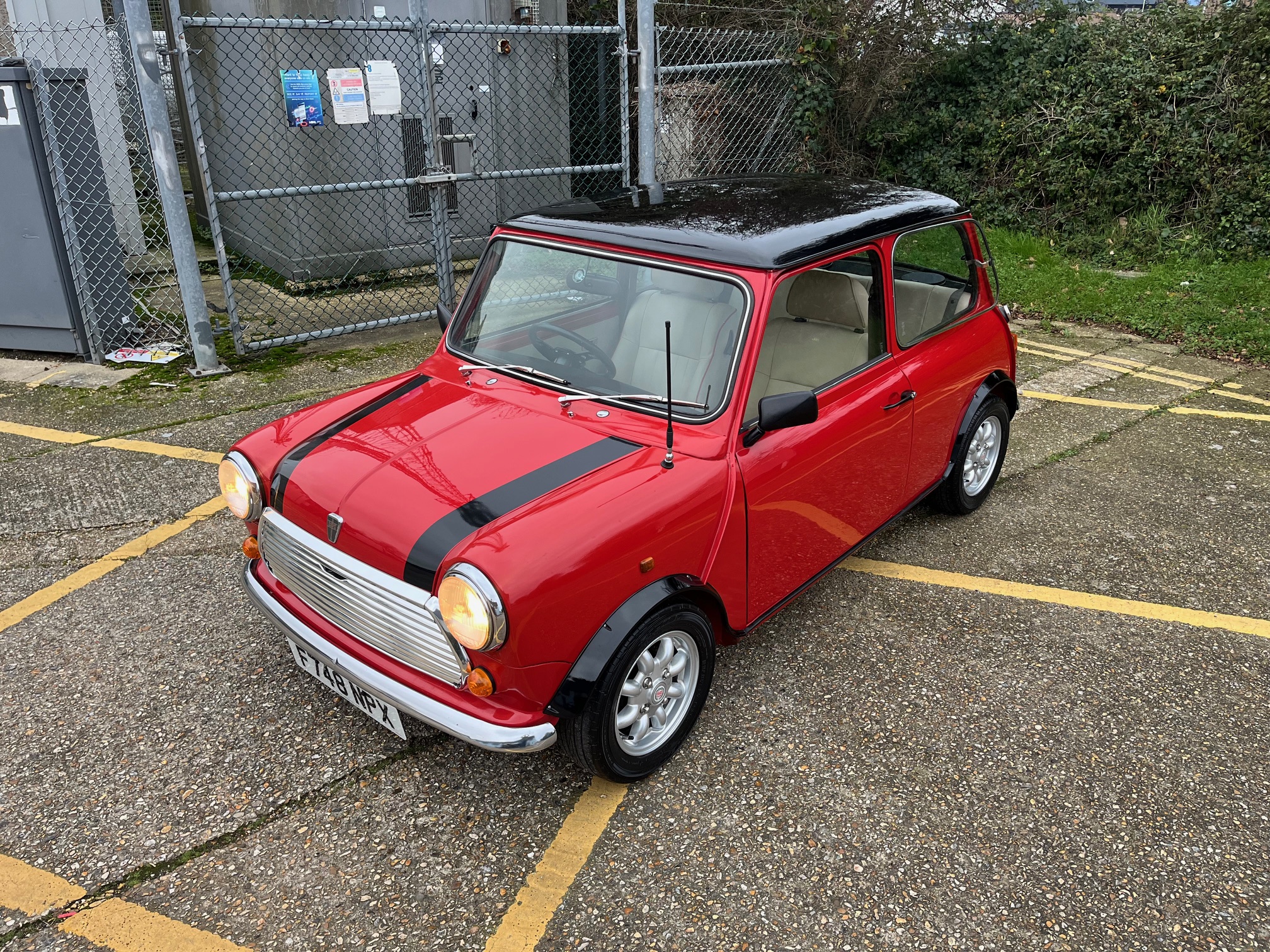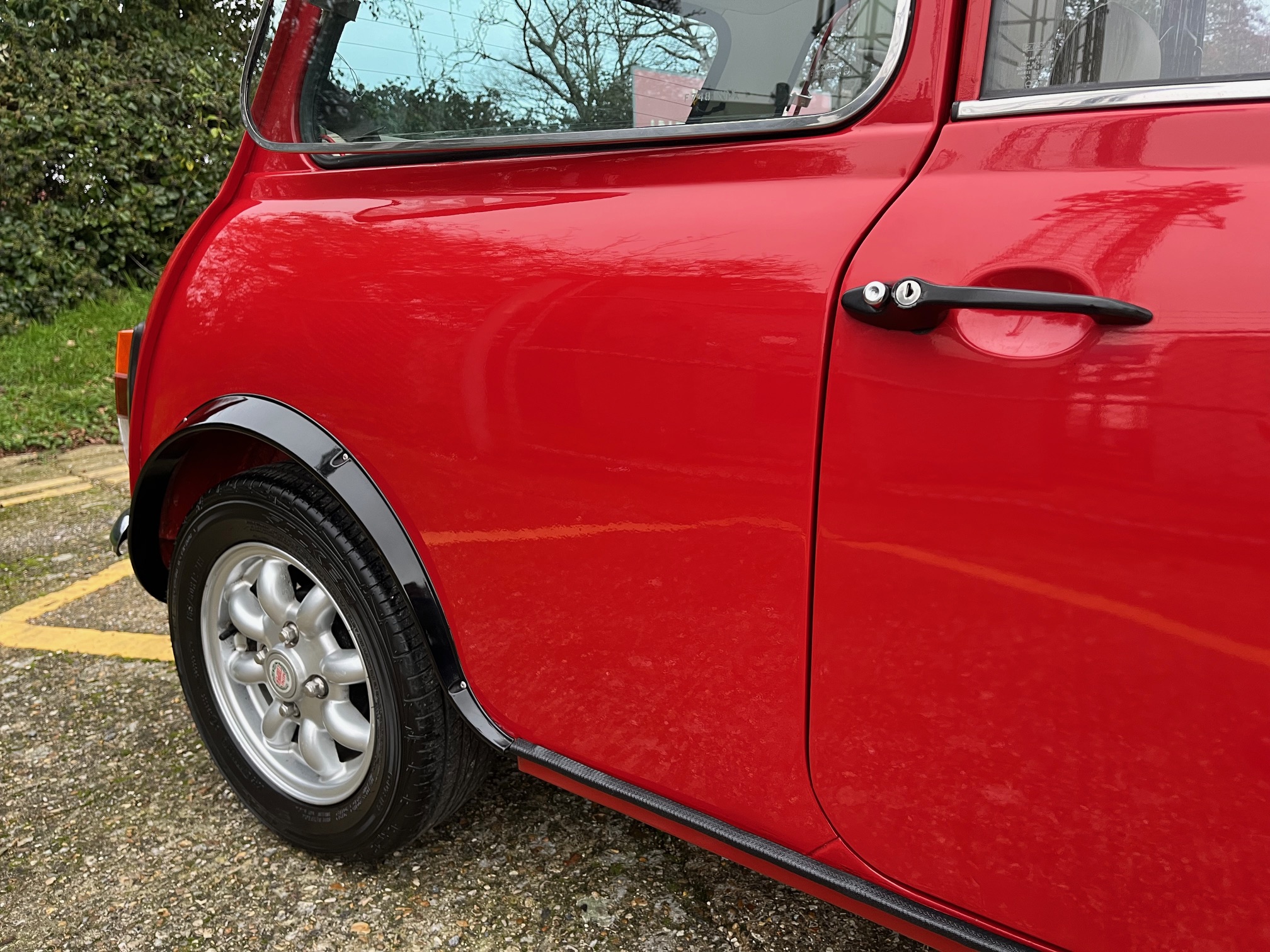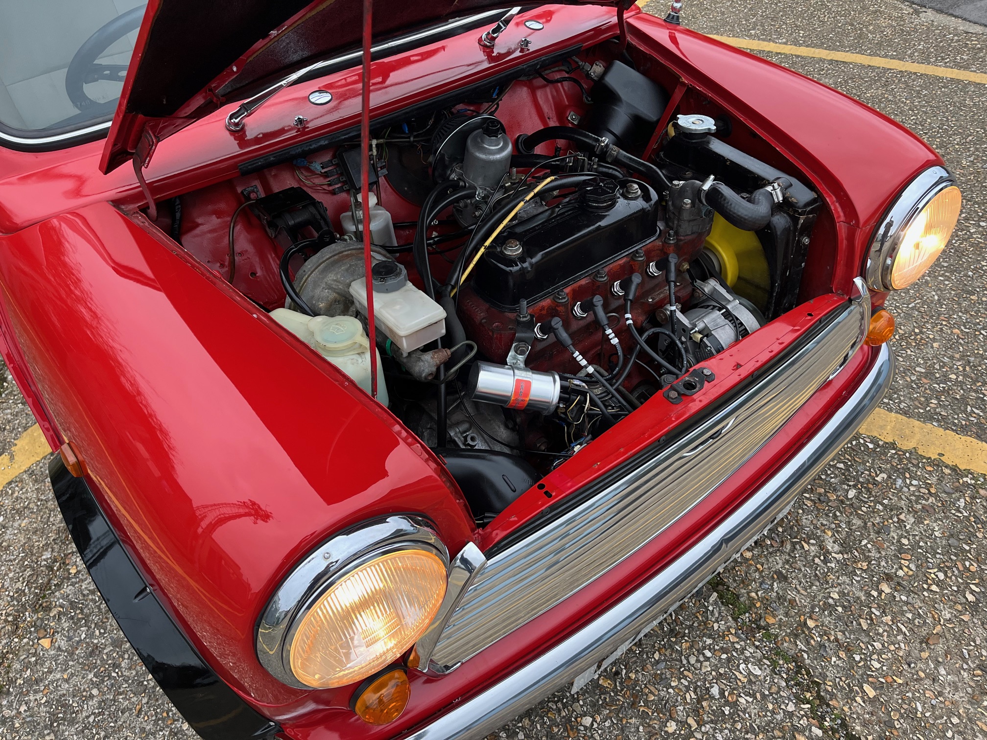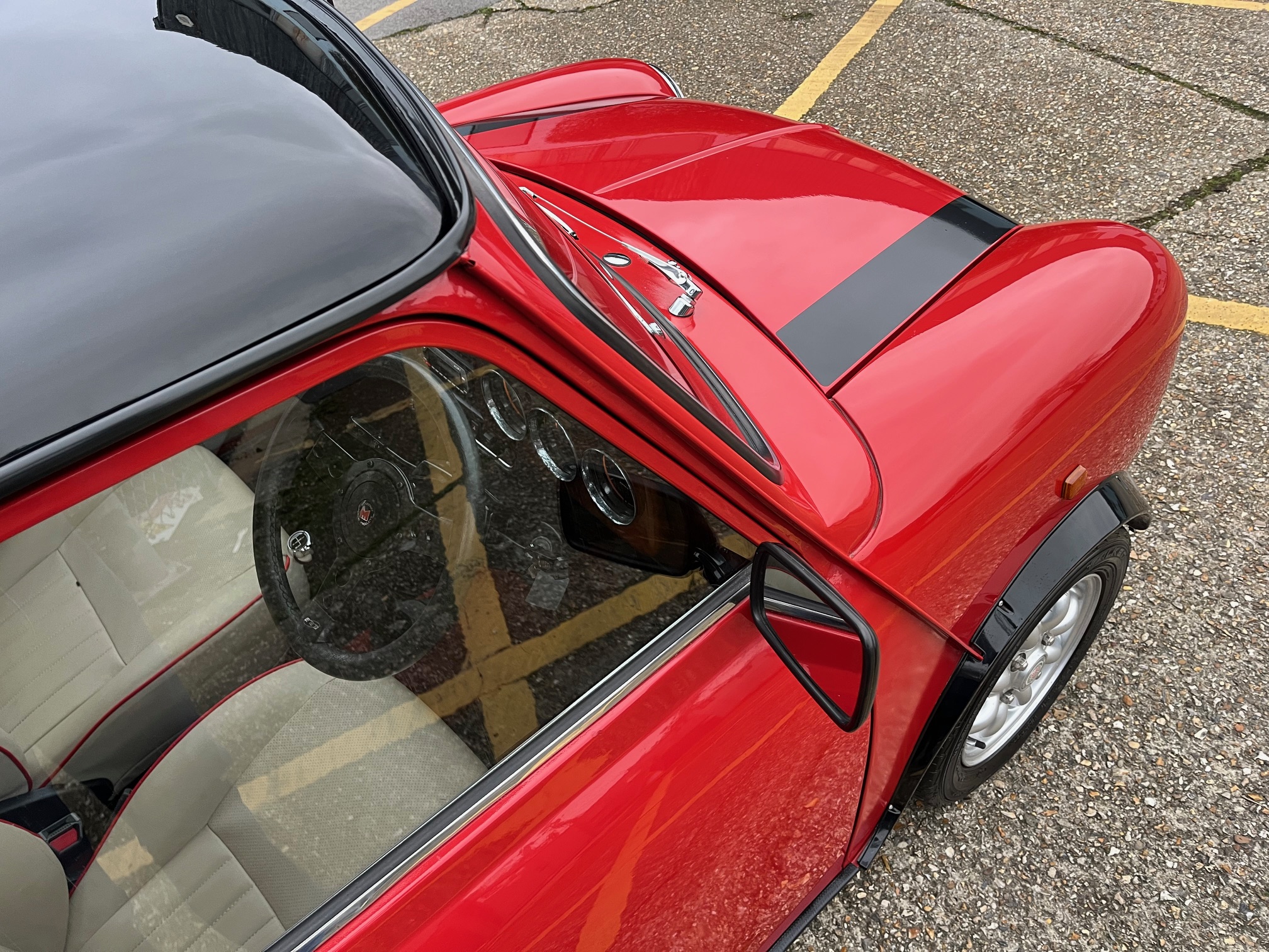 We are very pleased to offer a ready to use and enjoy 1989 Austin Mini Mayfair. Finished in Flame red with a contrasting black roof, gloss black wheel arches, Cooper wide slat grille and Minilite wheels. This Mayfair has Cooper looks with 1275 power so it also has exciting performance. It has covered 75k in 36 years and is accompanied with a detailed service history folder, its last owner of eight years loved and cherished the Mini and treated it to a long list of extras and upgrades.