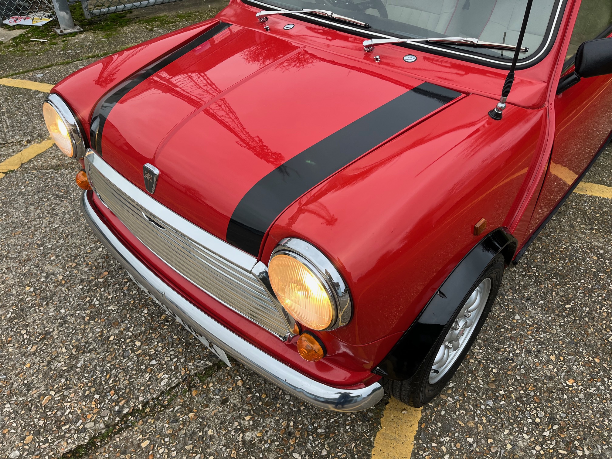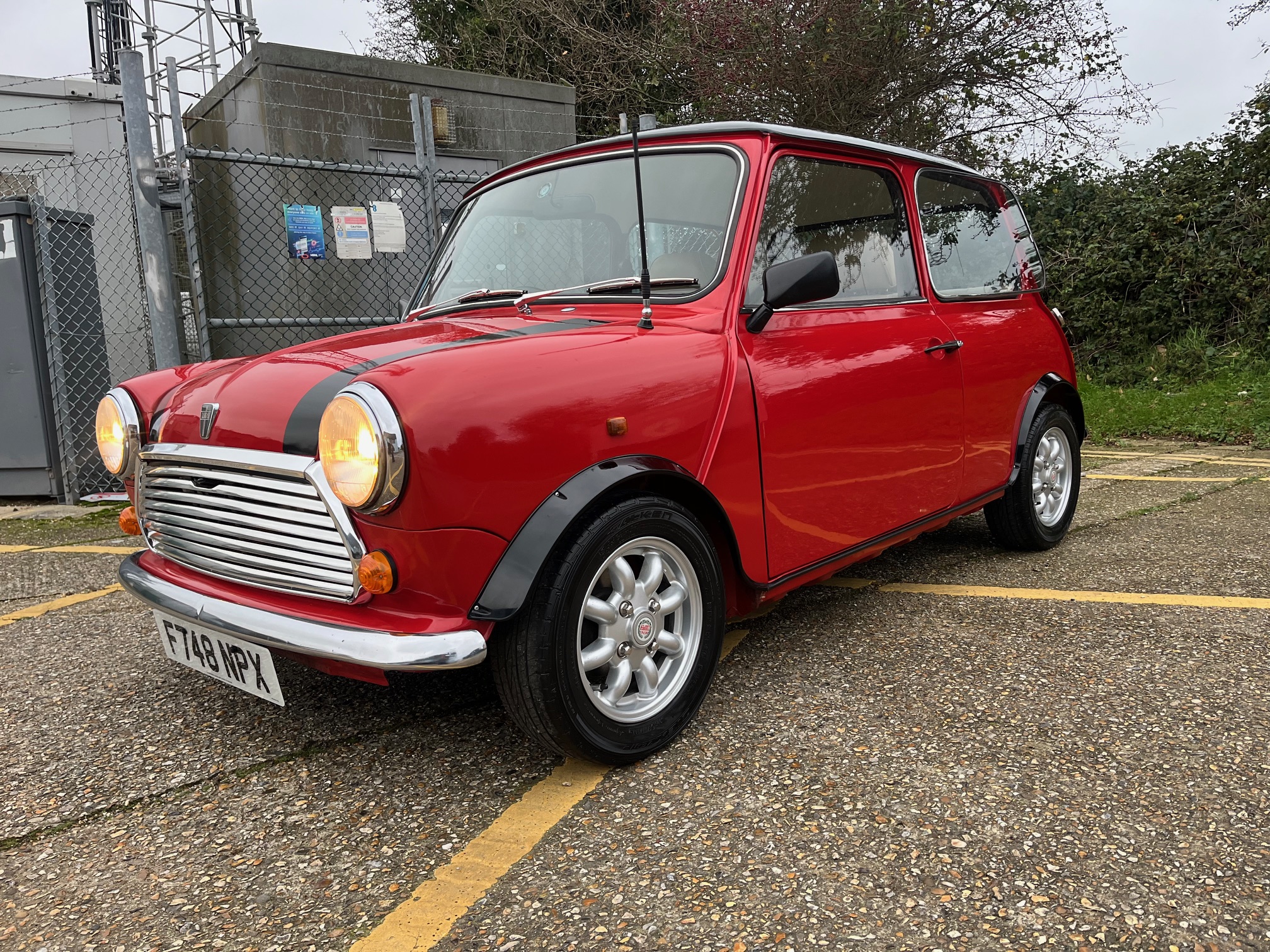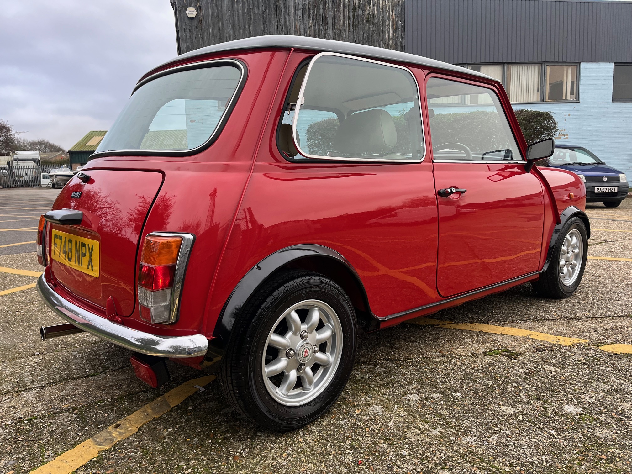 We are very pleased to offer a ready to use and enjoy 1989 Austin Mini Mayfair. Finished in Flame red with a contrasting black roof, gloss black wheel arches, Cooper wide slat grille and Minilite wheels. This Mayfair has Cooper looks with 1275 power so it also has exciting performance. It has covered 75k in 36 years and is accompanied with a detailed service history folder, its last owner of eight years loved and cherished the Mini and treated it to a long list of extras and upgrades.