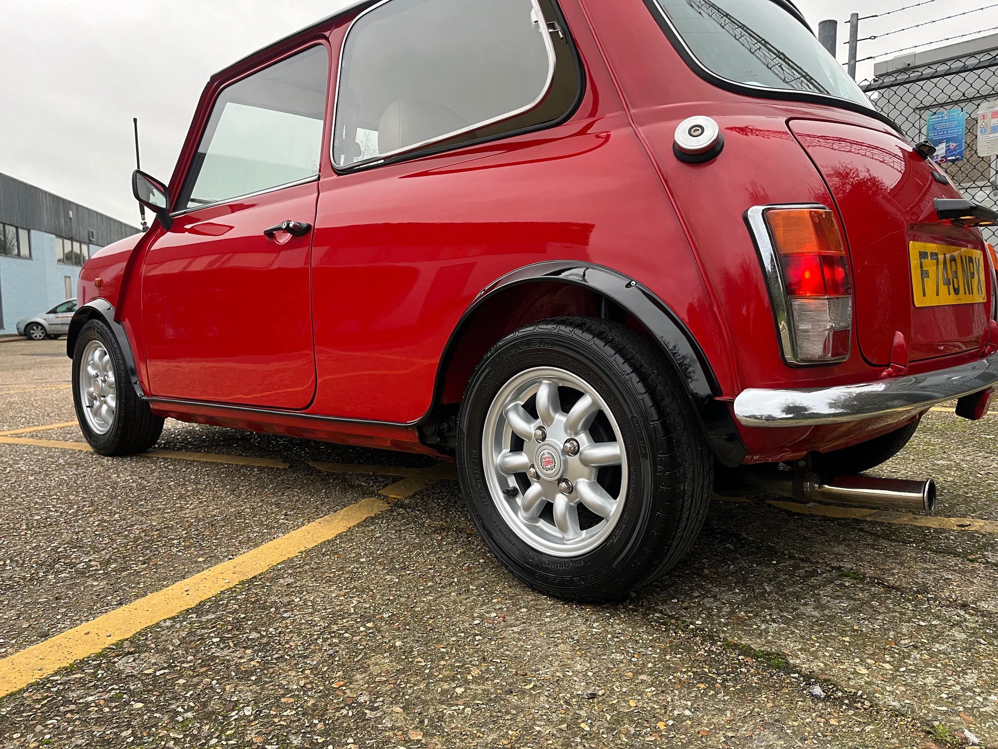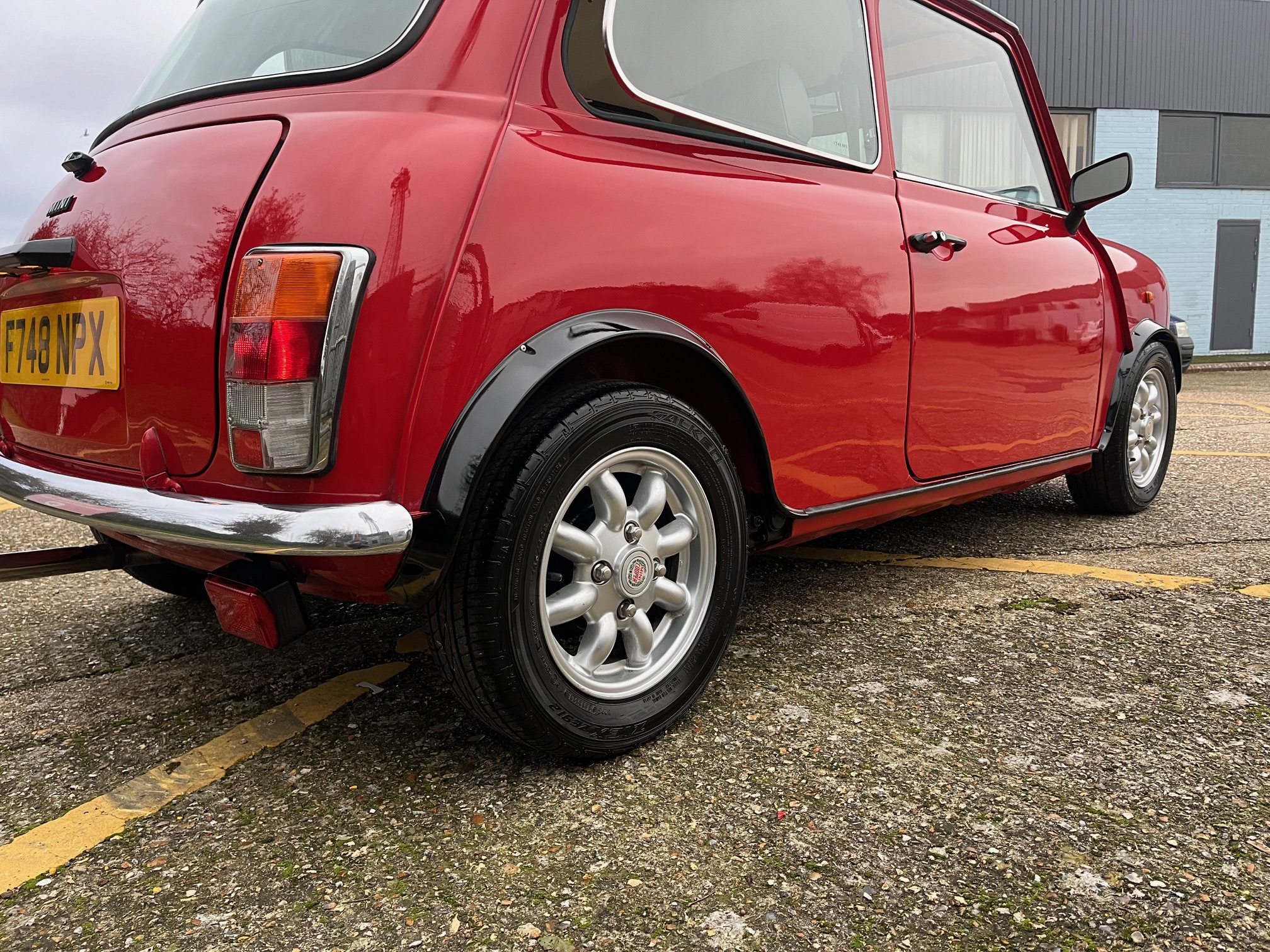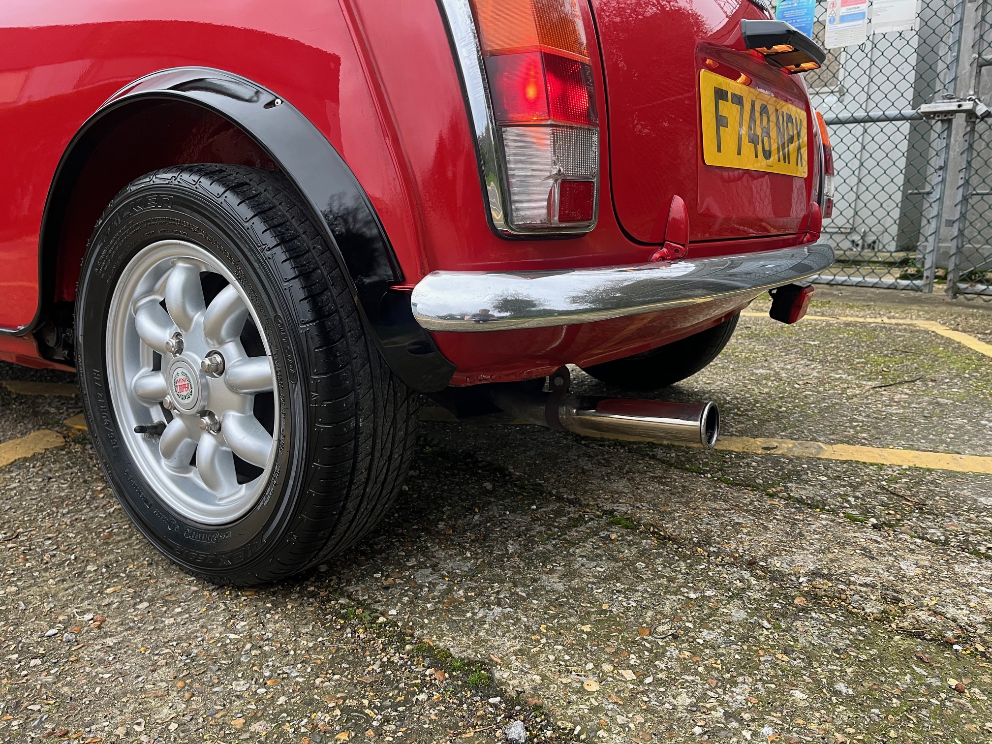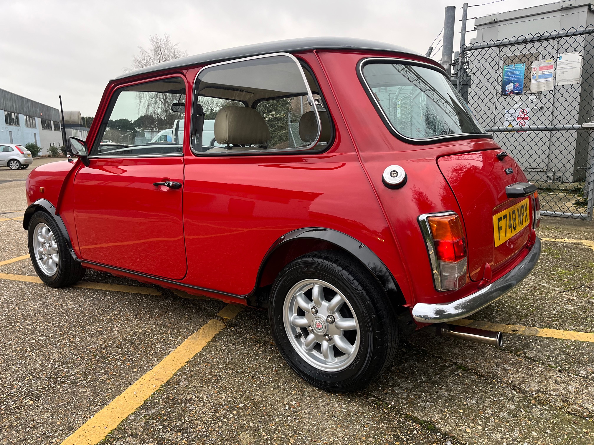 We are very pleased to offer a ready to use and enjoy 1989 Austin Mini Mayfair. Finished in Flame red with a contrasting black roof, gloss black wheel arches, Cooper wide slat grille and Minilite wheels. This Mayfair has Cooper looks with 1275 power so it also has exciting performance. It has covered 75k in 36 years and is accompanied with a detailed service history folder, its last owner of eight years loved and cherished the Mini and treated it to a long list of extras and upgrades.