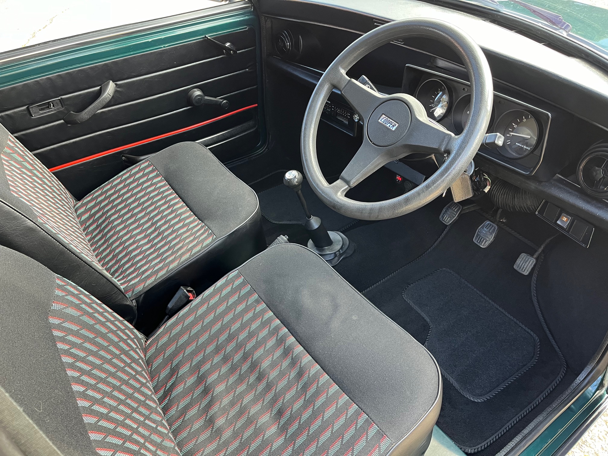 The Mini has a very solid shell with solid floors, vented sills and the rear subframe looks nearly new. The paintwork is well presented and it belies its 35 year vintage. It has its original Minilite wheels with the RSP wheel nut configuration. This is a subtle looking Mini that will certainly surprise people. If you want a drivers Mini the this also a piece of history may just be the one for you.