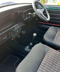 The interior is very original and as it left the factory. Crayon Black trim, original carpets and roof liner. Three clock dash with rev counter and the original Rover cassette player. It also has twin USB ports. This model also has rear seat belts.