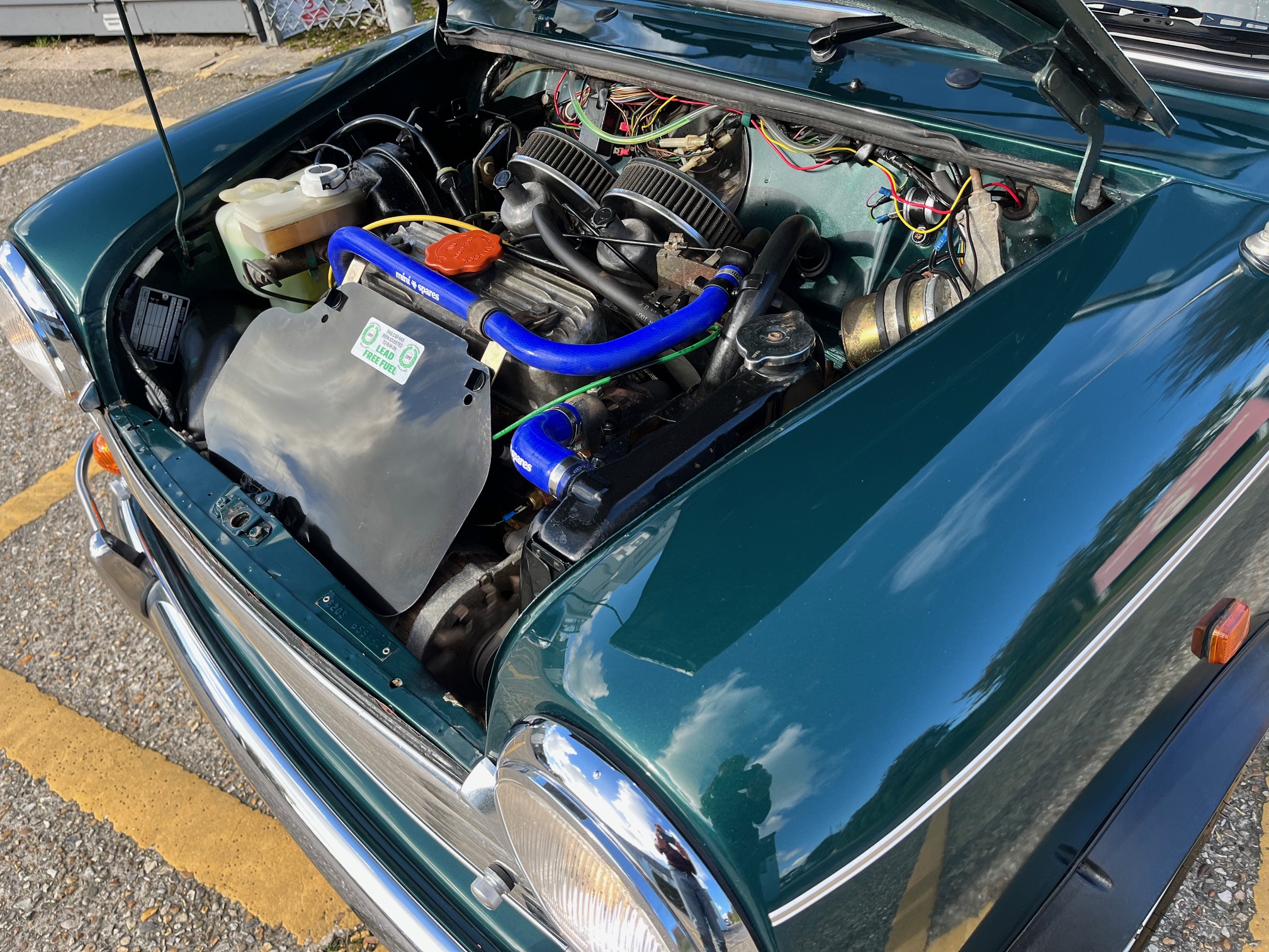 On the road is where the fun starts. The 998 engine is very smooth and the gearbox is precise. The kit consisted of twin HS2 Carburettors, polished flowed cylinder head and a performance exhaust system. This gave the Mini a very healthy 64 BHP with 87Nm of Torque and a top speed of over 90 MPH. Power is instant and it revs freely through the rev band with impressive torque whilst being very smooth around town. Put your foot down and the twin carb growl will instantly make you grin, easily keeping up with anything in its path. This is a very special Mini to drive and hopefully its lucky new owner will enjoy driving it as much as I have.