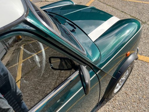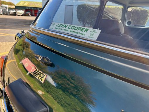 We are very pleased and excited to offer a real piece of Classic Mini history. In 1989 John Cooper Garages decided to take the bull by the horns and started to produce in house tuning kits for the Mini. It had been nearly twenty years since Mini Cooper production had ceased and the public were left wanting speed and excitement. Brand new Limited Edition Minis were converted under license from Rover and given the “John Cooper Conversion” Turning the humble 998 Mini into a fast road drivers machine which paved the way for the relaunch of the Mini Cooper the following year. Only a handful of these special Minis survive, I have only ever prepared one other and I am pleased top say that they still offer plenty of excitement, power, sound and fun, which is what we all need more of. Registered new Mann Egerton in Norwich, this Racing Green edition has only had three previous owners in 35 years and has only covered 77k. It is accompanied with all of its original Handbooks, service book, original dealer registration plates, Racing Green brochure and John Cooper Garages conversion Data sheet, brochure and the all important conversion certificate. It also has a large history folder stretching back to the early nineties.