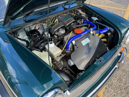On the road is where the fun starts. The 998 engine is very smooth and the gearbox is precise. The kit consisted of twin HS2 Carburettors, polished flowed cylinder head and a performance exhaust system. This gave the Mini a very healthy 64 BHP with 87Nm of Torque and a top speed of over 90 MPH. Power is instant and it revs freely through the rev band with impressive torque whilst being very smooth around town. Put your foot down and the twin carb growl will instantly make you grin, easily keeping up with anything in its path. This is a very special Mini to drive and hopefully its lucky new owner will enjoy driving it as much as I have.