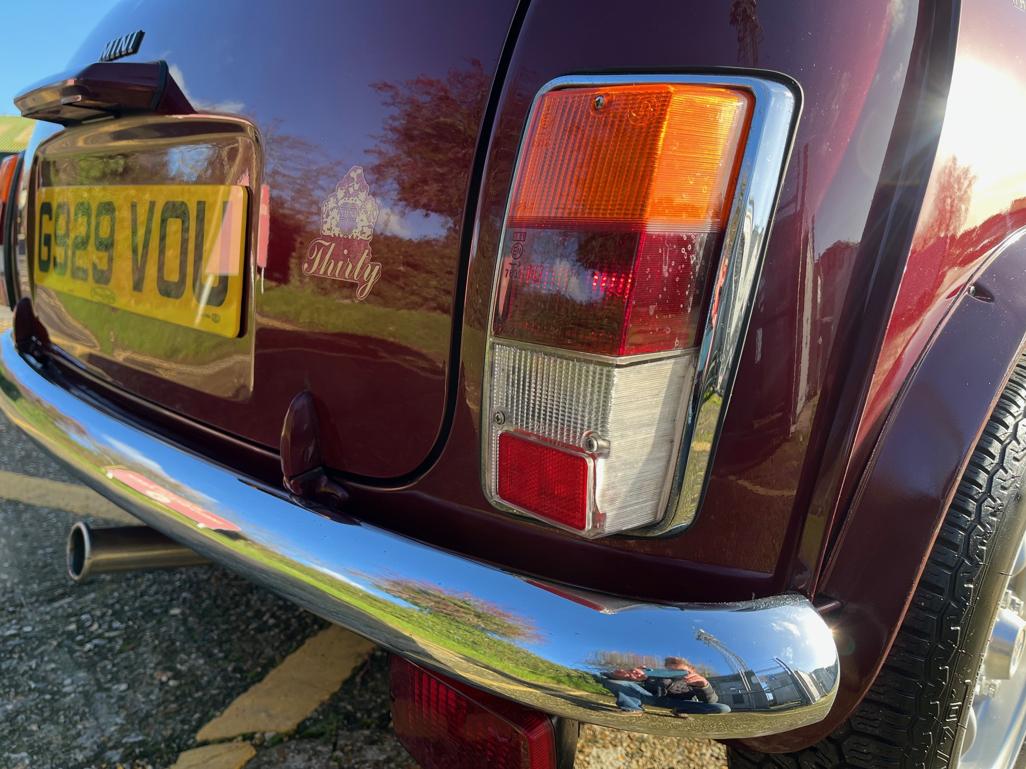 We are very pleased to offer a stunning 1990 Rover Mini Thirty LE. Produced to celebrate 30 years of Mini production and one of a limited run of only 2000 in metallic Cherry red with only with only 260 remaining. They have always been one of the classiest limited editions that were produced and featured twin coach lines with unique 59-89 badging, colour coded wheel arches and mirrors. Minilite alloy wheels, half leather seats, leather steering wheel and red carpets. This example is a very rare find and one of the best preserved and cherished Mini Thirties that I have prepared. It has only covered a very low 31k in 35 years with just 3 owners. The last lady has loved and cared for this Mini since 2002. It has been meticulously serviced every year and garaged the entire time. It is accompanied with a detailed service history including a large folder of service receipts, MOT certificates and a fully stamped service book along with the original handbooks. Registered new by Clist and Rattle in Bristol and still proudly wearing both its original supplying dealer number plates.