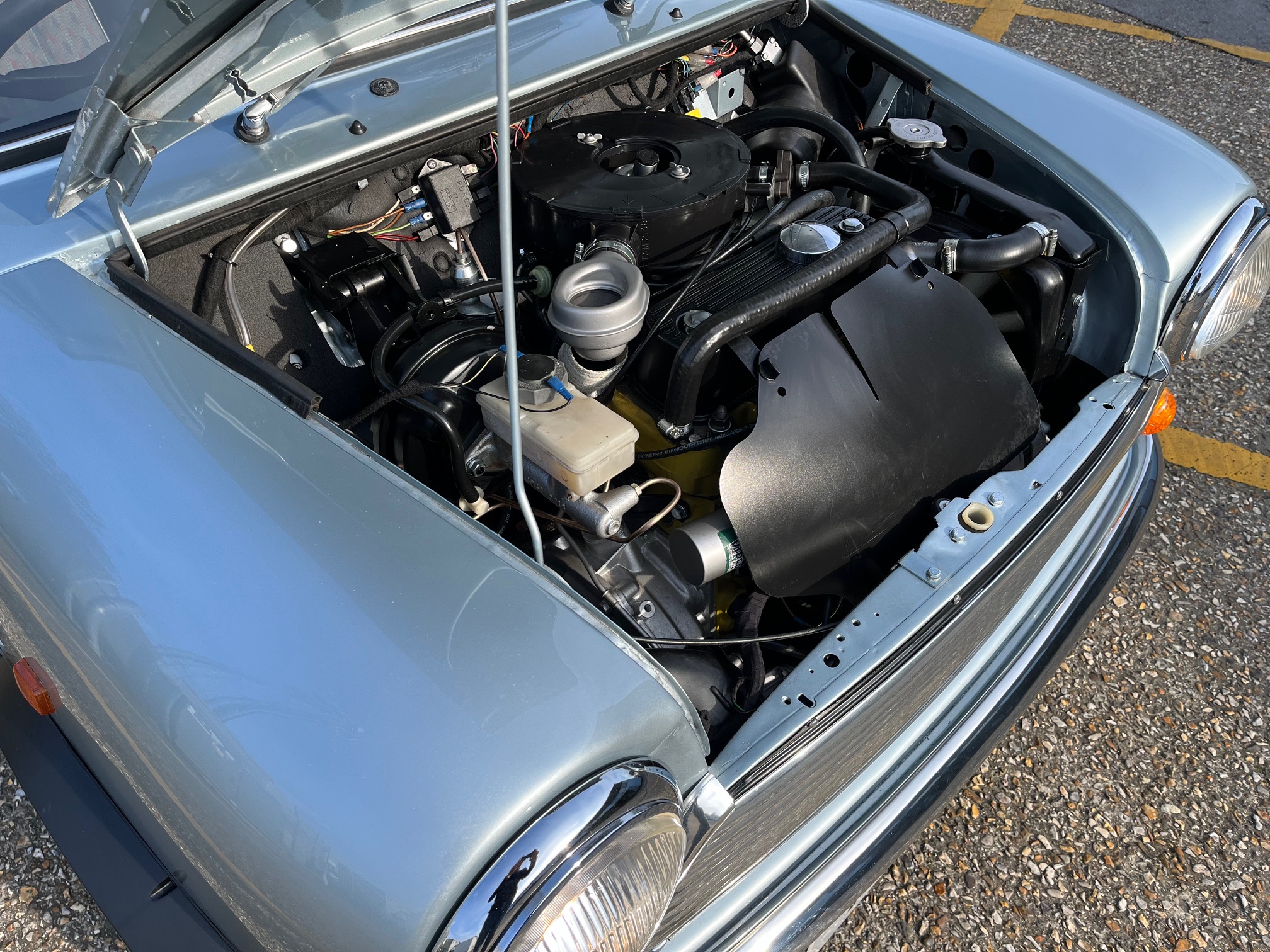 The Mini has a fantastic shell and has recently been taken back to bare metal so no stone has been left unturned here. It has solid floors, the correct vented sills and a highly detailed underside with powder coated subframes. The paintwork is gleaming, the Quicksilver really suits the Mini shape, this is a good looking Mini that has been a pleasure to prepare and drive.