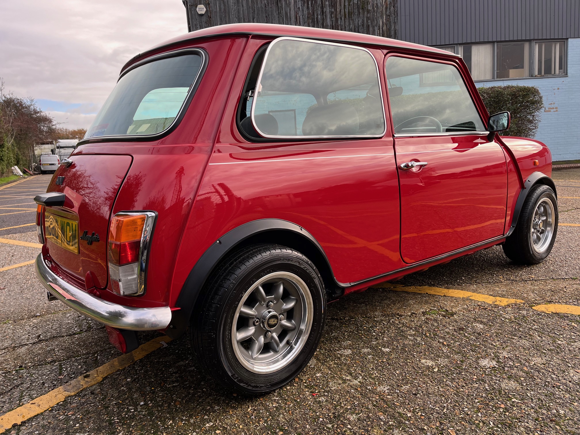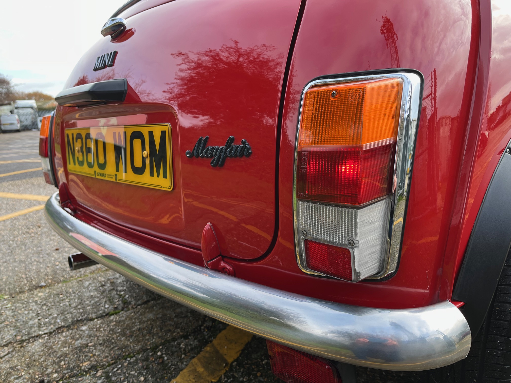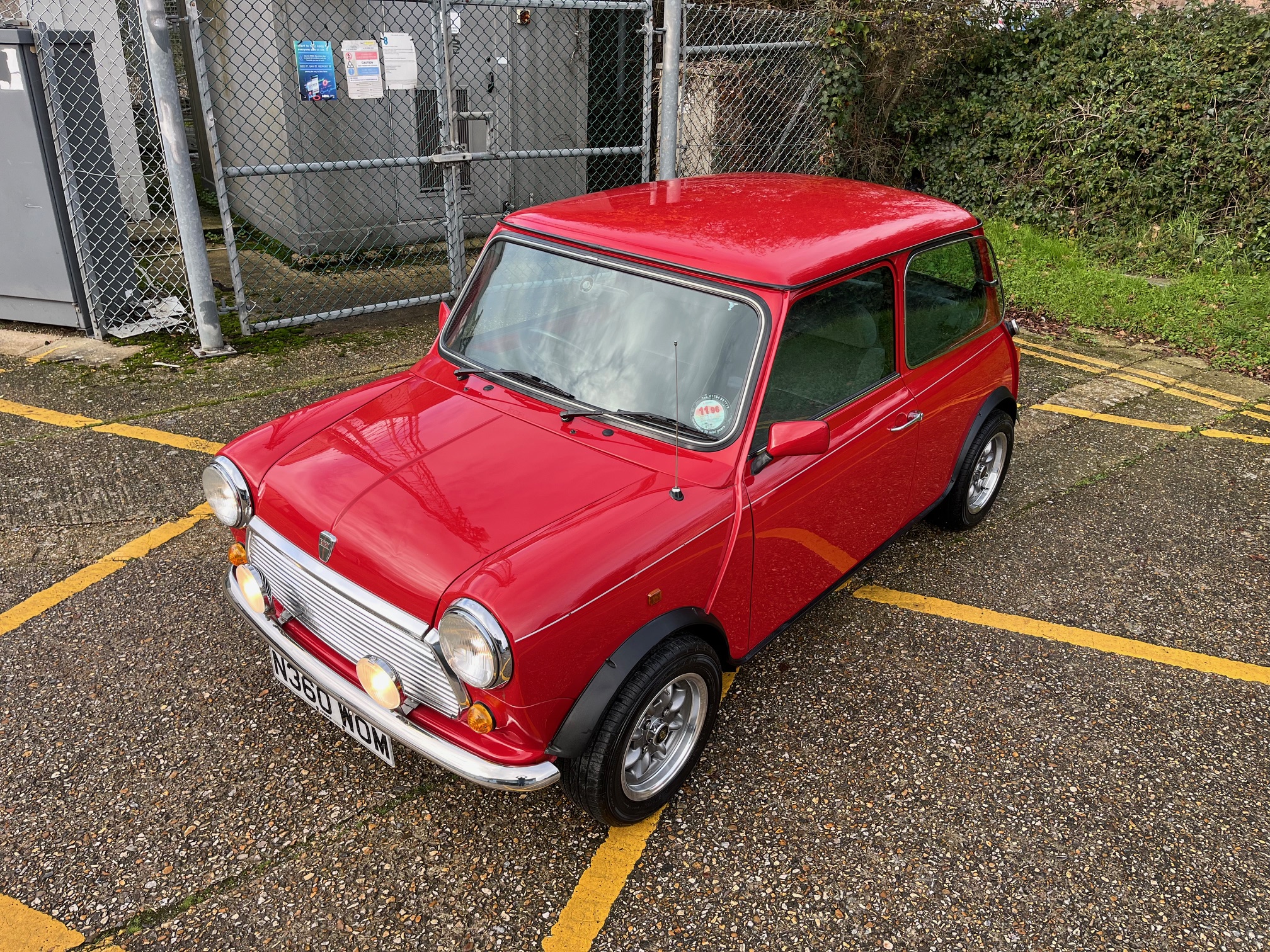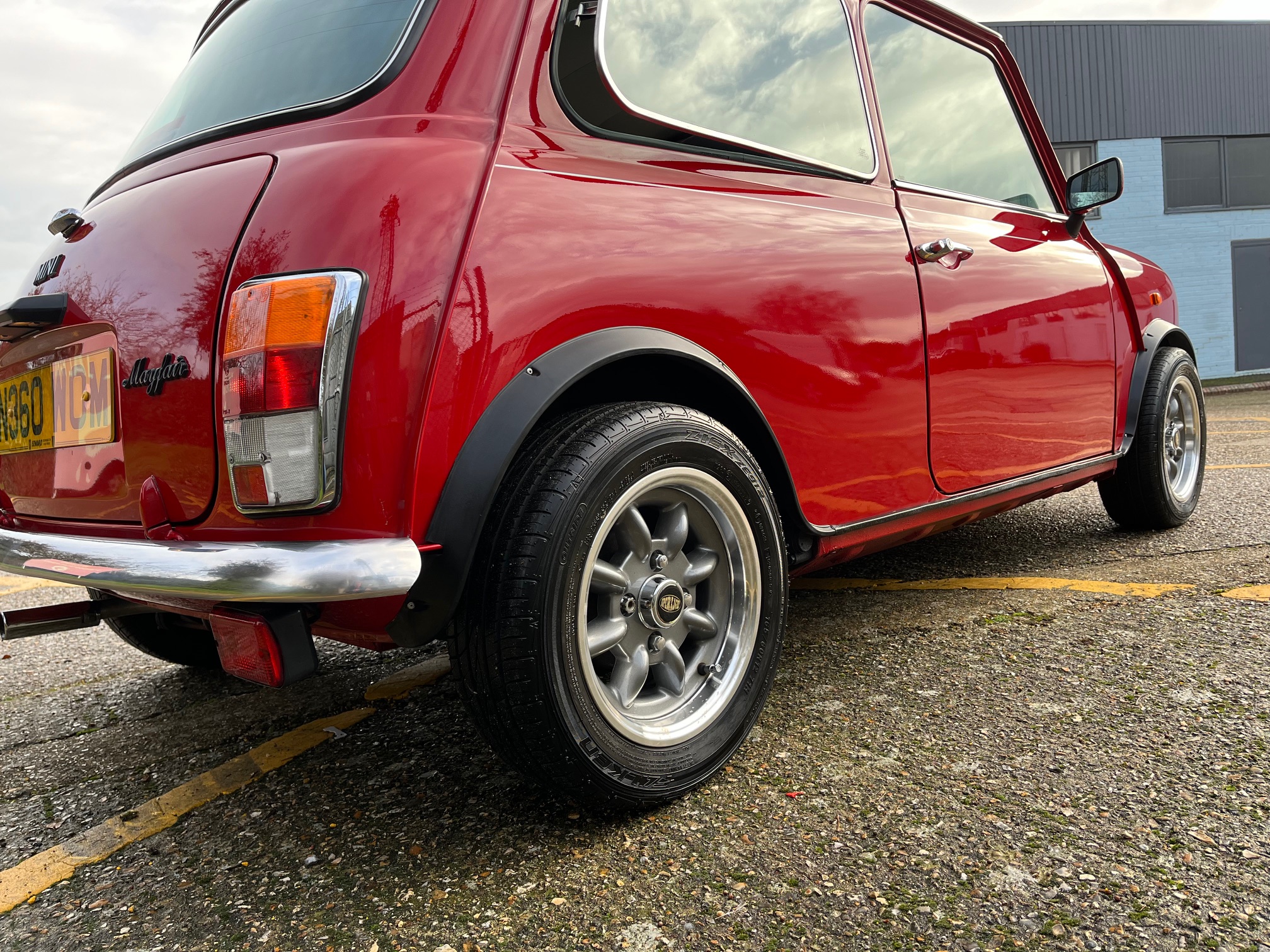 We are very pleased to offer a beautiful 1995 Rover Mini Mayfair Automatic. Finished in gleaming Flame red with a sexy set of Superlite Anthracite wheels and contrasting Grey velour trim. This Mini has lived a charmed life and finding them in this original condition is very rare. It has only covered 32 thousand miles in 30 years. Registered new by Sewards Rover in Christchurch it has remained a local car its entire life with just 3 previous owners, the last since 2008. In that time it has always been garaged and meticulously maintained. It has attended 13 London to Brighton shows and been displayed at numerous Classic Car shows. It is accompanied with a comprehensive service history and still proudly wears its supplying dealer number plates. We have maintained and serviced it for the last three years and it wants for nothing.