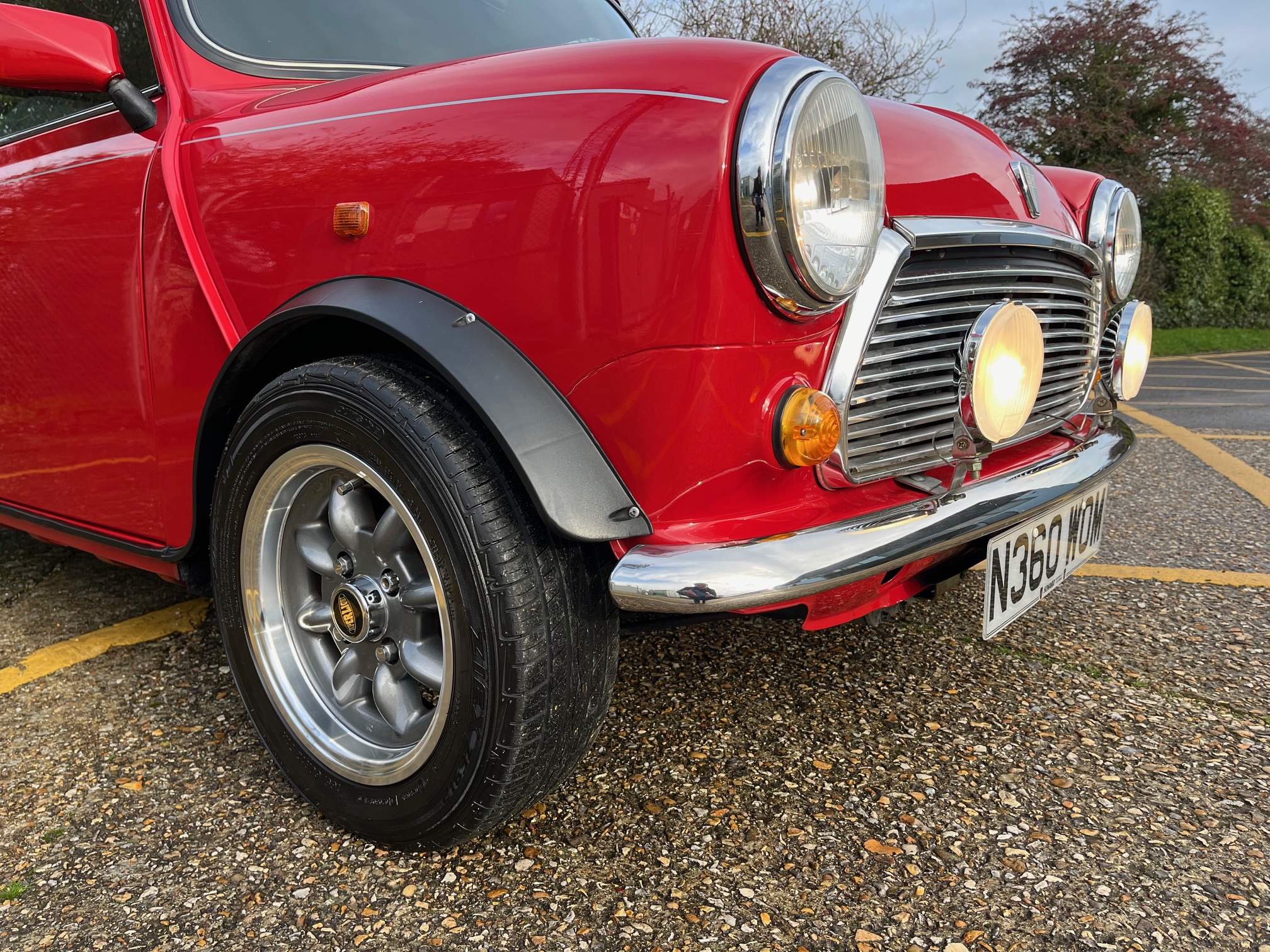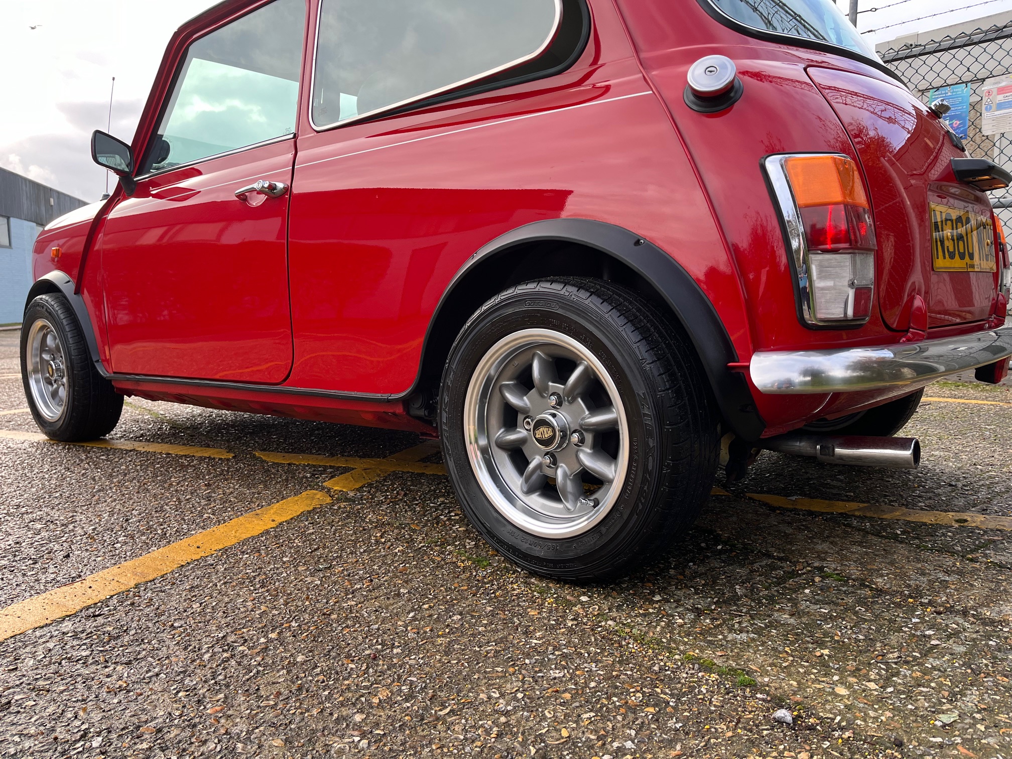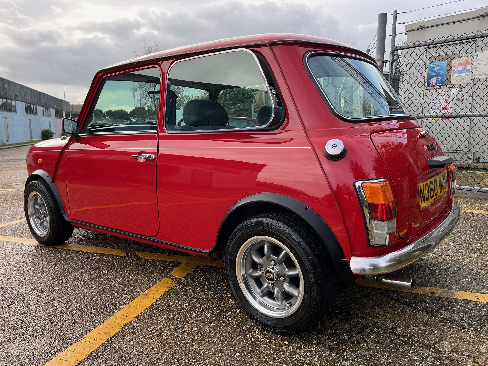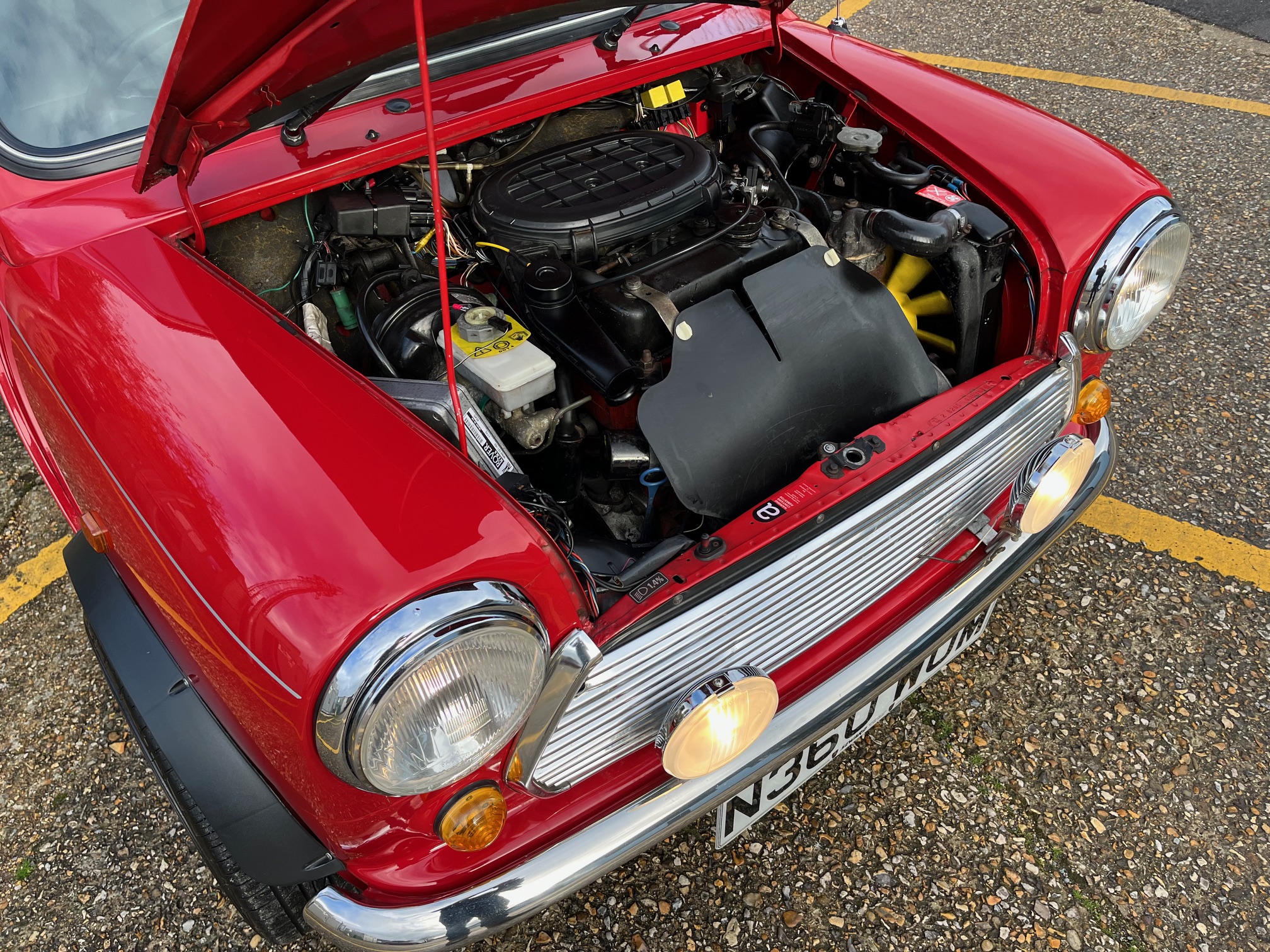 We are very pleased to offer a beautiful 1995 Rover Mini Mayfair Automatic. Finished in gleaming Flame red with a sexy set of Superlite Anthracite wheels and contrasting Grey velour trim. This Mini has lived a charmed life and finding them in this original condition is very rare. It has only covered 32 thousand miles in 30 years. Registered new by Sewards Rover in Christchurch it has remained a local car its entire life with just 3 previous owners, the last since 2008. In that time it has always been garaged and meticulously maintained. It has attended 13 London to Brighton shows and been displayed at numerous Classic Car shows. It is accompanied with a comprehensive service history and still proudly wears its supplying dealer number plates. We have maintained and serviced it for the last three years and it wants for nothing.
