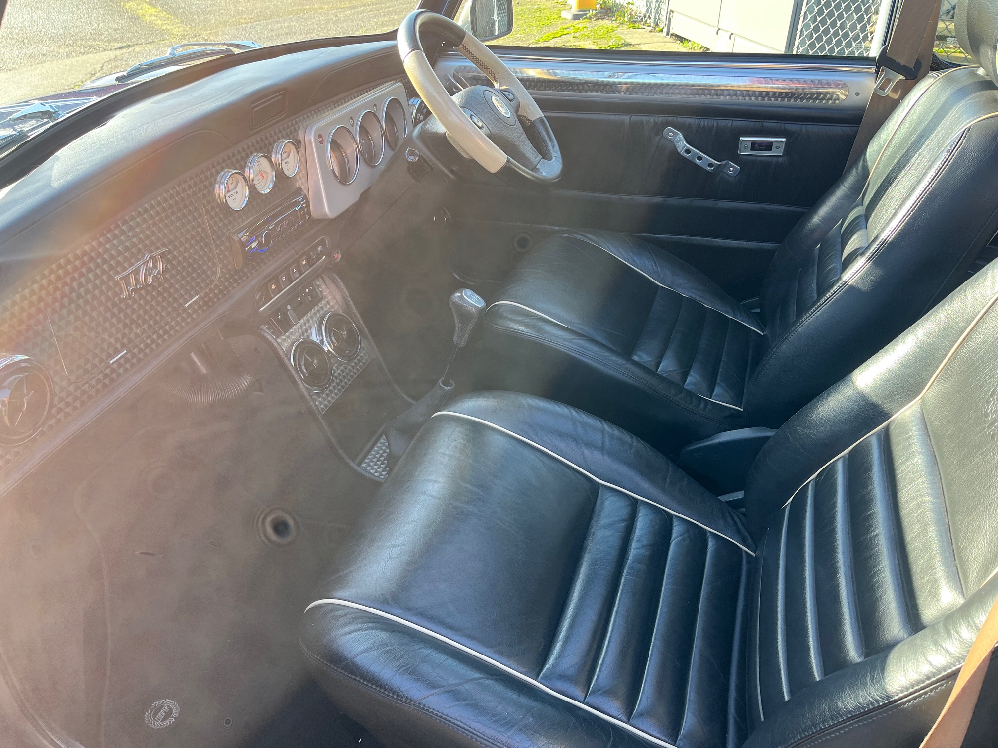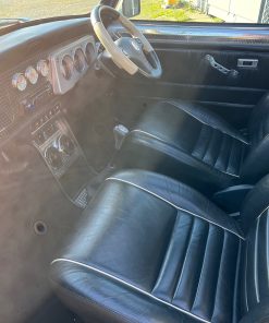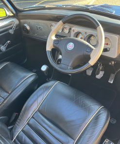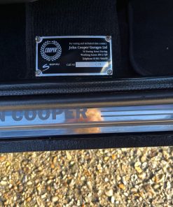 The interior also received the full Cooper Garages treatment. Full black leather seats with there optional engine turned stainless steel dash with a matching centre console, stitched leather top and bottom dash rails, stainless steel door caps front and rear, leather door cards, John Cooper alloy door furniture and the all important 5 speed gear knob. It has its original Cooper floor matts and this model also has rear seat belts. The finish to this interior is of a very high standard and really sets this Mini apart from its Rover siblings.