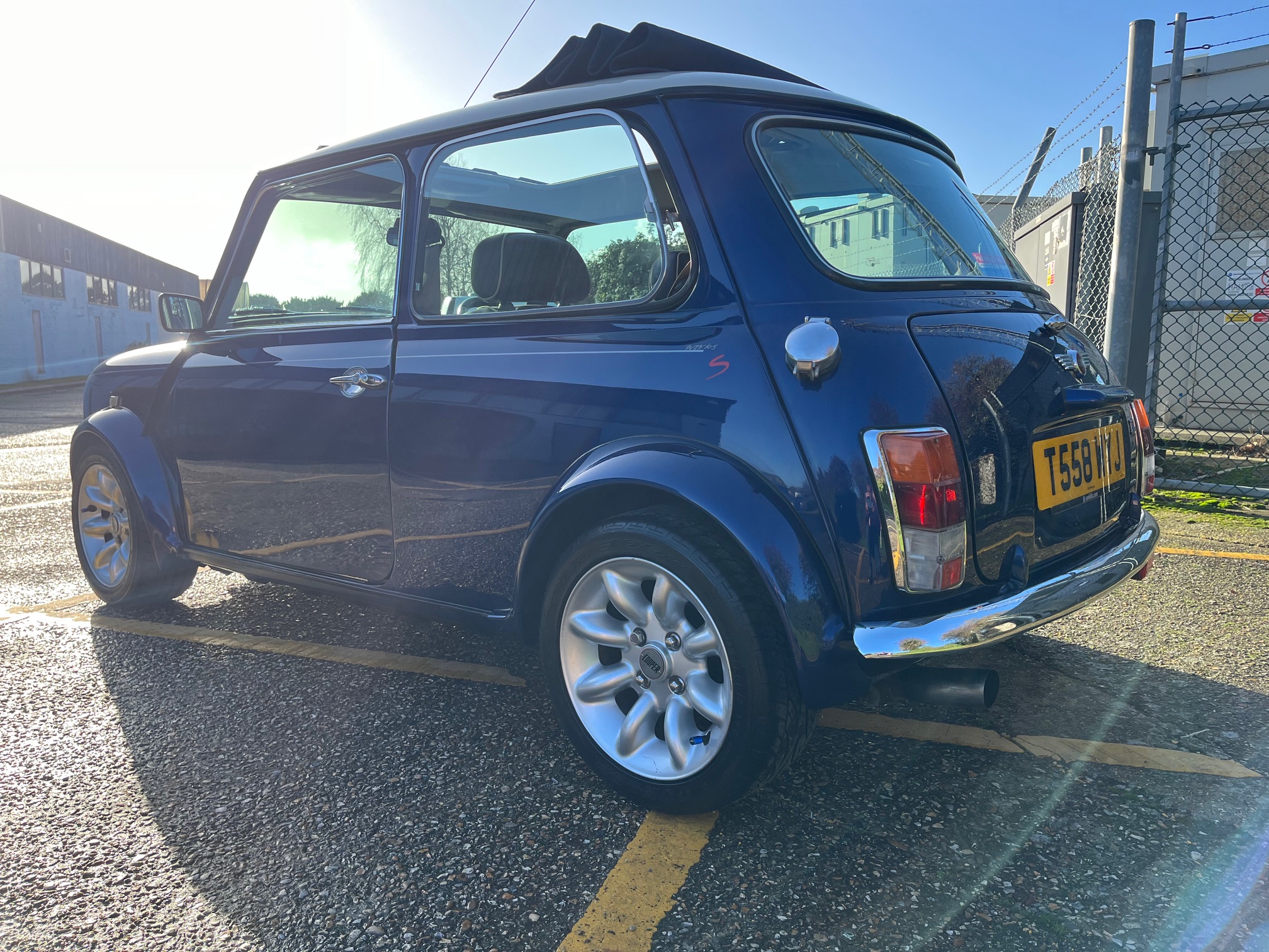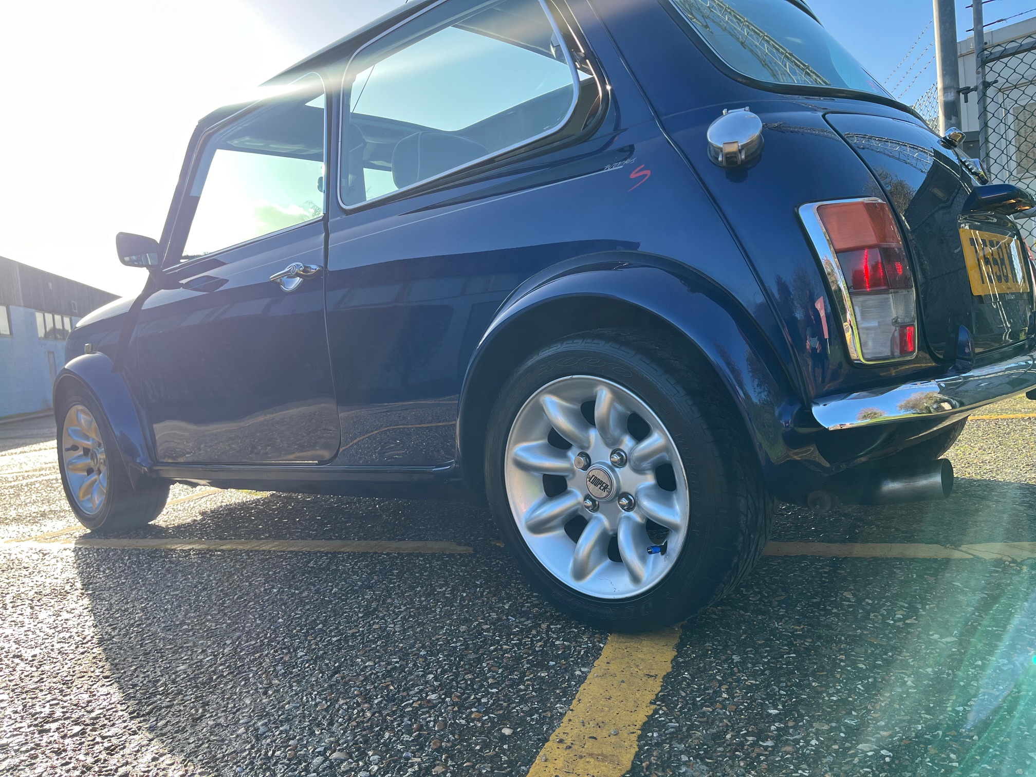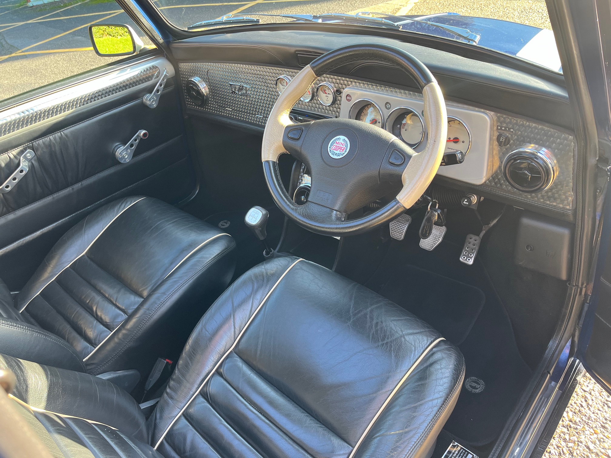 We are very pleased to offer a very special 1999 Rover Mini Cooper “S” Works, Sport 5. Just 25 produced of what is surely the ultimate specification Mini Cooper. This example was the 19th to be treated to the full John Cooper Garages “S” works 90 BHP upgrade and the Jack Knight 5 speed gearbox making it a Sport 5. The results are amazing with oodles of power and an impressive top speed of 105 MPH and an 8.8 second 0-60 MPH time. These Holy Grail Coopers are rarely seen and this is the first that we have had the pleasure of preparing. Finished in the ever popular metallic Tahiti blue with the very sought after Stratos blue full length electric sunroof. It has only covered 42k in 26 years and is accompanied with a large service history folder and the original John Cooper Garages brochure. It has been enthusiast owned and well cared for, it has never been restored instead it has been preserved and is a ready to enjoy, show and more importantly drive.