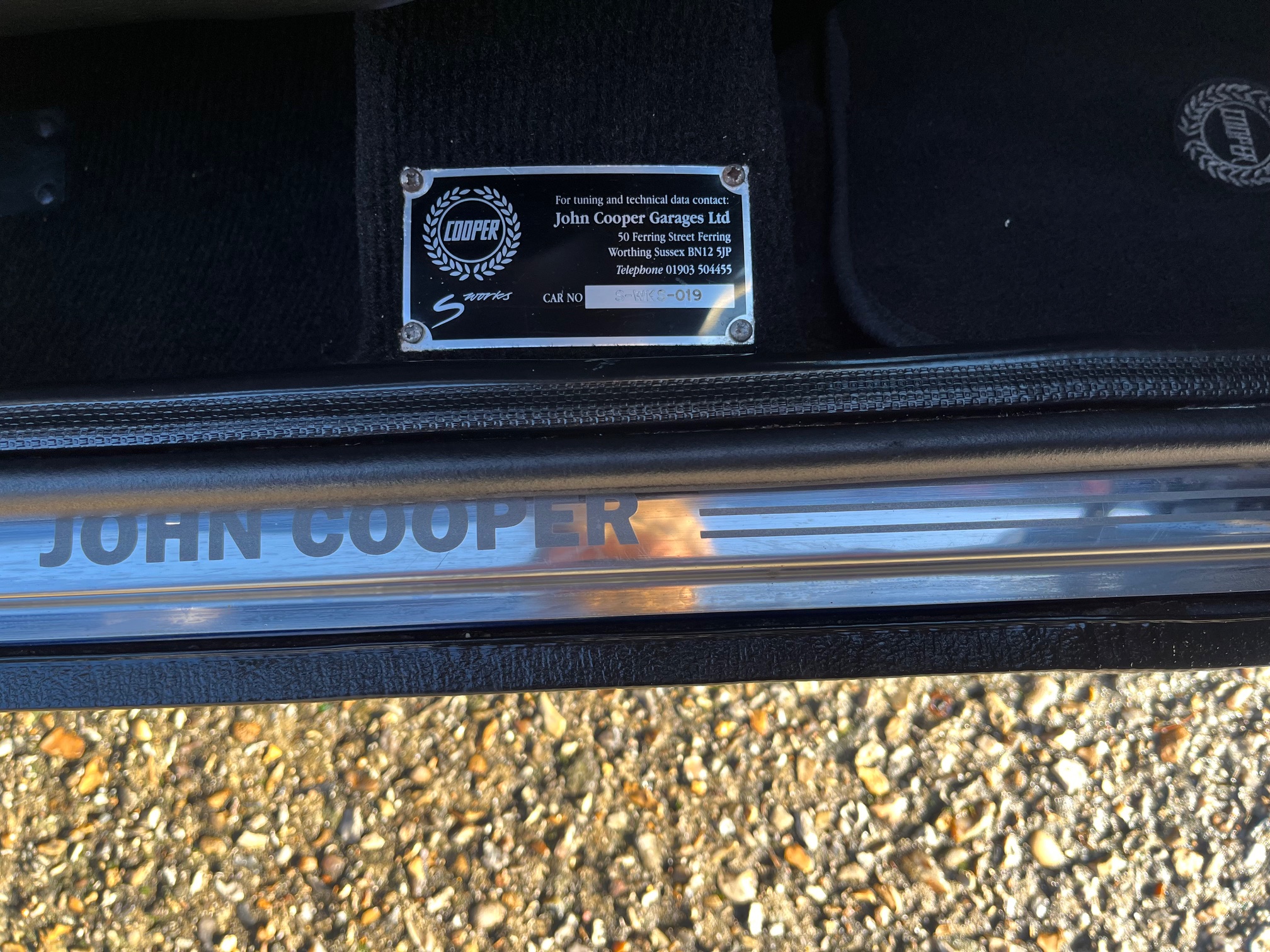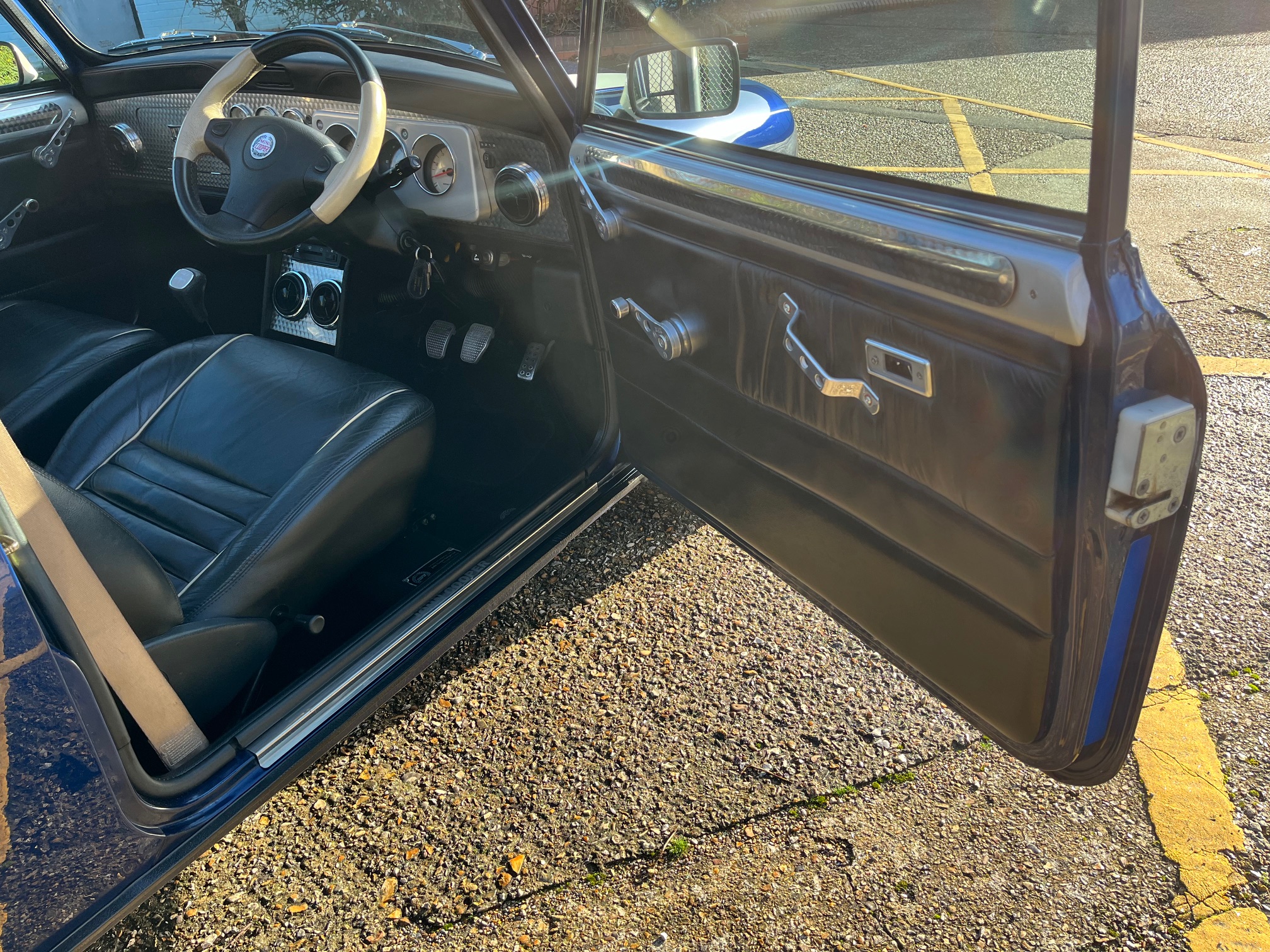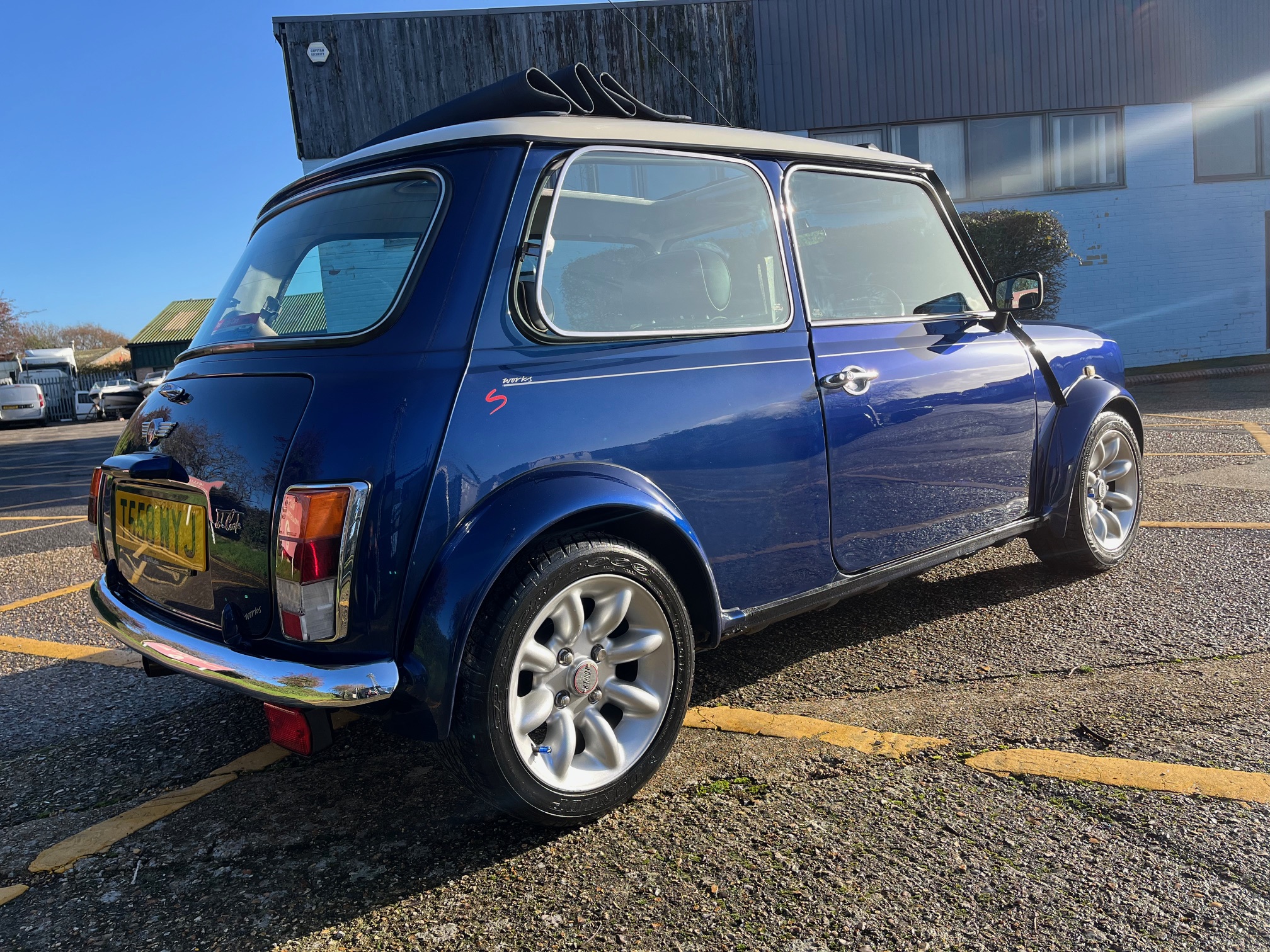 We are very pleased to offer a very special 1999 Rover Mini Cooper “S” Works, Sport 5. Just 25 produced of what is surely the ultimate specification Mini Cooper. This example was the 19th to be treated to the full John Cooper Garages “S” works 90 BHP upgrade and the Jack Knight 5 speed gearbox making it a Sport 5. The results are amazing with oodles of power and an impressive top speed of 105 MPH and an 8.8 second 0-60 MPH time. These Holy Grail Coopers are rarely seen and this is the first that we have had the pleasure of preparing. Finished in the ever popular metallic Tahiti blue with the very sought after Stratos blue full length electric sunroof. It has only covered 42k in 26 years and is accompanied with a large service history folder and the original John Cooper Garages brochure. It has been enthusiast owned and well cared for, it has never been restored instead it has been preserved and is a ready to enjoy, show and more importantly drive.