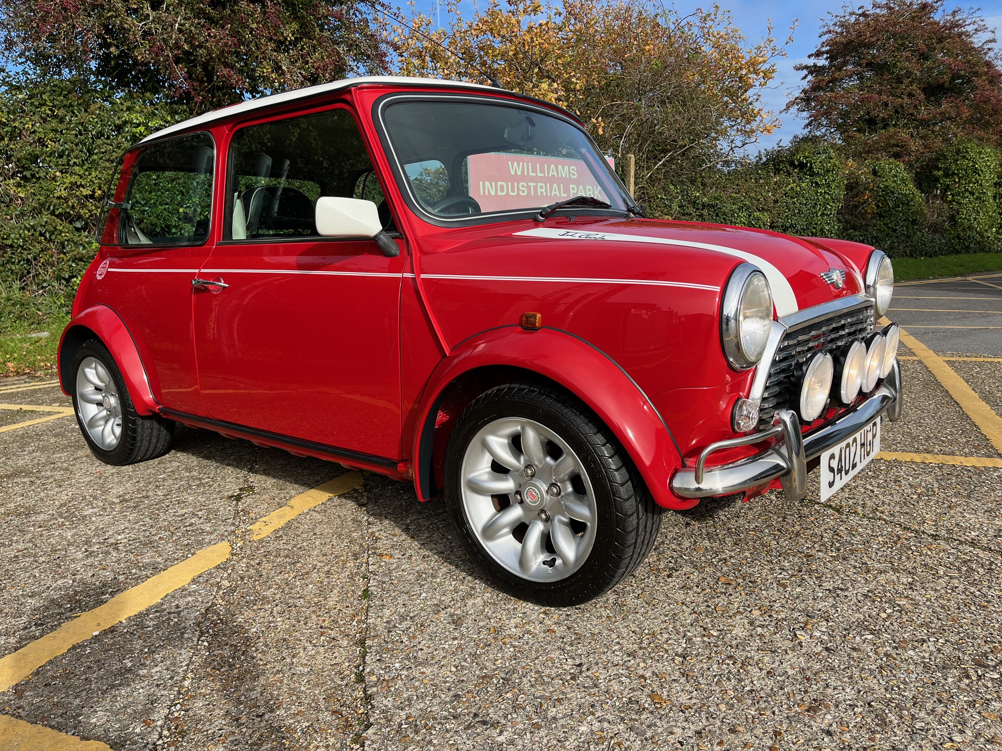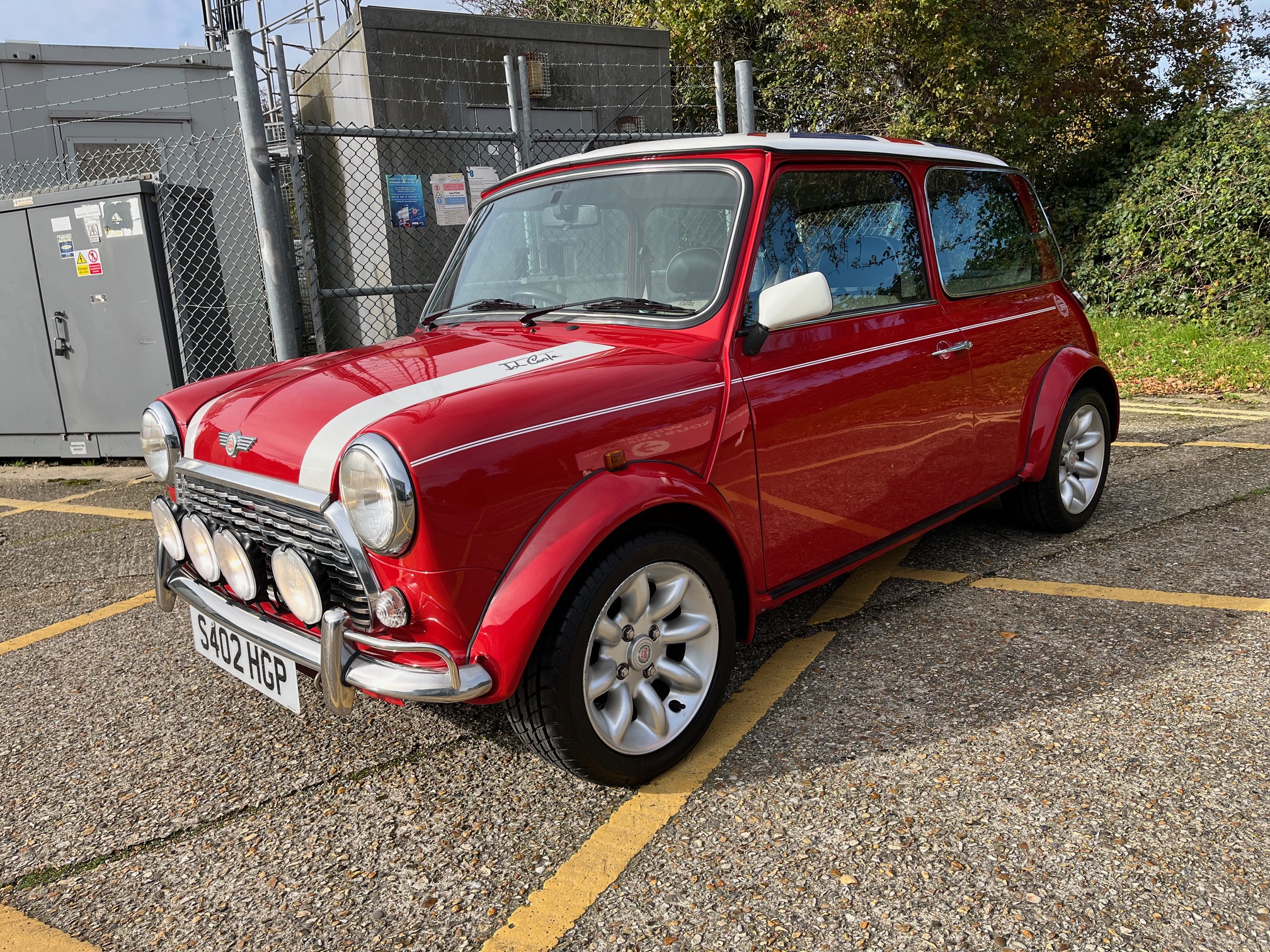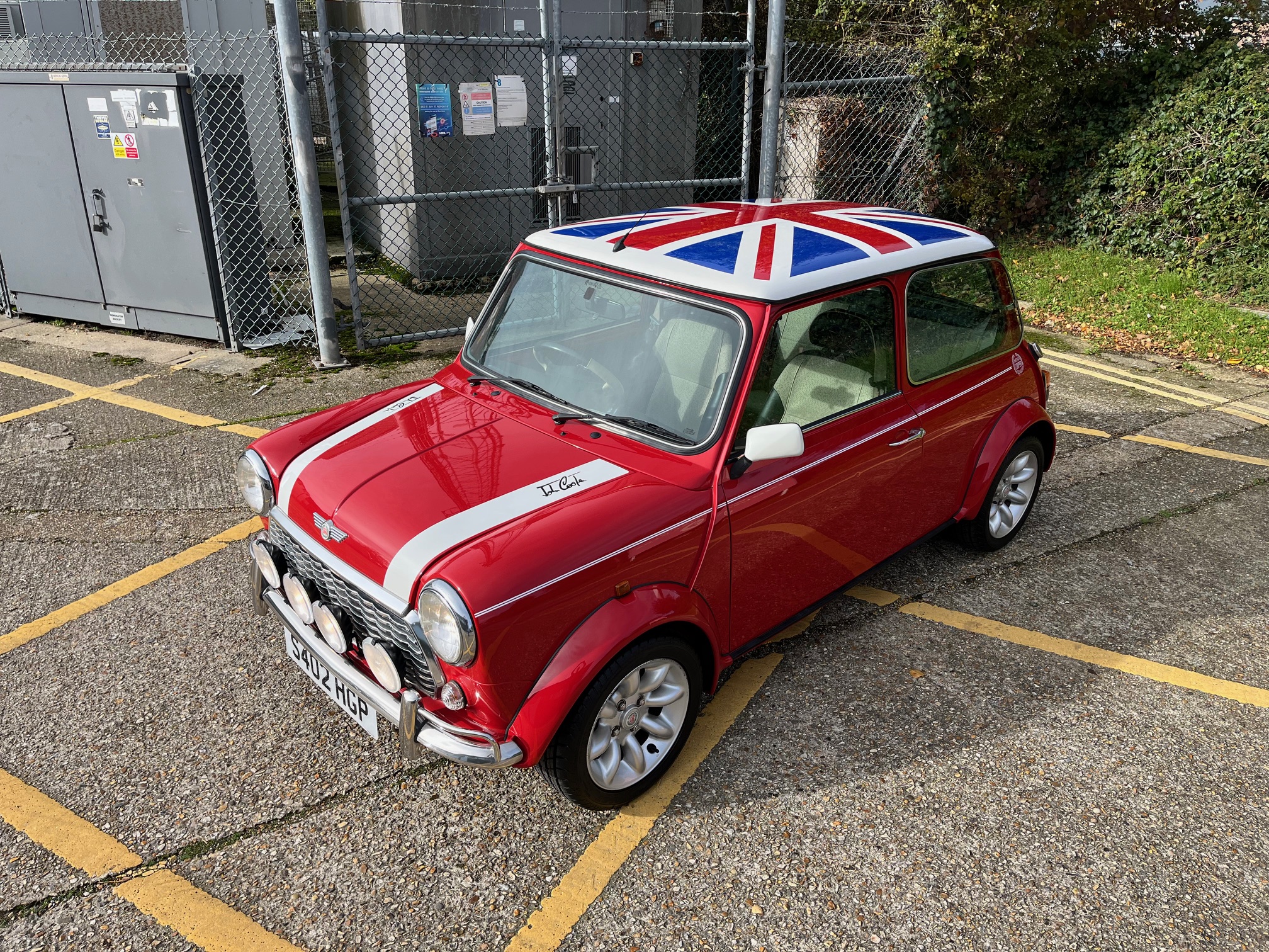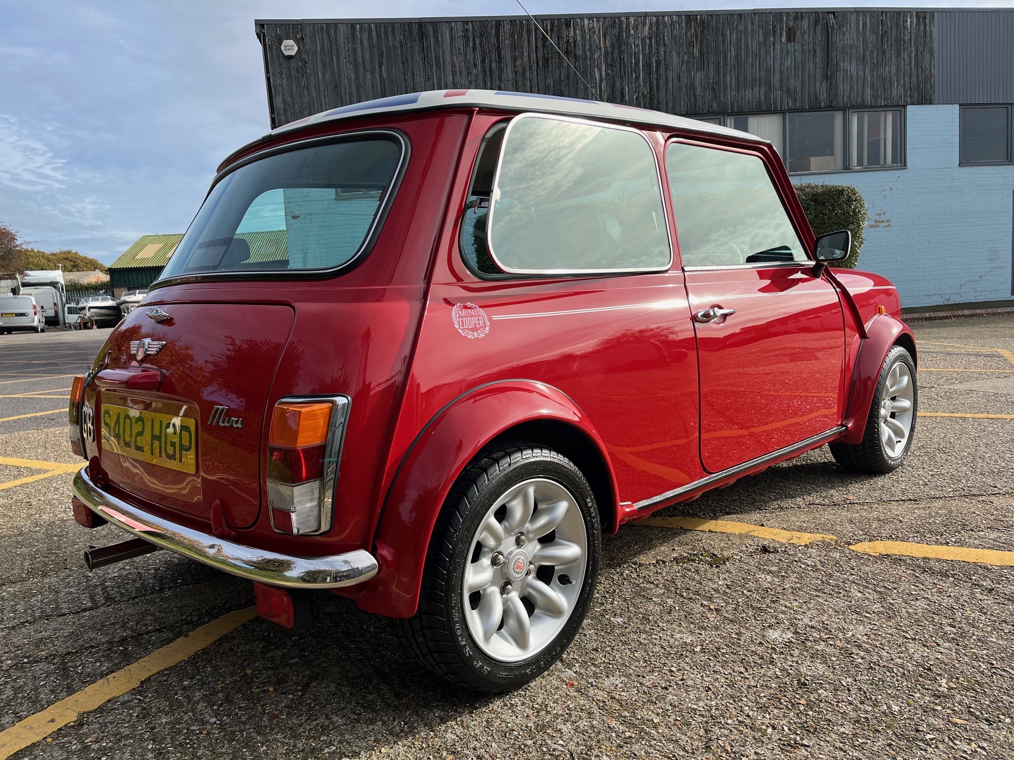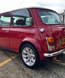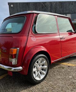 We are very pleased to offer a beautiful 1999 Rover Mini Cooper Sportspack. Finished in Solar Red with a contrasting Union Jack roof. This is a very are find as it has only had one owner since it was one year old and covering just 24k in 26 years. It is even more remarkable in that it is presented with all of its original paint and panels. It has spent its life on light duties and always garaged, it has been an absolute pleasure to prepare and drive. It is accompanied with its original handbook, service book and both sets of keys and fobs. It has all of its original showroom options that were available in the brochure at the time which include the Morris style wavy grille, Union Jack roof, third level brake light, alloy rocker cover, alloy door furniture, walnut gear knob and the extra boot badges. It is a total time warp and high quality example.