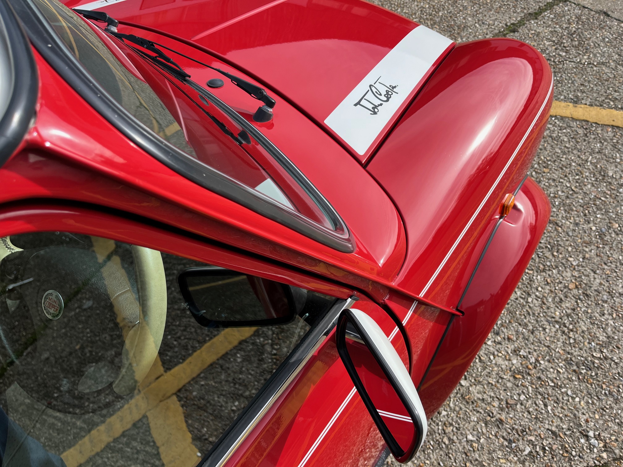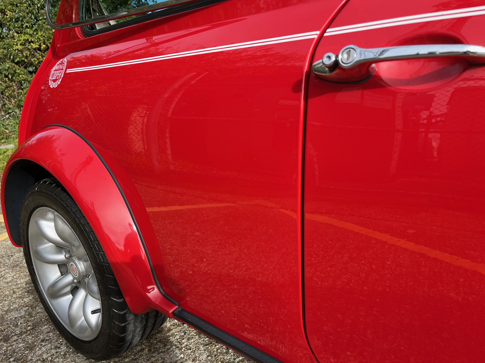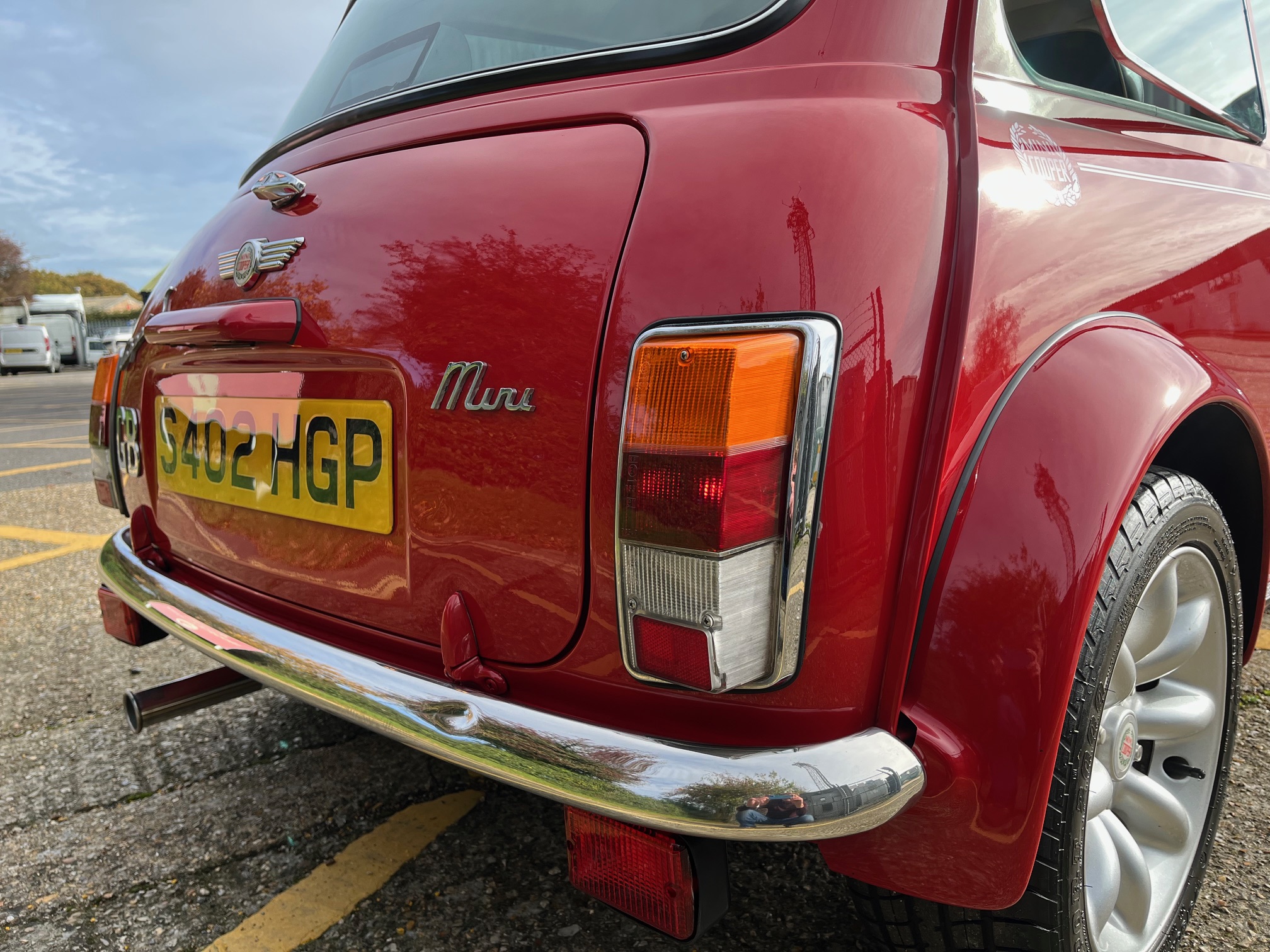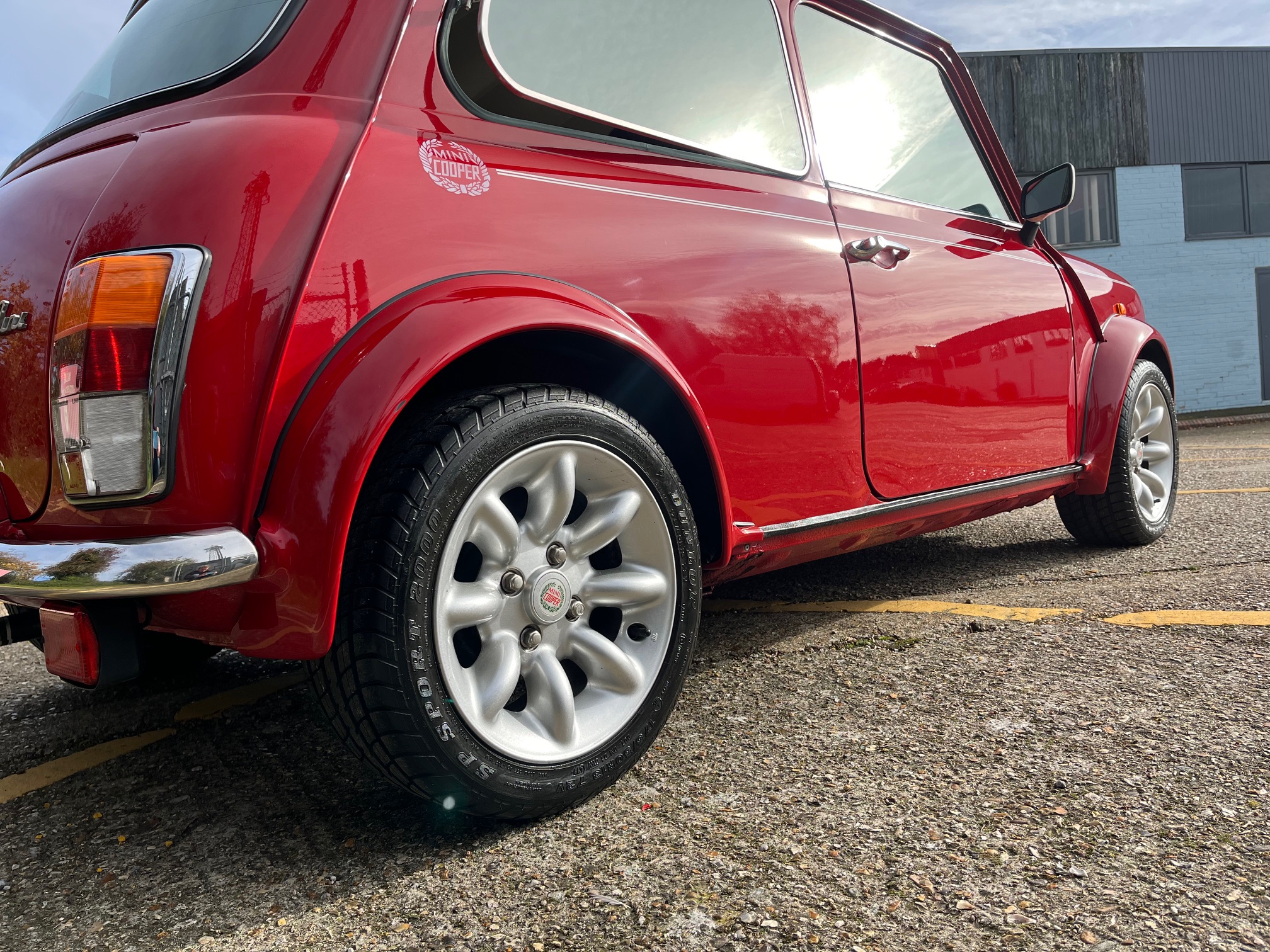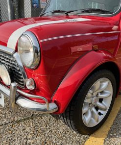 We are very pleased to offer a beautiful 1999 Rover Mini Cooper Sportspack. Finished in Solar Red with a contrasting Union Jack roof. This is a very are find as it has only had one owner since it was one year old and covering just 24k in 26 years. It is even more remarkable in that it is presented with all of its original paint and panels. It has spent its life on light duties and always garaged, it has been an absolute pleasure to prepare and drive. It is accompanied with its original handbook, service book and both sets of keys and fobs. It has all of its original showroom options that were available in the brochure at the time which include the Morris style wavy grille, Union Jack roof, third level brake light, alloy rocker cover, alloy door furniture, walnut gear knob and the extra boot badges. It is a total time warp and high quality example.
