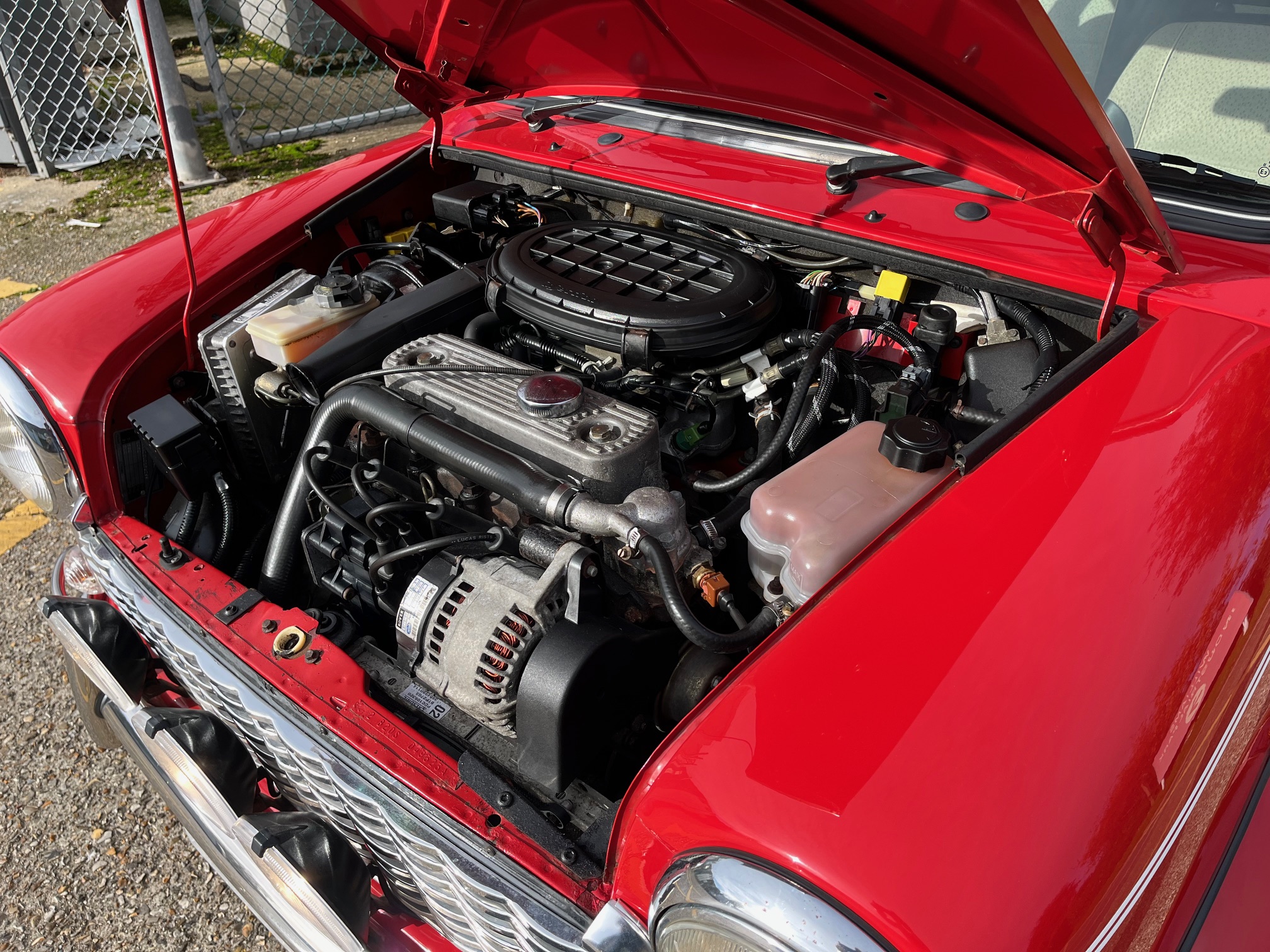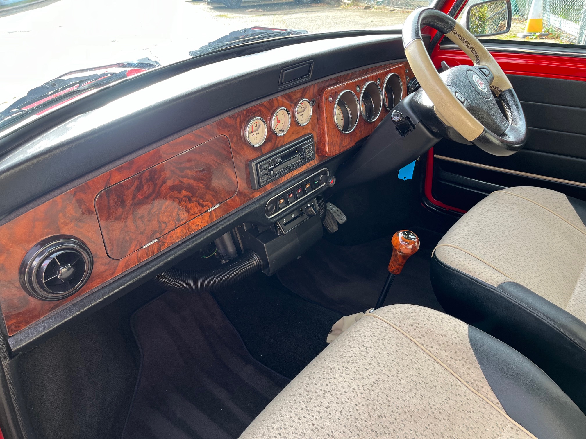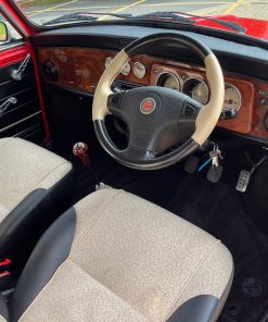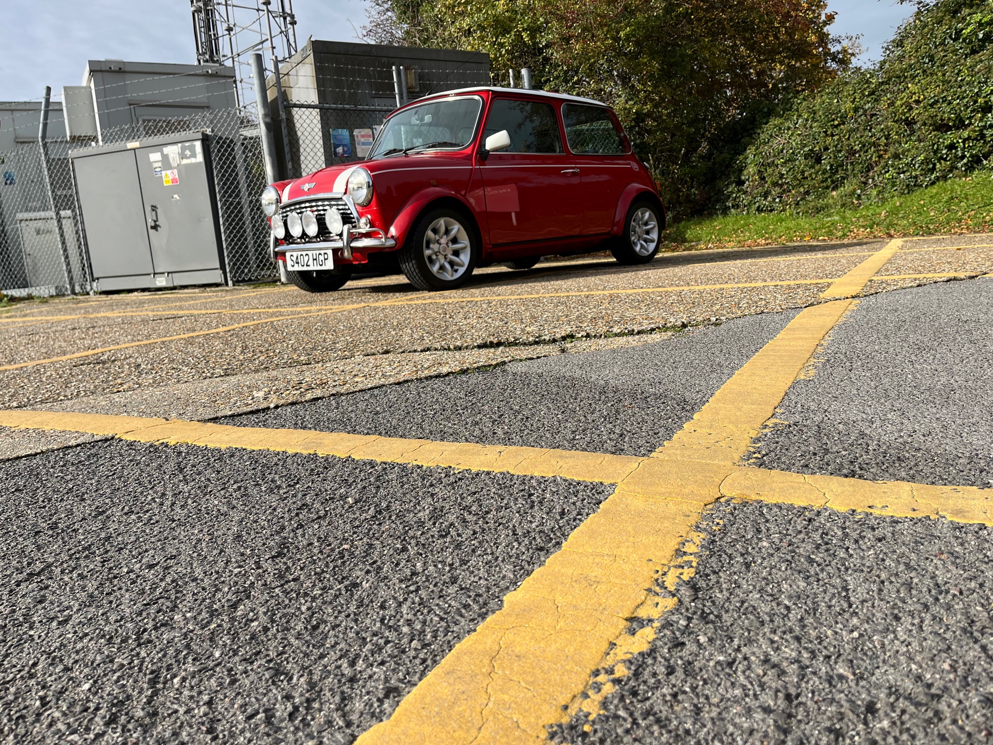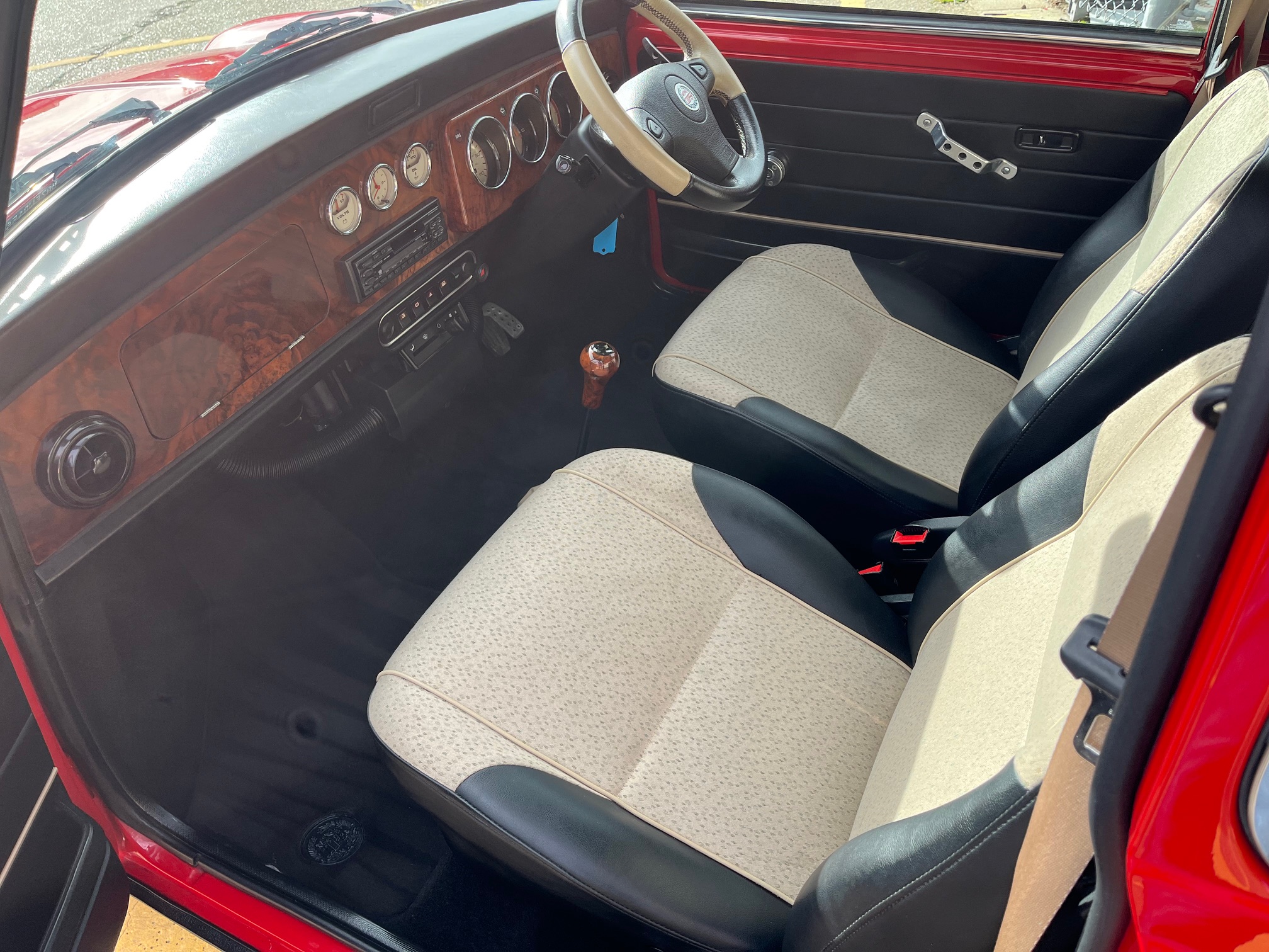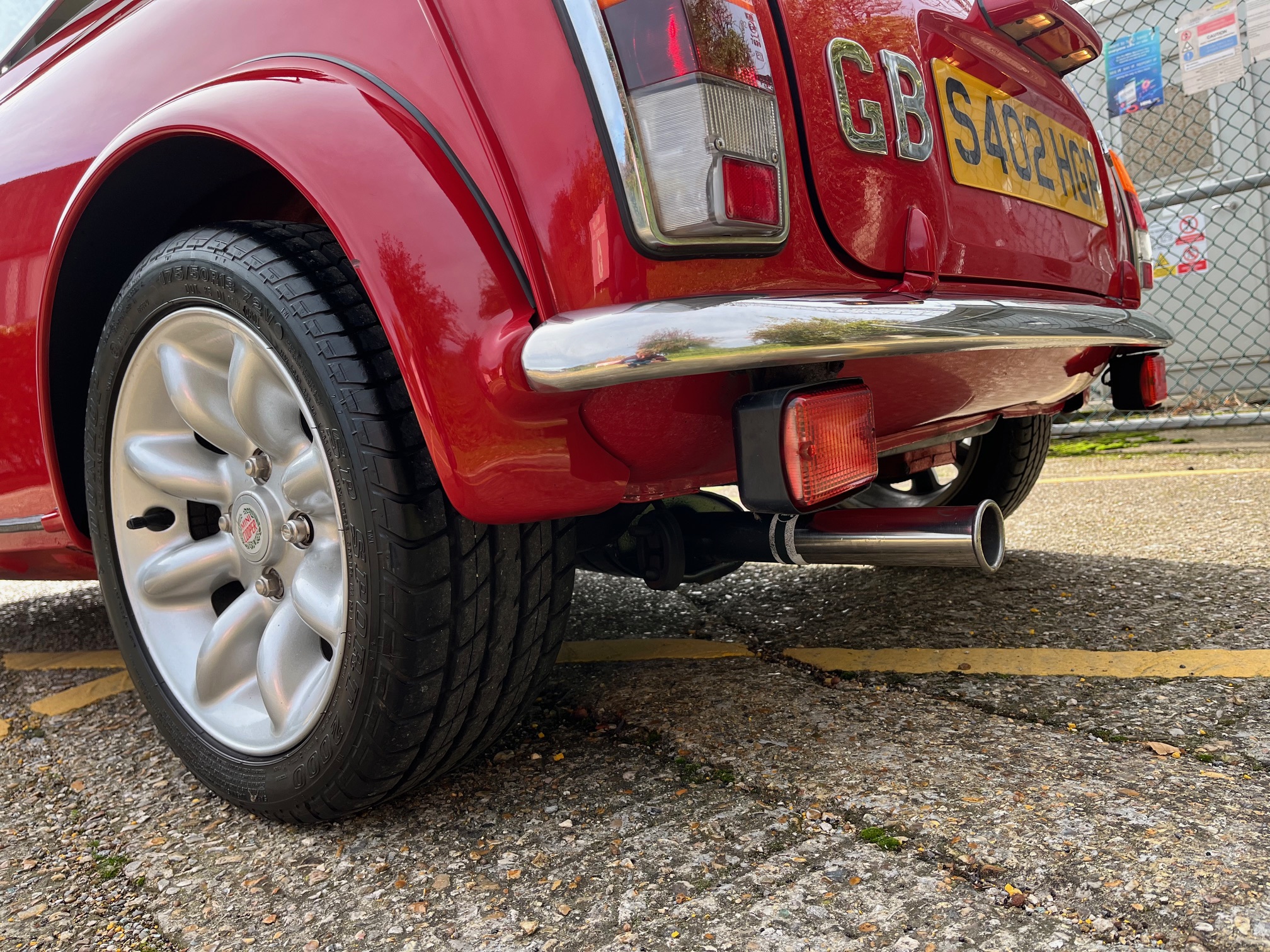 On the road the Mini drives very well. The low mileage 1275 engine is virtually silent and the gearbox is taught and precise. This is an MPi Mini that stands for Multi Point Fuel Injection, it means that all you have to do to enjoy your Mini is simply turn the key and go. Further features include an alarm, immobiliser, side impact beams, drivers air bag and taller gearing for easy long distance cruising. Offering all of the Classic Mini charm with a modern twist. Performance is excellent, it pulls very well through all the gears and is at home on any road. We have just treated it to a new Maniflow exhaust so it has that subtle Cooper burble.