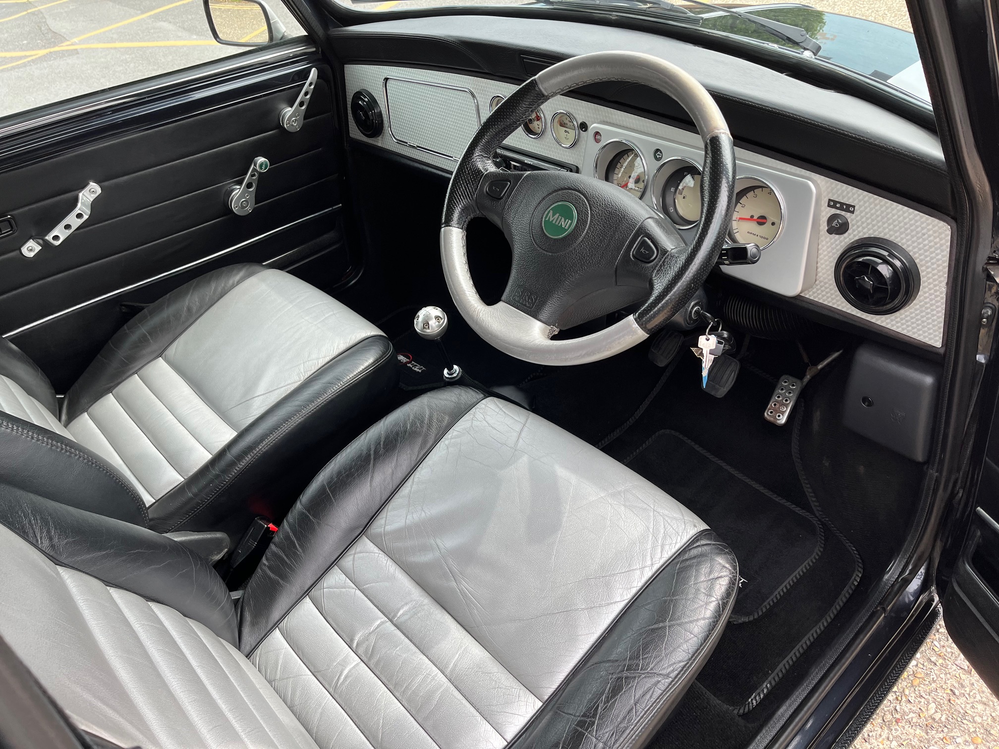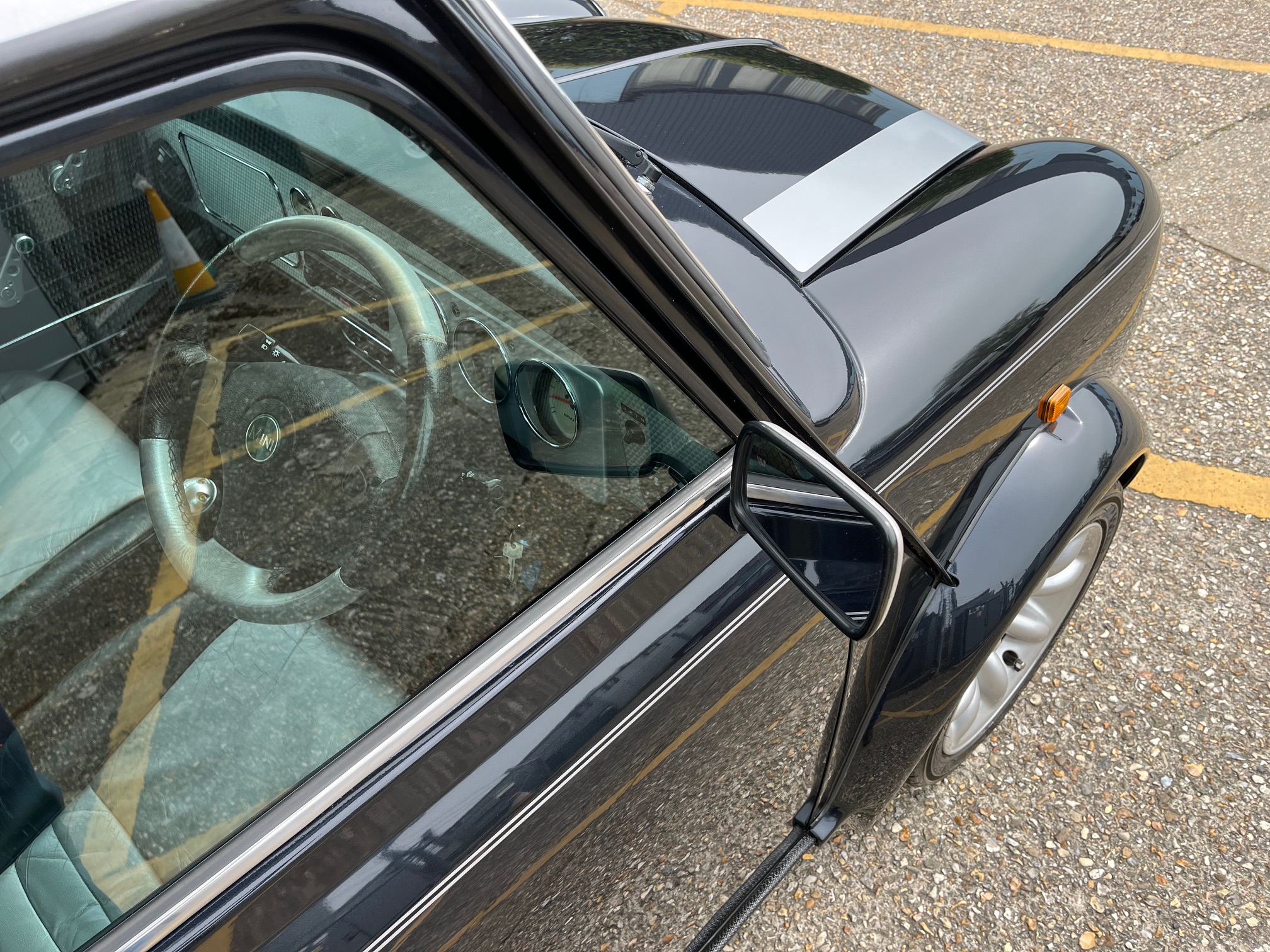 This Cooper Sport has a very solid shell with the correct vented sills, solid floors and subframes and gleaming paintwork. The Anthracite really pops in the sunlight and this very good looking Mini gets lots of deserved attention.