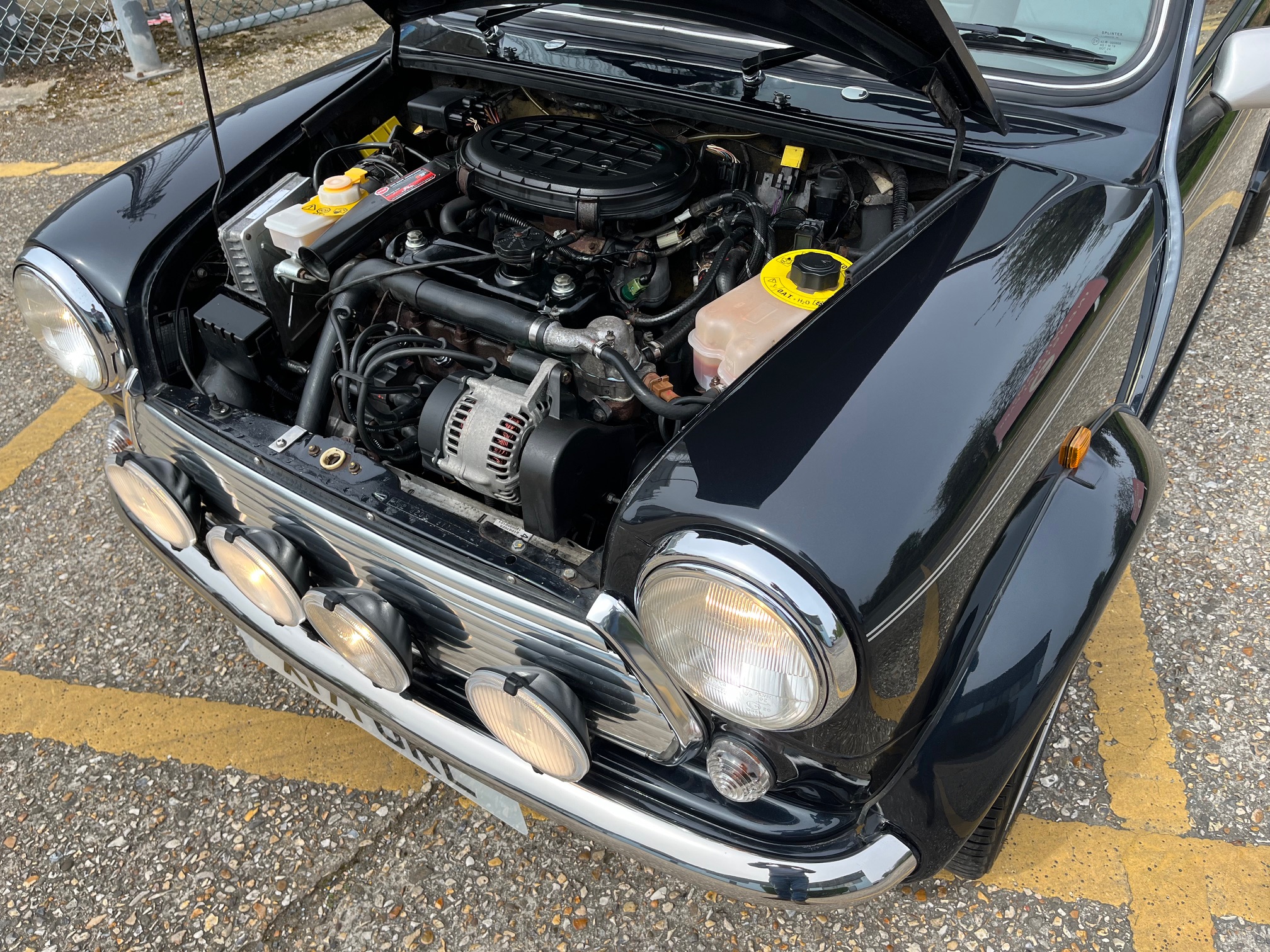 On the road this Sport drives very well indeed. The 1275 engine is very smooth and the gearbox is taught and precise, The ride and handling are also fantastic and the Cooper burble is present and correct thanks to a Maniflow exhaust. It also has recently had replacement Koni shock absorbers and fully adjustable suspension. Performance is very brisk and on the open road this Sport will make you smile. This is an MPi Mini which stands for Multi point fuel injection, MPI Minis offer all of the Classic Mini charm with everyday use ability, just simply turn the key and go. Further features include a drivers airbag, side impact beams, an alarm and immobiliser and taller gearing making long distance cruising a blast.